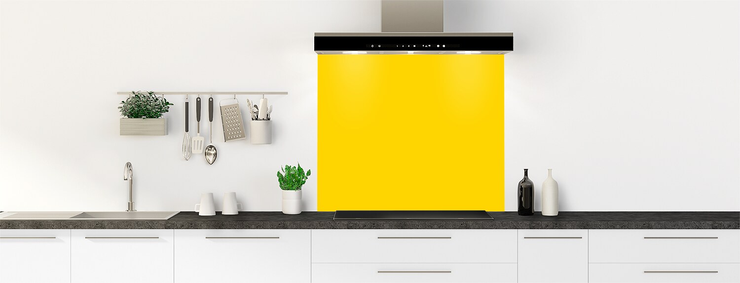 Un jaune éclatant illumine votre cuisine avec ce fond de hotte couleur Mimosa qui apporte soleil, énergie et vitalité !