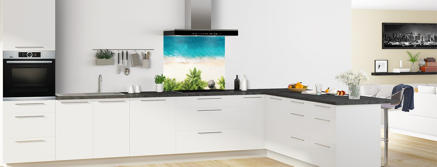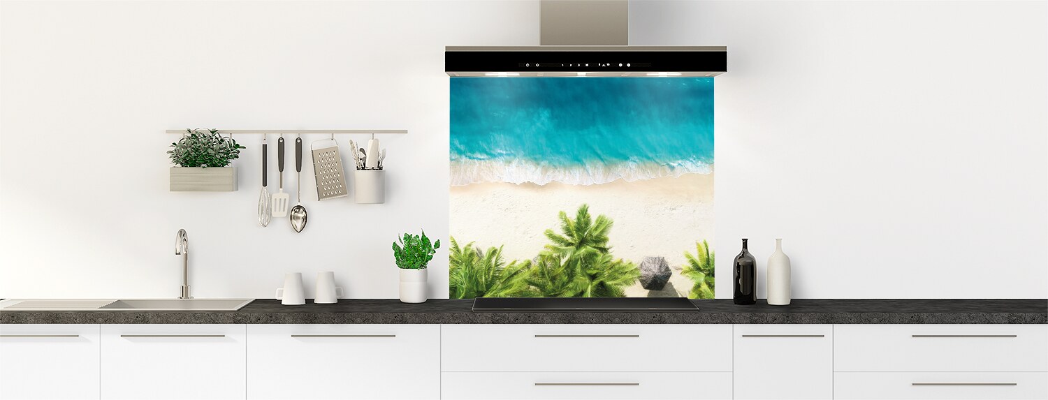 Comblez vos envies de voyage grâce à ce décor paradisiaque, déclinable en plusieurs formats. Le fond de hotte disponible est parfait pour donner une touche d'exotisme à votre cuisine. Il se découpe et se colle facilement pour un résultat sur mesure.