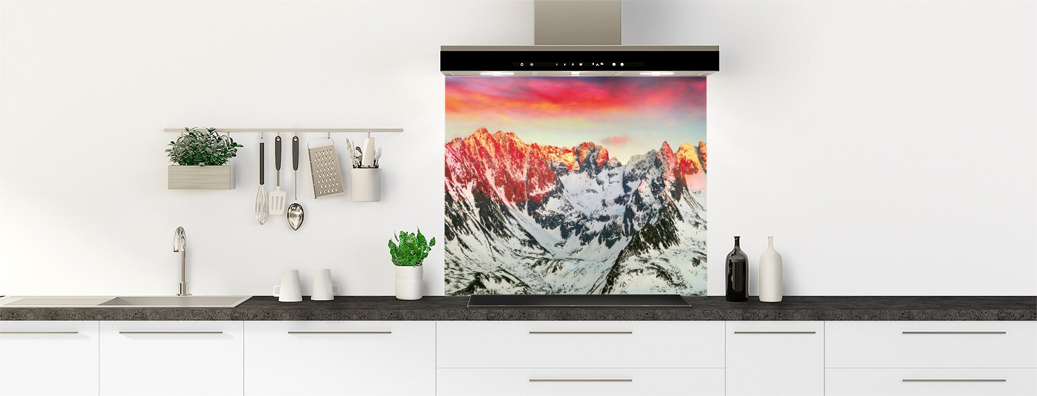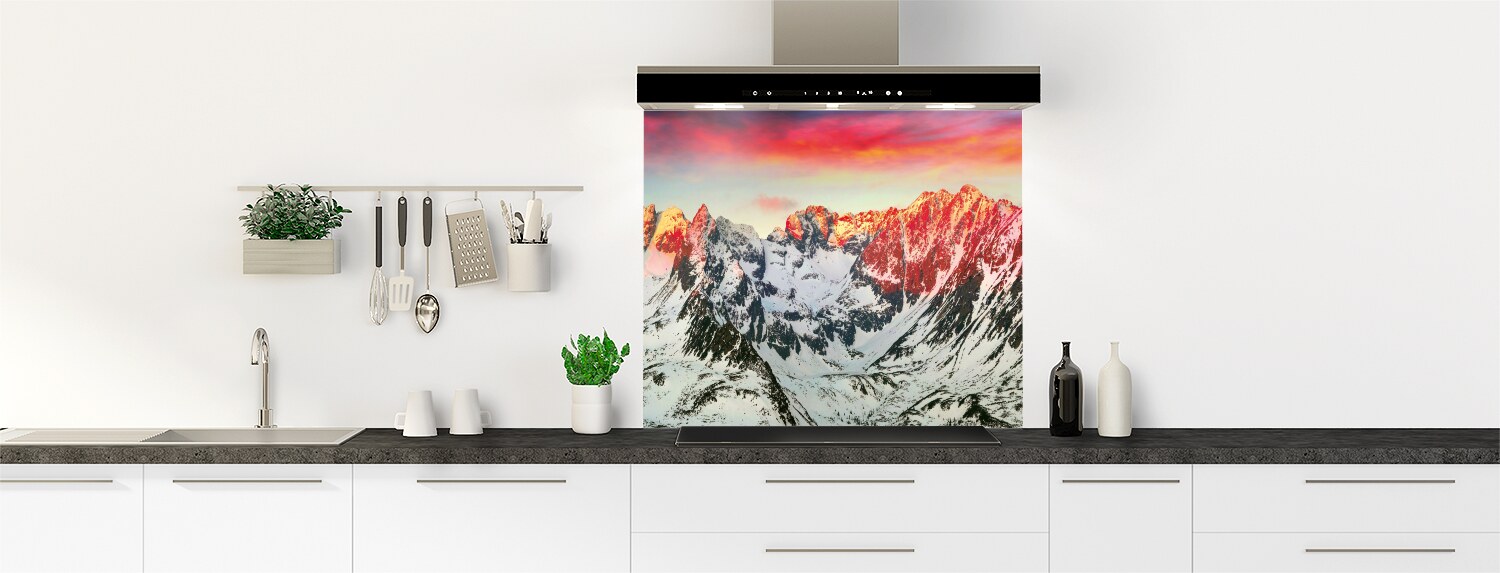Ce fond de hotte déco apportera fraîcheur, espace et évasion à votre cuisine. Choisissez votre support (polycarbonate ou aluminium) pour un fond de hotte sur mesure.
