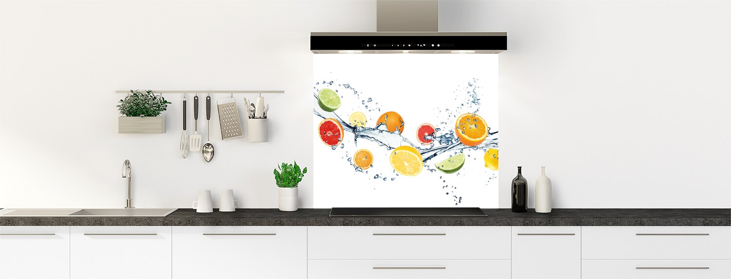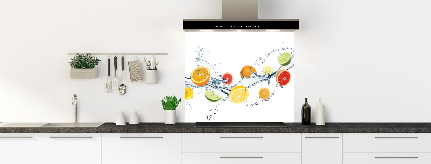 Ce fond de hotte rafraîchissant avec oranges, pamplemousse, citron et citron vert saura égayer tout votre intérieur !