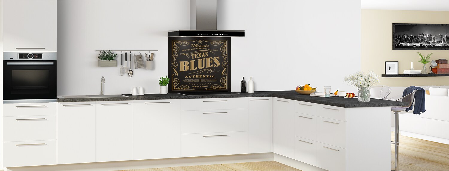Un fond de hotte déco original au style US authentique, disponible en finition brillante sur polycarbonate ou mate sur aluminium. Ideal pour protéger votre mur de cuisine des projections issues de la cuisson. Les deux supports disponibles se découpent et se collent aisément.