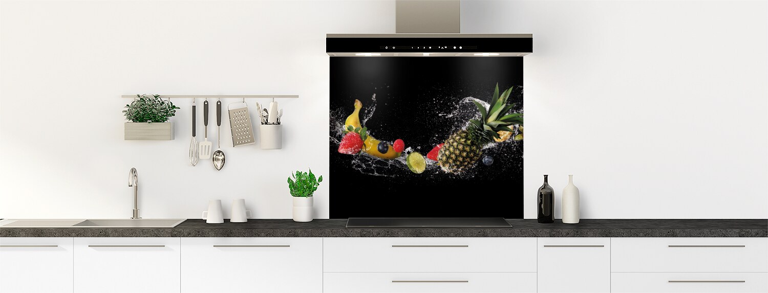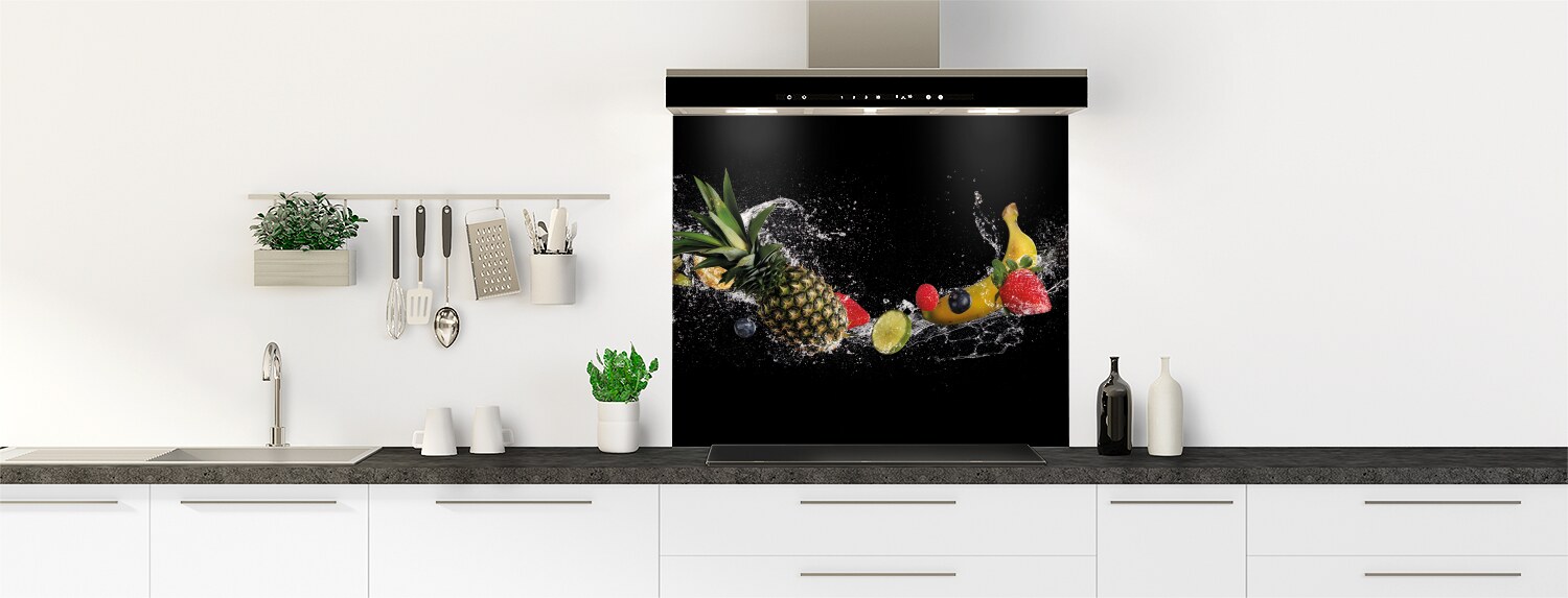 Le fond de hotte "Danse de fruits" apporte une touche de fraîcheur sucrée à votre cuisine. Ce panneau mural est disponible en polycarbonate ou en aluminium. Personnalisez-le en le découpant et en le collant vous-même pour l'adapter parfaitement à votre cuisine. Ces matériaux sont parfaits pour recouvrir un ancien revêtement et donner un nouveau look à votre cuisine.