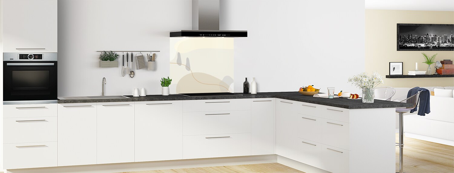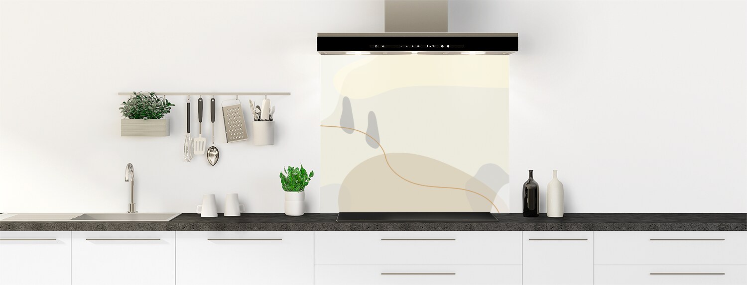 Un mélange entre art et graphisme pour ce fond de hotte très original aux teintes douces.