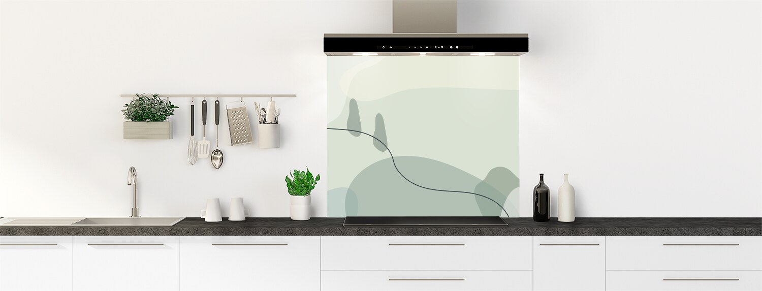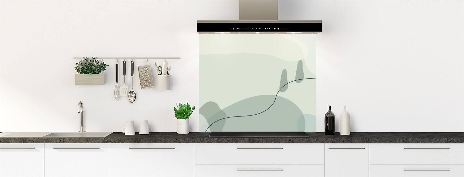 Un mélange entre art et graphisme pour ce fond de hotte original aux teintes pastel.