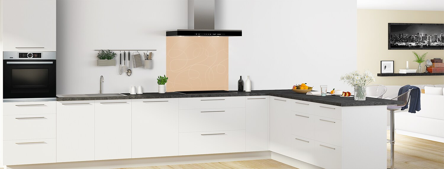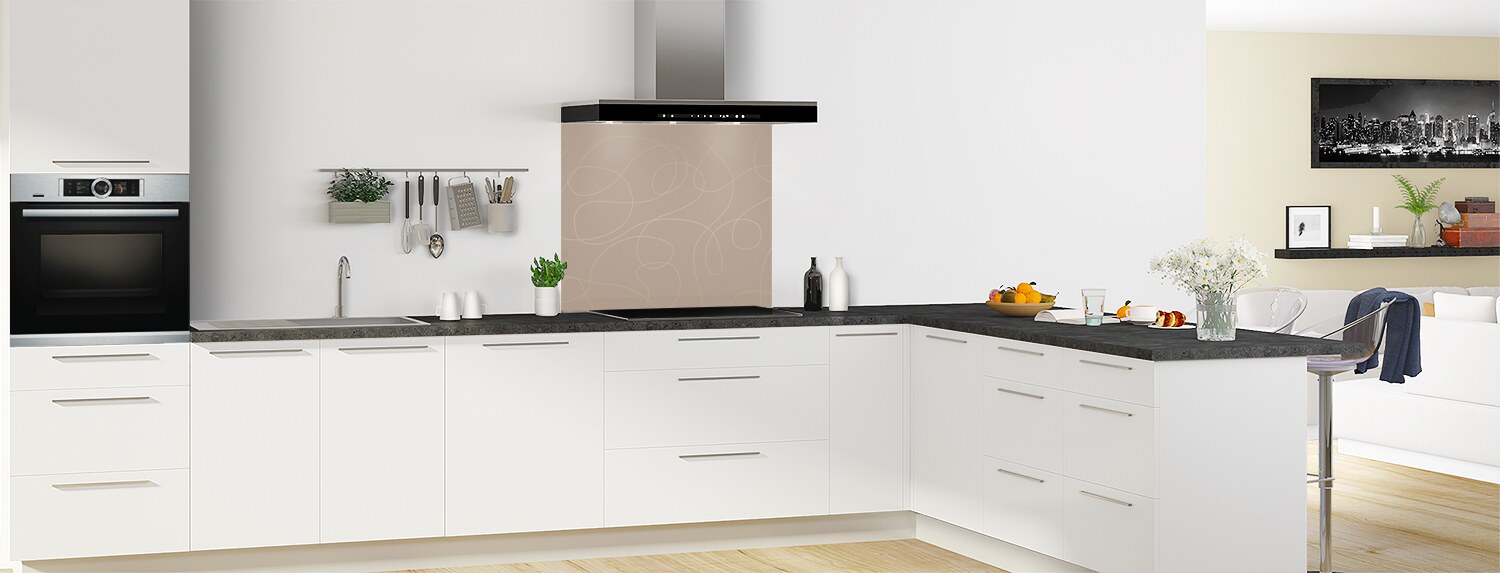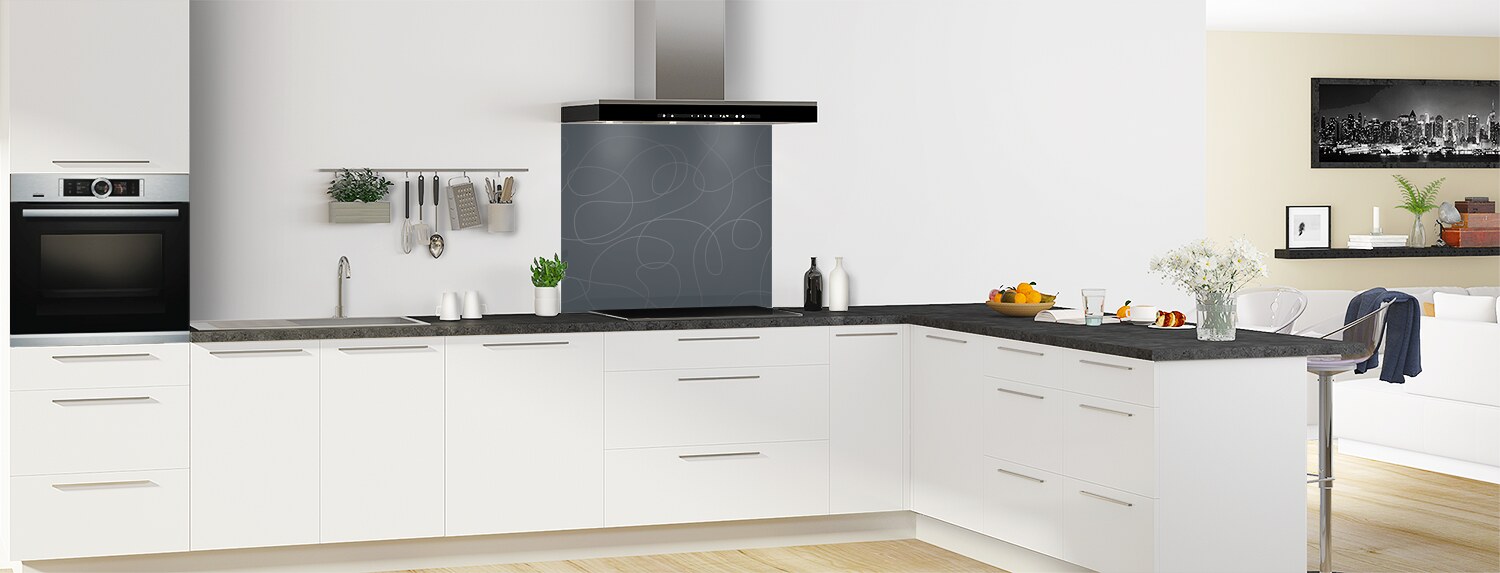 "Gribouillis" donne un aspect graphique à votre fond de hotte en trois formats : recouvrement, frise ou dosseret. Les deux supports disponibles sont faciles à découper et à coller afin que le fond de hotte s'adapte au mieux à votre cuisine.