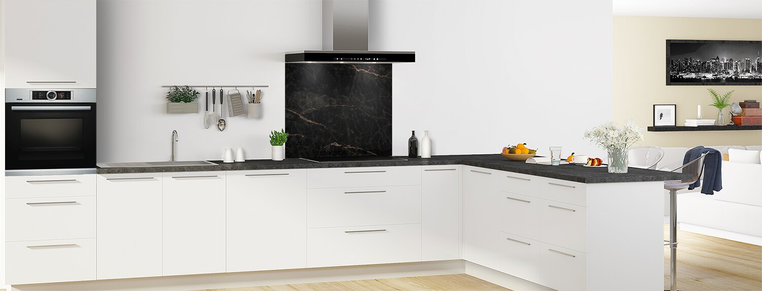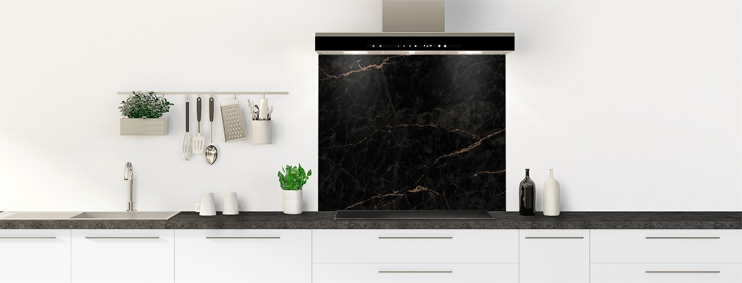 Succombez au charme intemporel du marbre noir pour créer une cuisine d'exception. Notre fond de hotte en polycarbonate et en aluminium est disponible dans différents formats pour s'adapter à toutes les cuisines. Ajoutez une touche de sophistication à votre espace de cuisson avec ce fond de hotte en marbre noir.