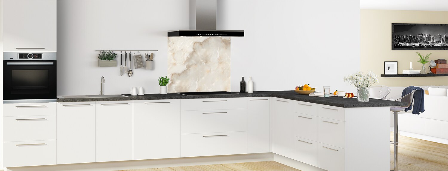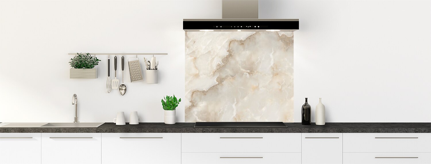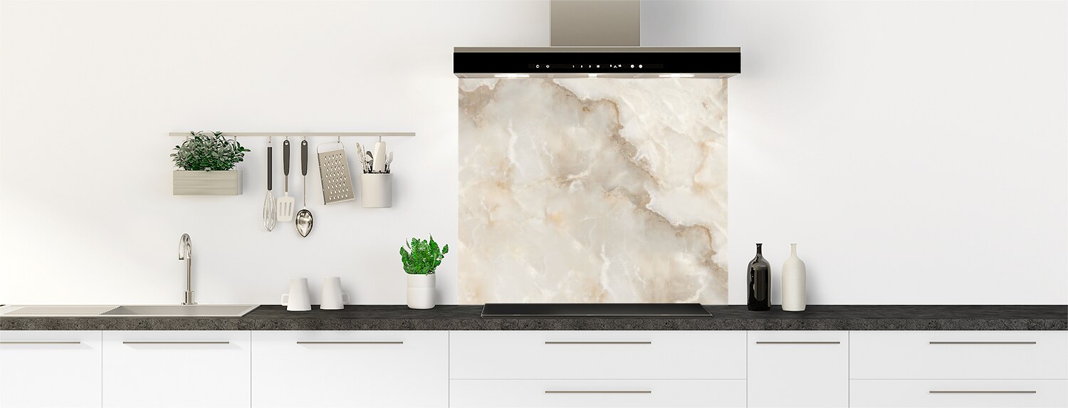 Ce décor Marbre brun vient enrichir notre gamme de décors Marbre pour la cuisine avec une proposition douce, chaleurseuse et authentique. Idéal et pratique pour masquer un ancien carrelage ou une faience de cuisine puisque nos panneaux sur mesure se découpent et se collent aisément.
