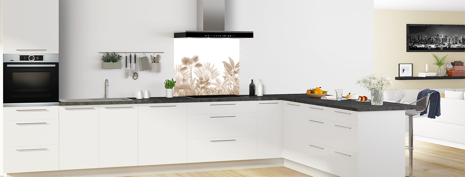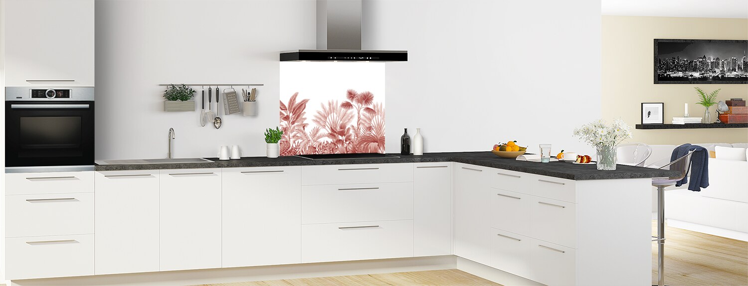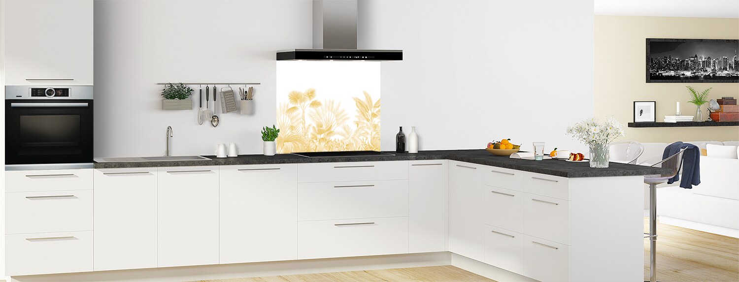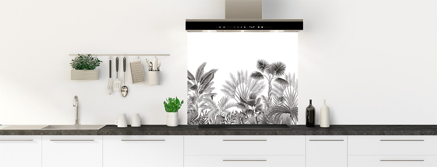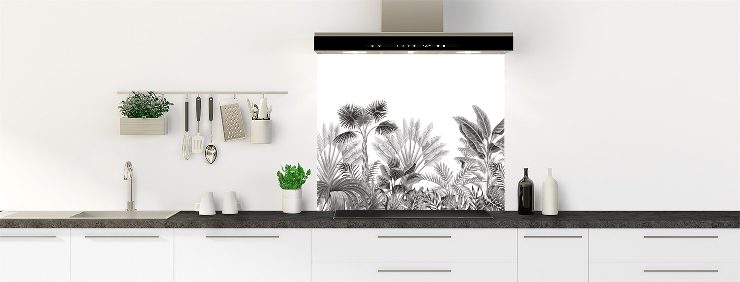 Ce fond de hotte s'inscrit dans la tendance actuelle des motifs végétaux au style tropical. Des illustrations tout en douceur pour une évasion garantie. Ce panneau mural décliné en 18 couleurs tendances est proposé en rendu brillant sur polycarbonate ou mat sur aluminium. Adaptez le en fond de hotte sur mesure dans votre cuisine en le commandant à vos dimensions et en le collant vous-même.
