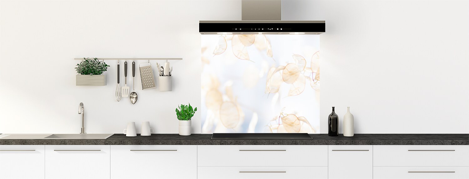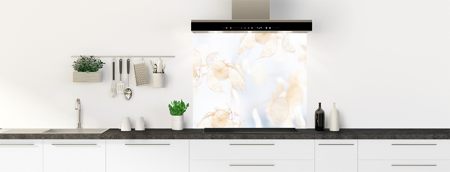 Un décor artistique et léger voire céleste, avec cette mise en scène poétique de la fleur Lunaire, plus connue sous le nom de Monnaie du pape ou Herbe aux écus. Une manière douce et originale de l'intégrer dans votre déco… 100% sur mesure, ce fond de hotte se colle facilement et rapidement sur un revêtement mural ou directement sur votre mur pour une déco soignée et originale en un tour de main !