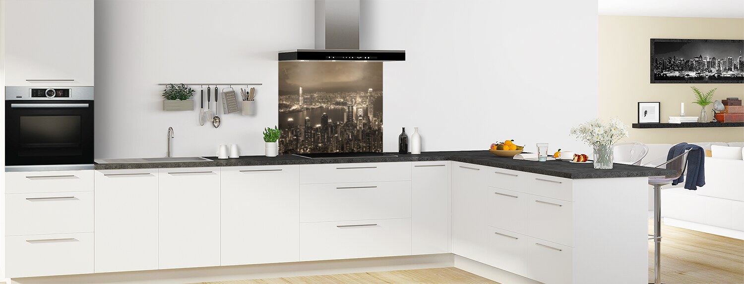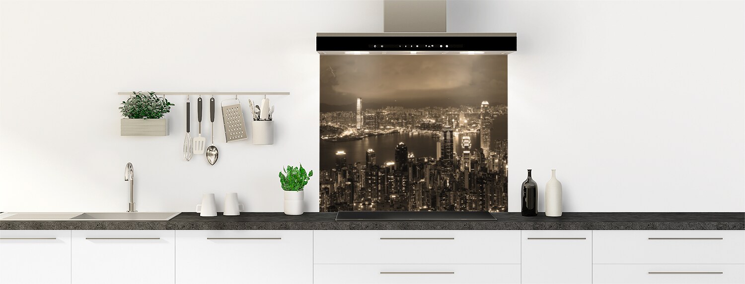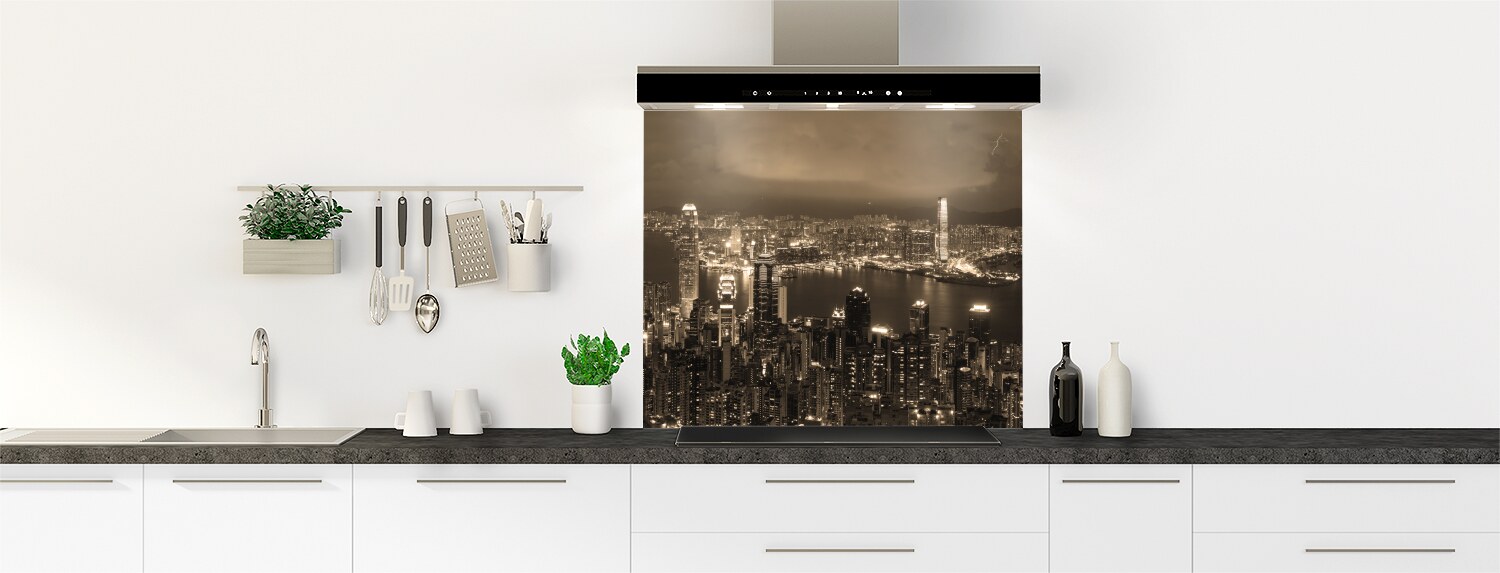 Fond de hotte cuisine déco  Hong Kong sépia