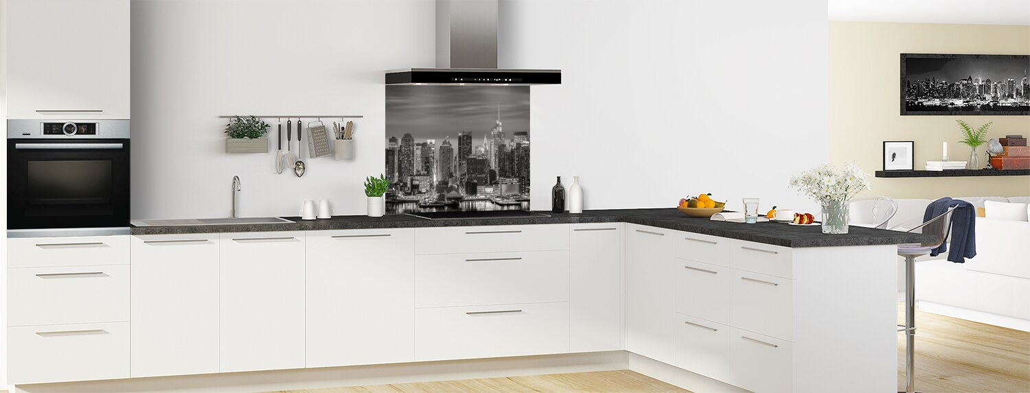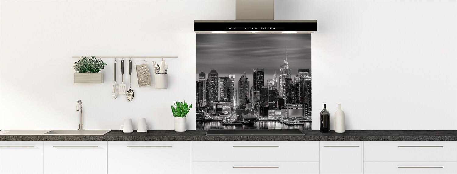 Ce fond de hotte déco sur le thème urbain New-York s'intègre parfaitement dans votre cuisine. Choisissez votre support pour un fond de hotte sur mesure. Disponible en trois teintes, il permet de recouvrir un ancien revêtement. Ici proposé en noir et blanc, il s'adaptera à tous les intérieurs.