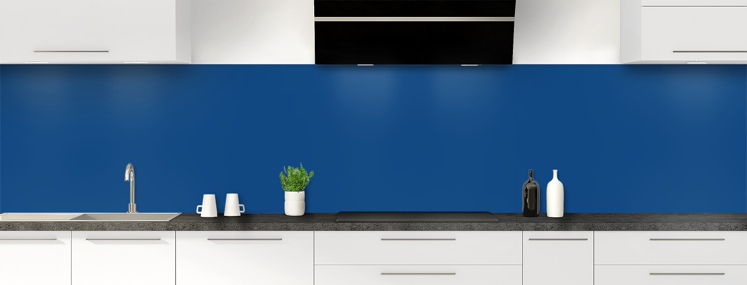 Crédence de cuisine couleur Bleu électrique, un bleu vif également appelé bleu dur ou bleu roi, qui ravira les amoureux de cette couleur. Crédence ou fond de hotte en brillant sur polycarbonate ou en mat sur aluminium. Crédence et fond de hotte à coller et sur mesure.