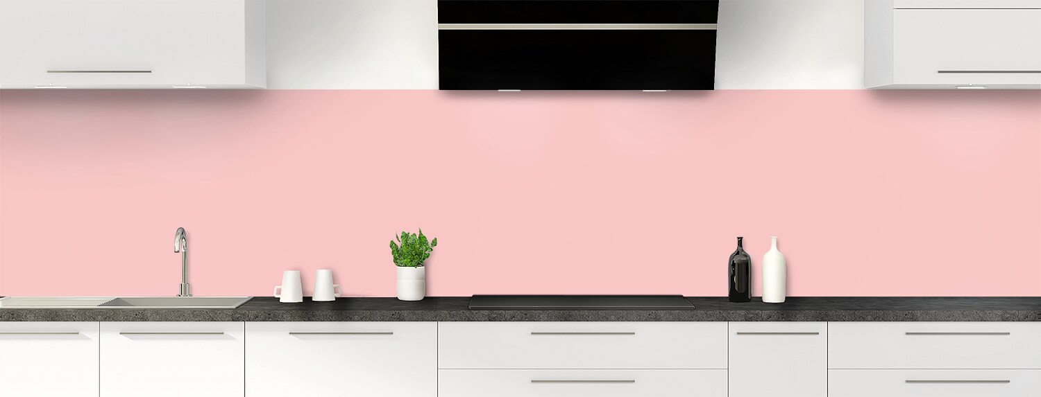 La crédence et fond de hotte couleur Quartz rose, un rose clair tirant sur le parme, apporte de la douceur à votre intérieur. Cette crédence de cuisine sur mesure est idéale pour rénover votre cuisine puisqu'elle se découpe et se colle sur tous support.