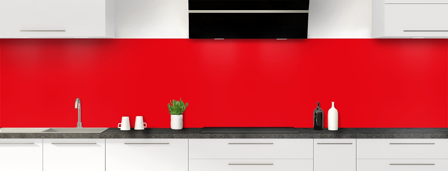 Fond de hotte ou crédence couleur Rouge vermillon, un rouge vif qui donne du caractère à votre intérieur. Cette crédence de cuisine à coller est proposée en couleur rouge brillant sur polycarbonate ou rouge mat sur aluminium.