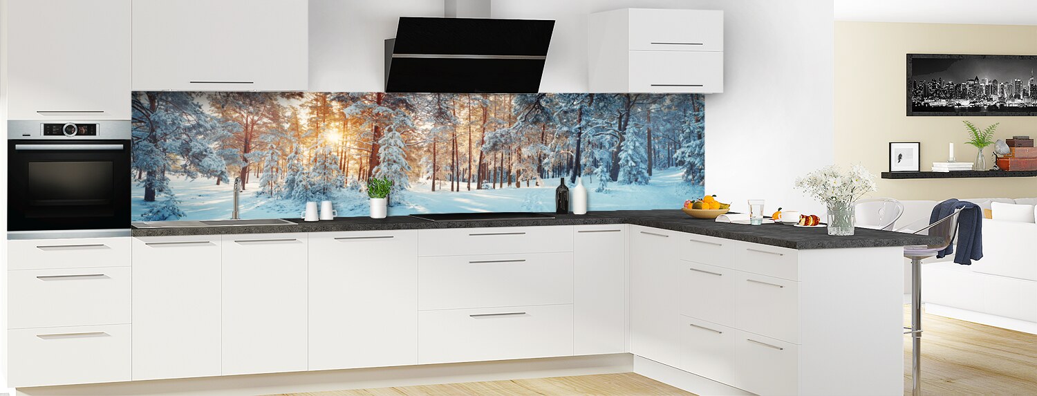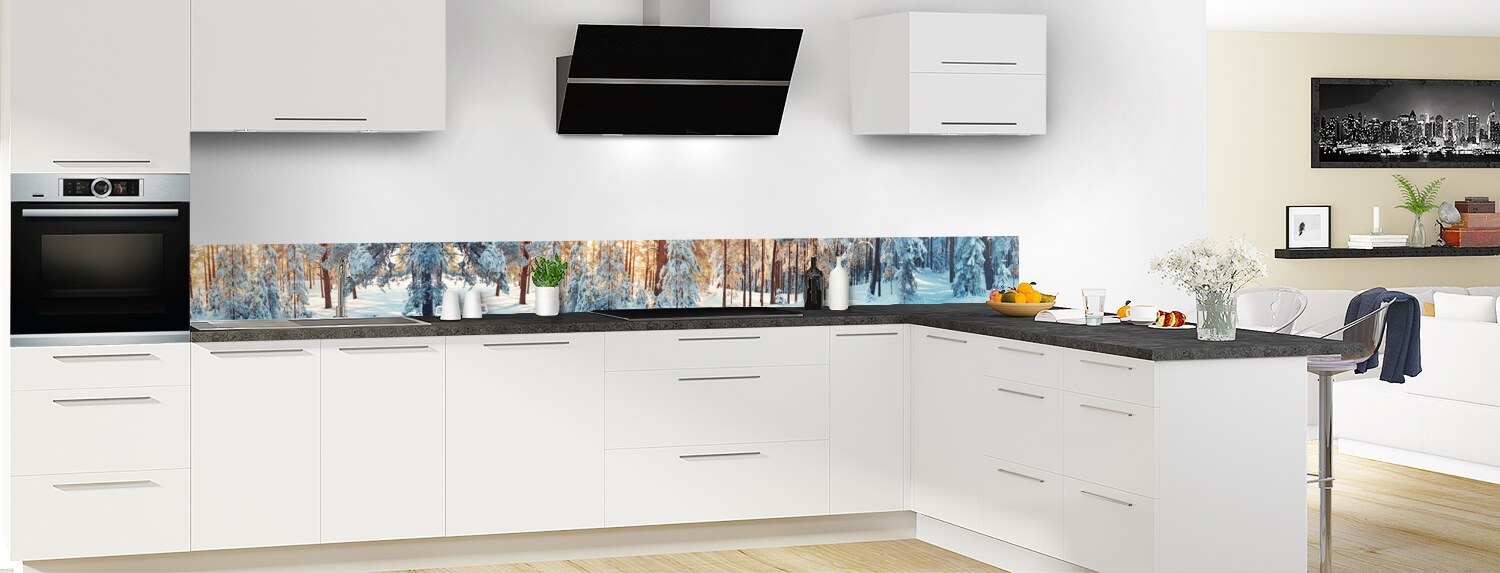 Amoureux de la nature et de la neige, cette crédence de cuisine est faite pour vous. Jouez avec le contraste de lumière et de couleurs pour personnaliser votre intérieur. Choisissez parmi deux formats et deux supports pour une crédence sur mesure. Les matériaux adhésifs sont parfaits pour masquer un ancien carrelage.