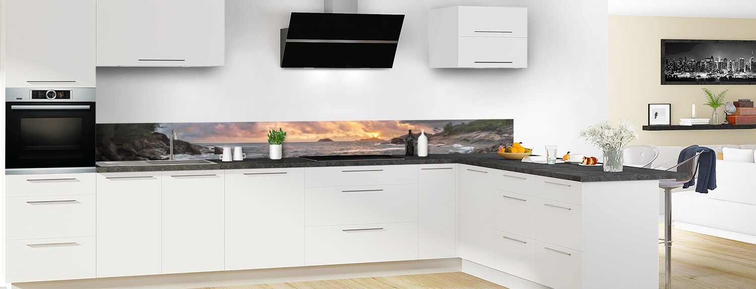 Cette crédence déco est une véritable invitation au voyage et s'intègre parfaitement dans votre cuisine. Disponible en plusieurs formats, choisissez également votre support pour une crédence de cuisine sur mesure.