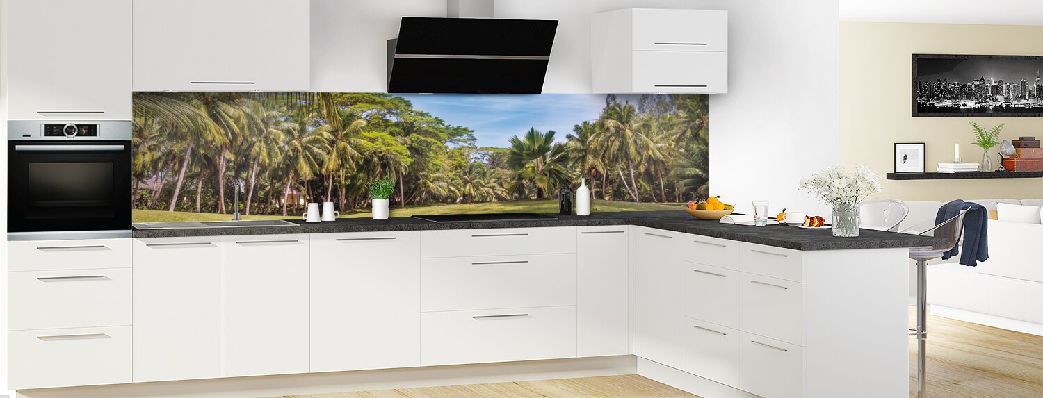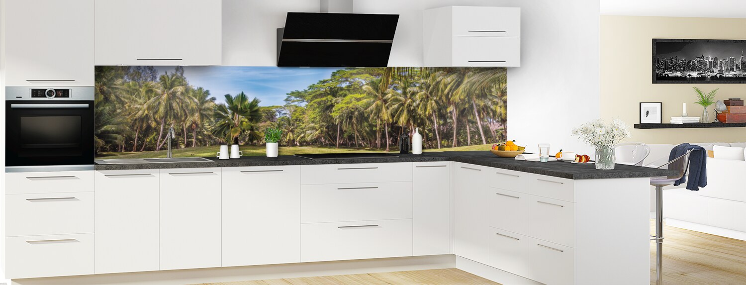 La taille maximum pour un panneau est de 260 cm x 145 cm. Si votre projet dépasse cette taille, votre crédence sera livrée en 2 sections. Le champ « coupe » vous permet de choisir le positionnement du raccord, notre service graphique se charge ensuite d’adapter le décor en continu sur les 2 sections.