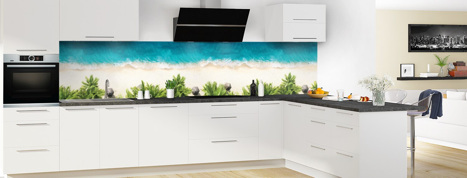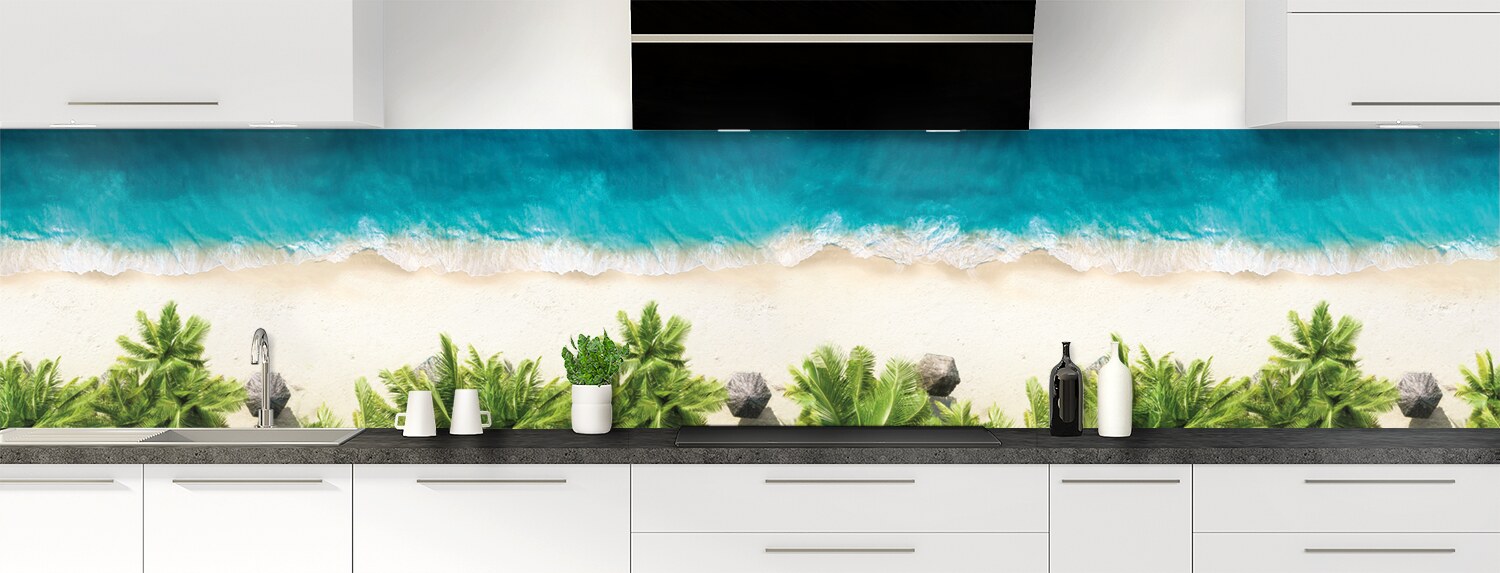 Comblez vos envies de voyage grâce à ce décor paradisiaque, déclinable en plusieurs formats. Les deux supports disponibles sont parfaits pour rénover votre cuisine puisqu'ils se découpent et se collent facilement pour un résultat sur mesure.