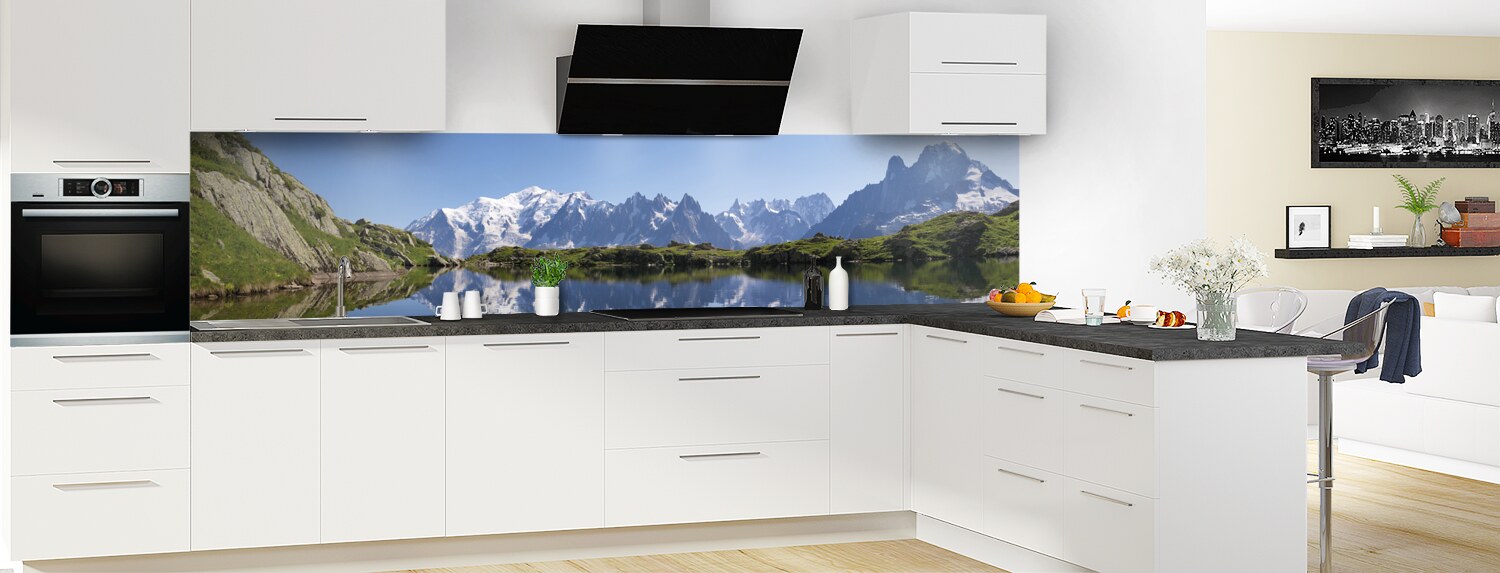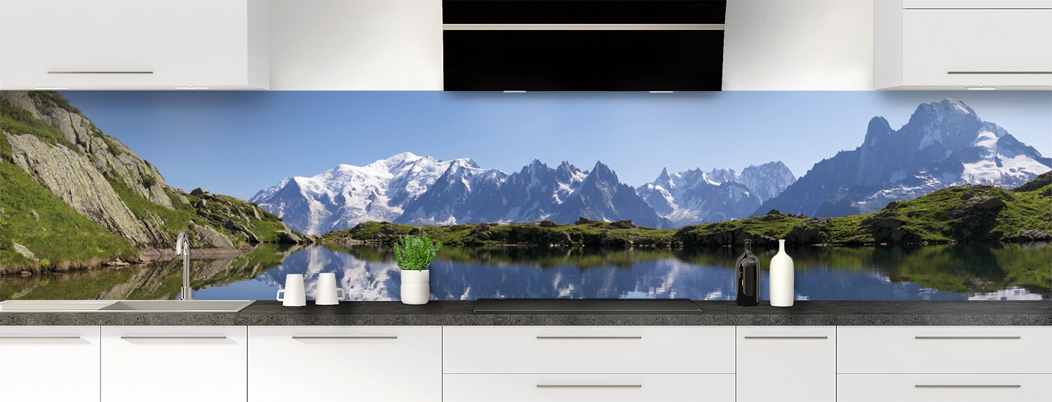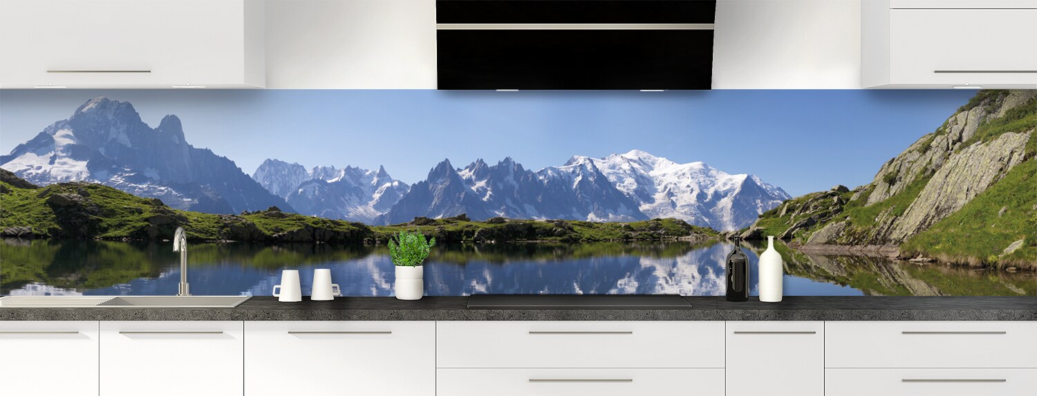 Envolez-vous au sommet des montagnes et respirez un bon bol d'air frais et revigorant avec cette crédence de cuisine sur mesure. Les deux supports disponibles sont parfaits pour recouvrir un ancien revêtement et proposent deux finitions distinctes : mate pour l'aluminium et brillante pour le polycarbonate.