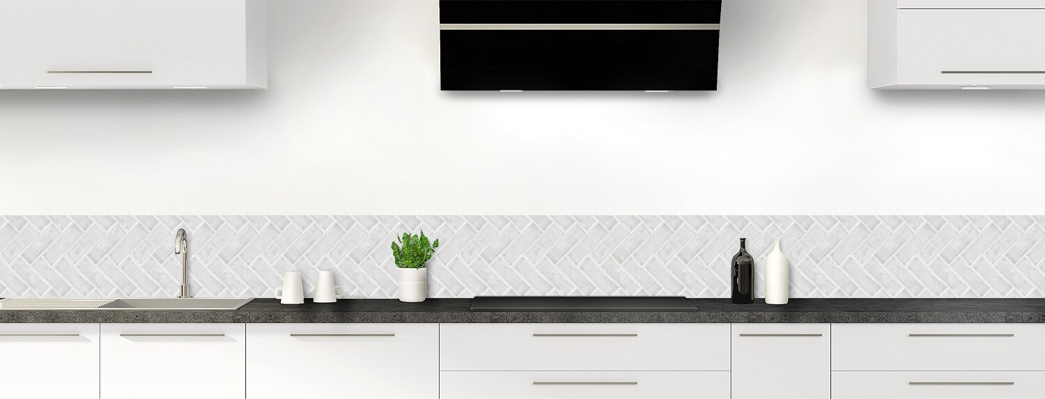 Votre crédence fait 3200 mm / 320 cm de longueur, vous devez dans ce cas choisir l’endroit de la coupe (peut-être en fonction d’un meuble, d’un robinet, d’un robot ménager, etc...).