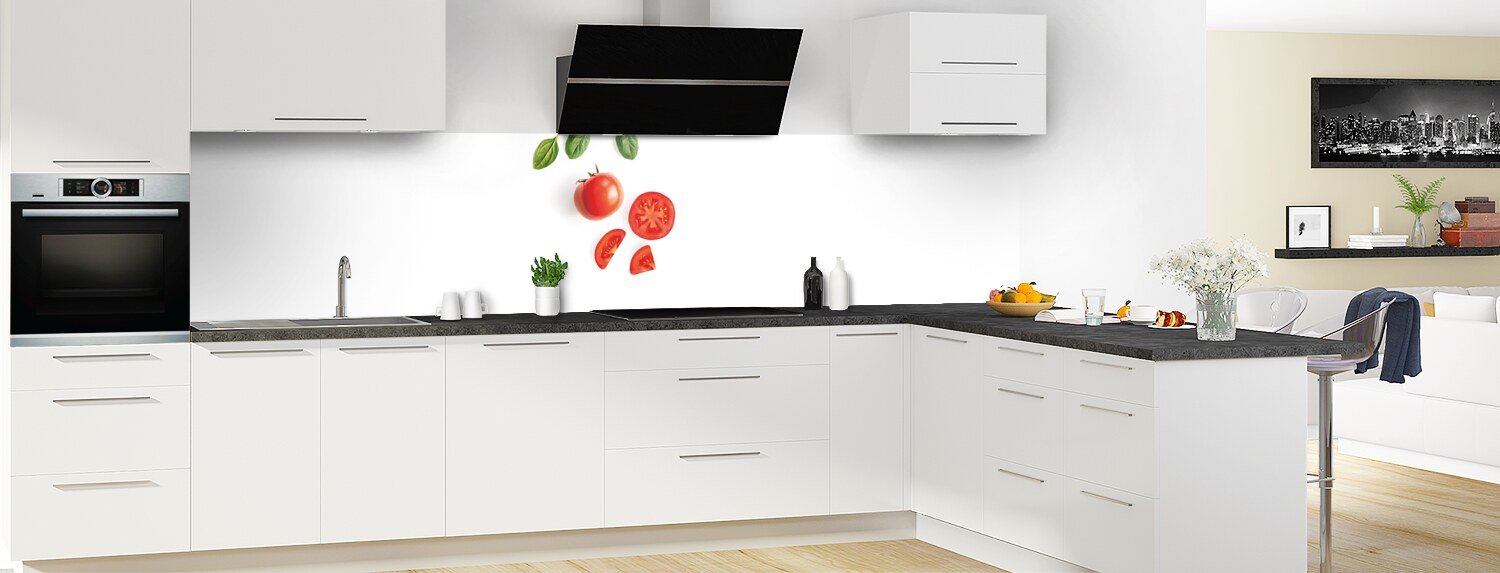 En crédence ou fond de hotte, ce décor épuré aux saveurs de l'Italie apportera une touche fraîche et gourmande à votre cuisine. Cette crédence de cuisine sur mesure est idéale pour rénover votre cuisine puisqu'elle se découpe et se colle sur tous supports.