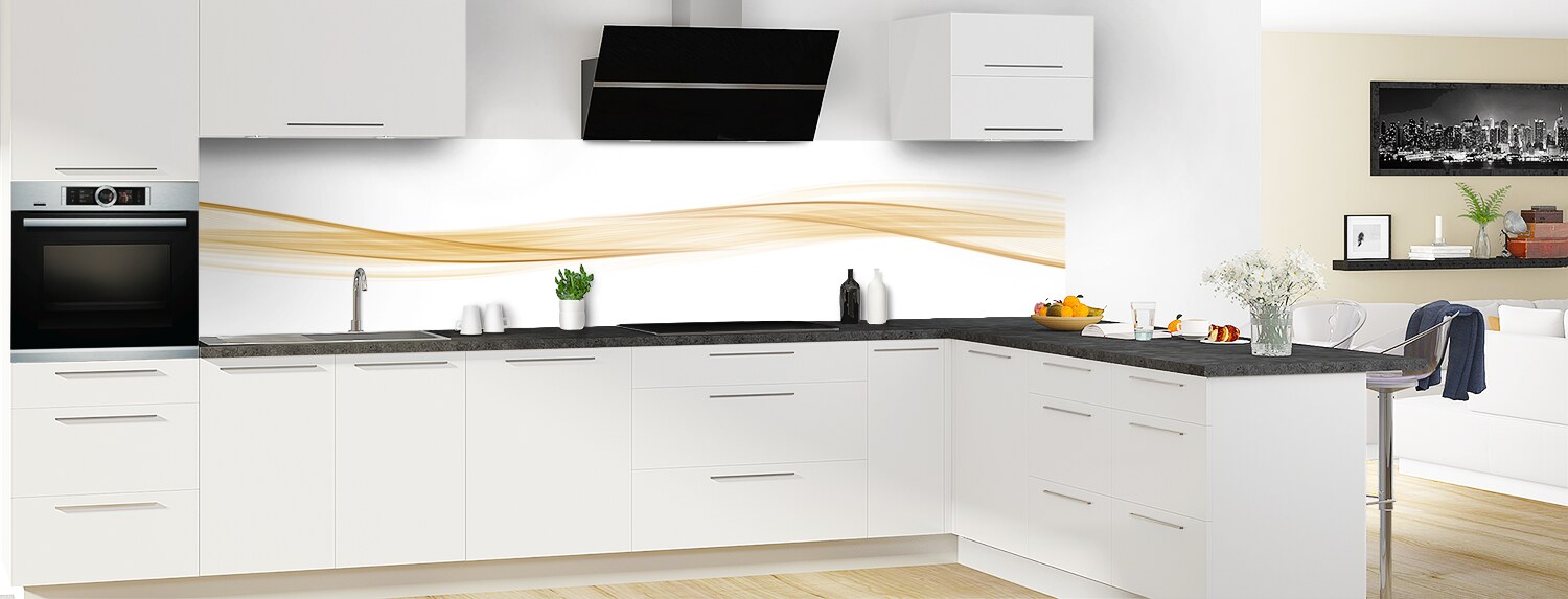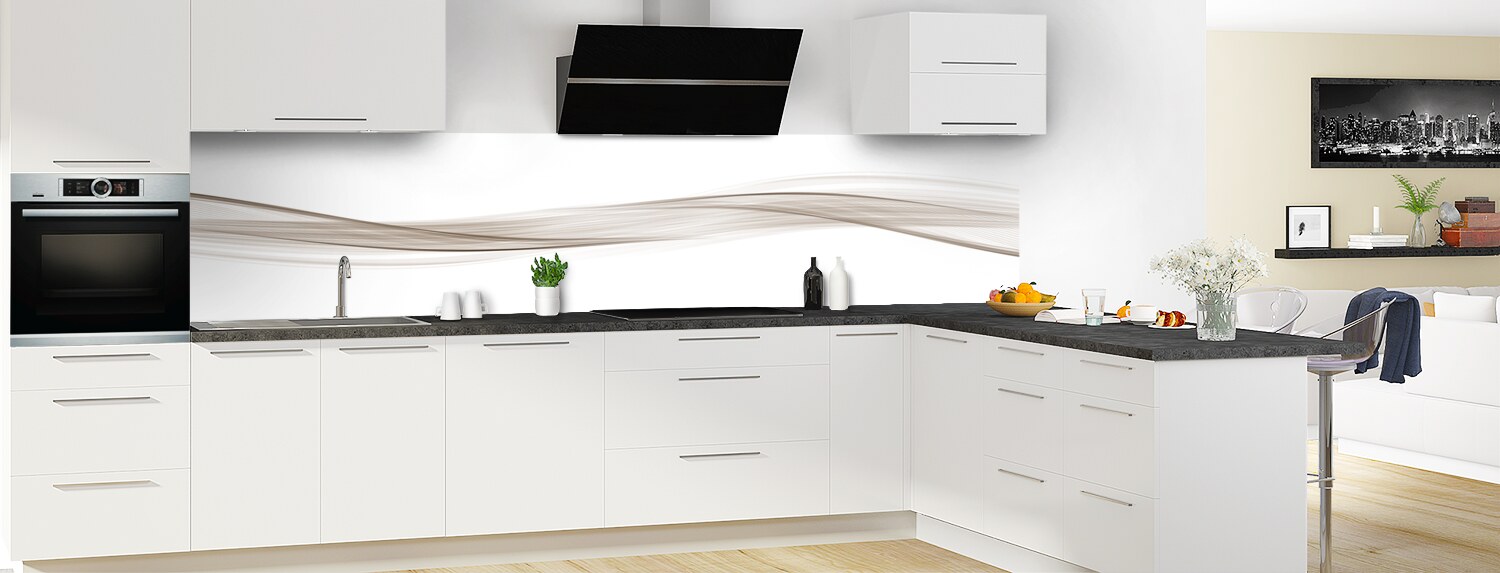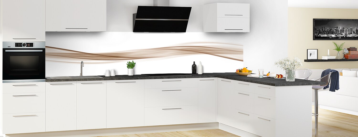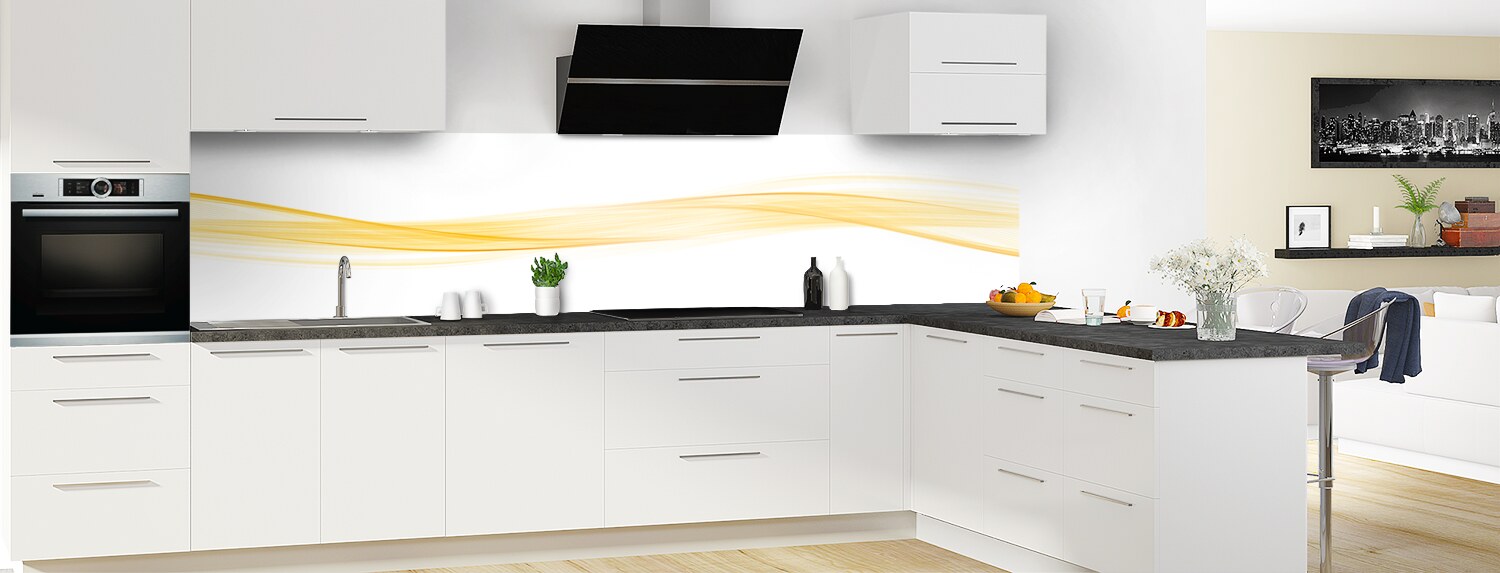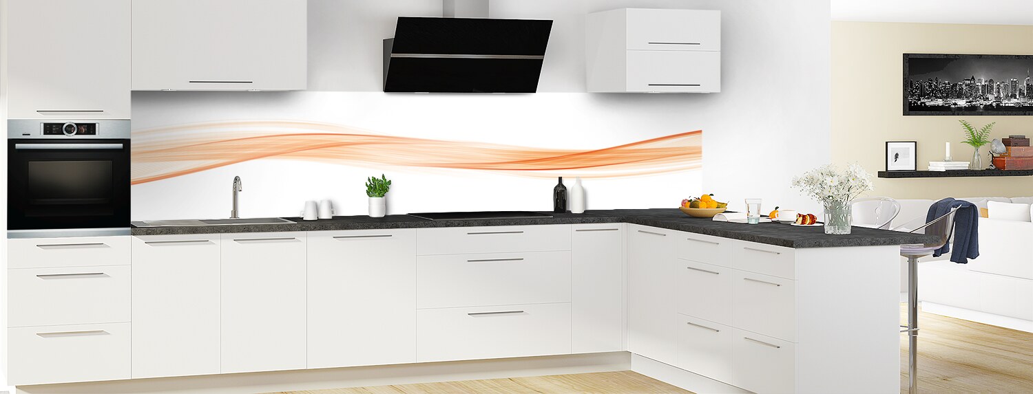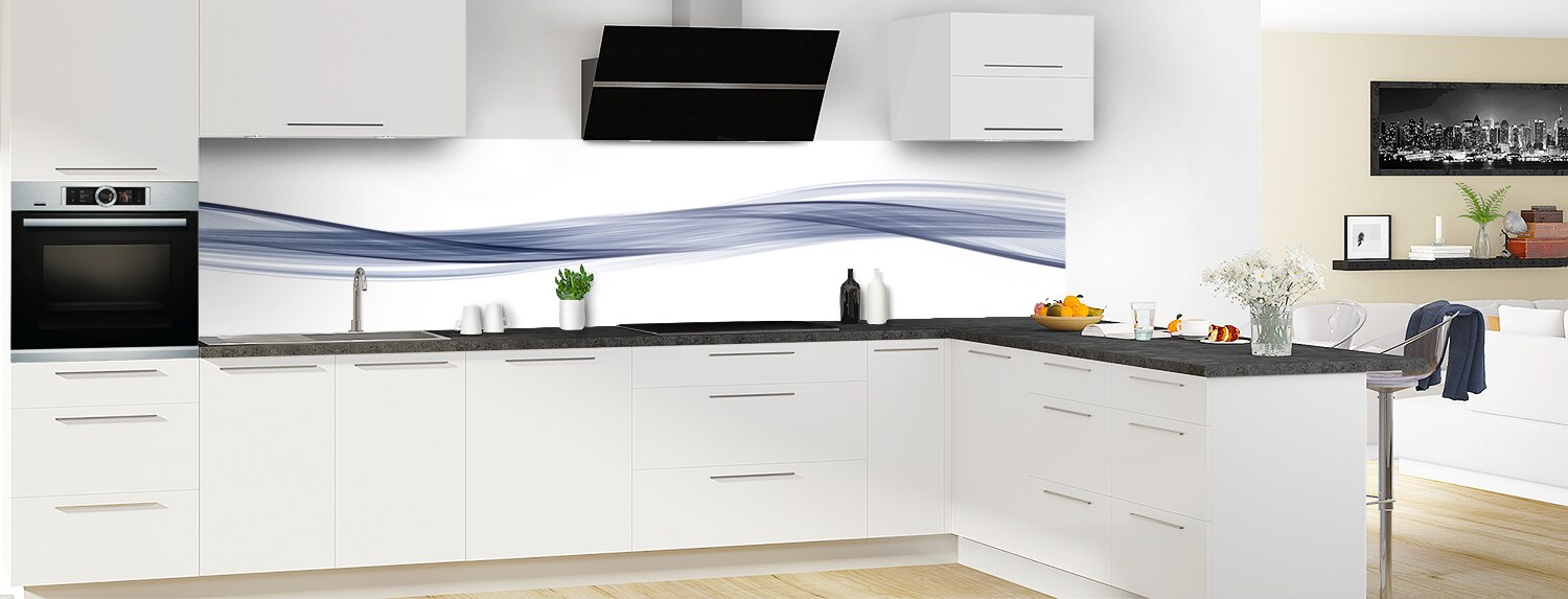 Sublimez votre cuisine avec cette vague graphique très tendance, déclinable en plusieurs couleurs et sur plusieurs formats. Les deux supports proposés se découpent et se collent aisément pour un produit sur mesure.