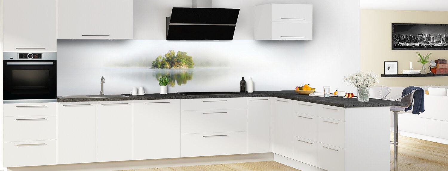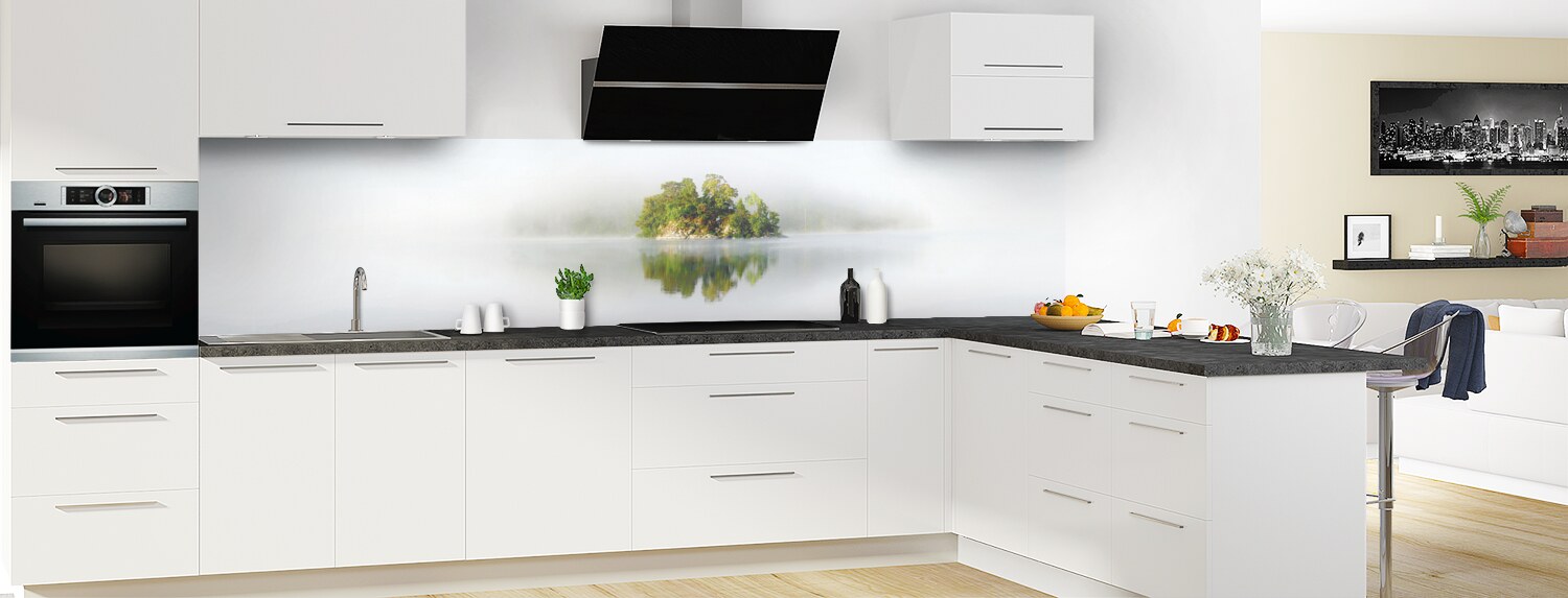 Evadez-vous grâce à la pureté de cette crédence déco " Ilôt dans la brume ", proposée en 3 formats différents. Les supports disponibles : polycarbonate et aluminium se découpent et se collent facilement pour un rendu sur mesure.
