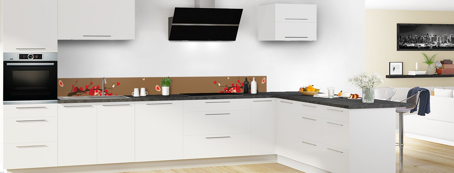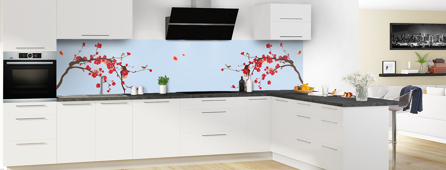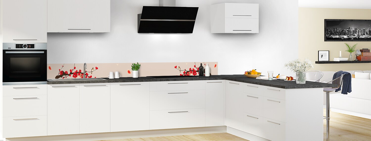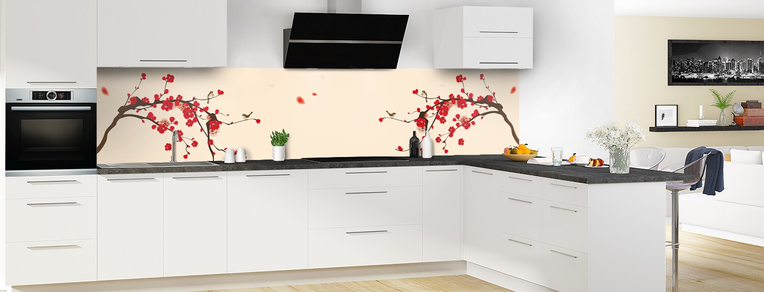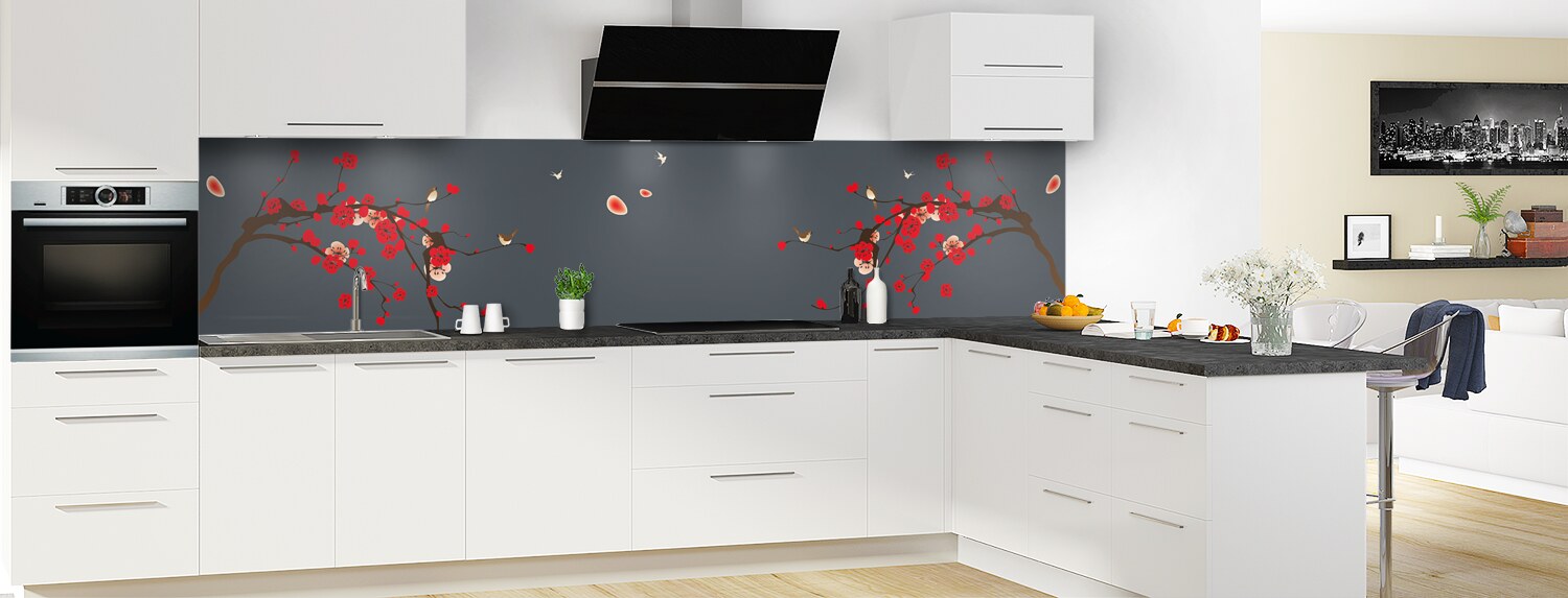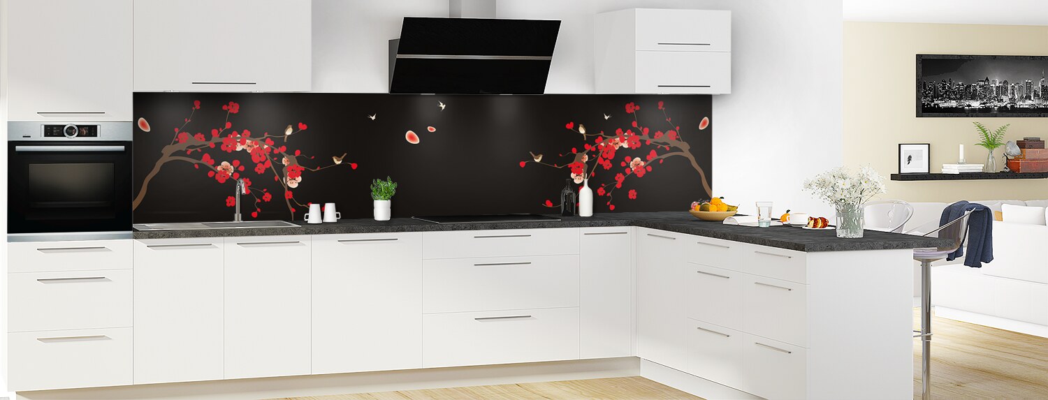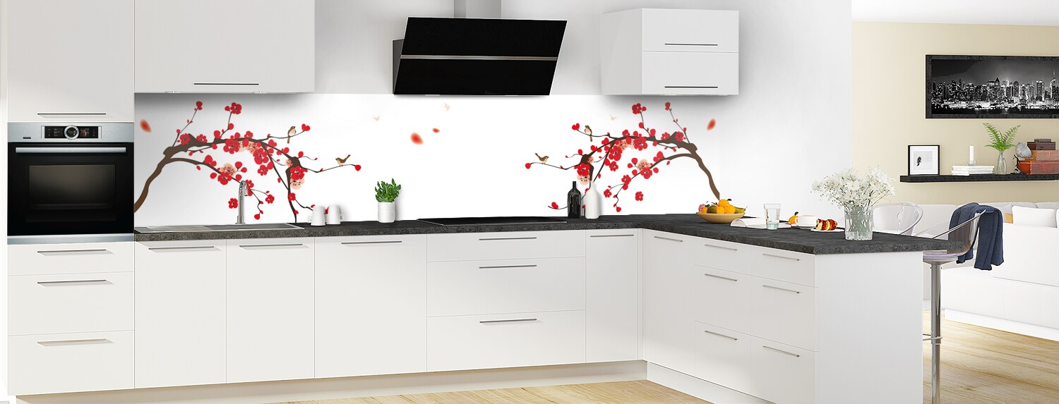 Comblez vos envies de voyage avec cette crédence florale aux influences japonaises. Parfaits pour rénover votre cuisine, les deux supports proposés : le polycarbonate et l'aluminium se posent et s'entretiennent facilement.