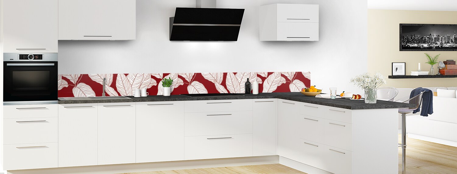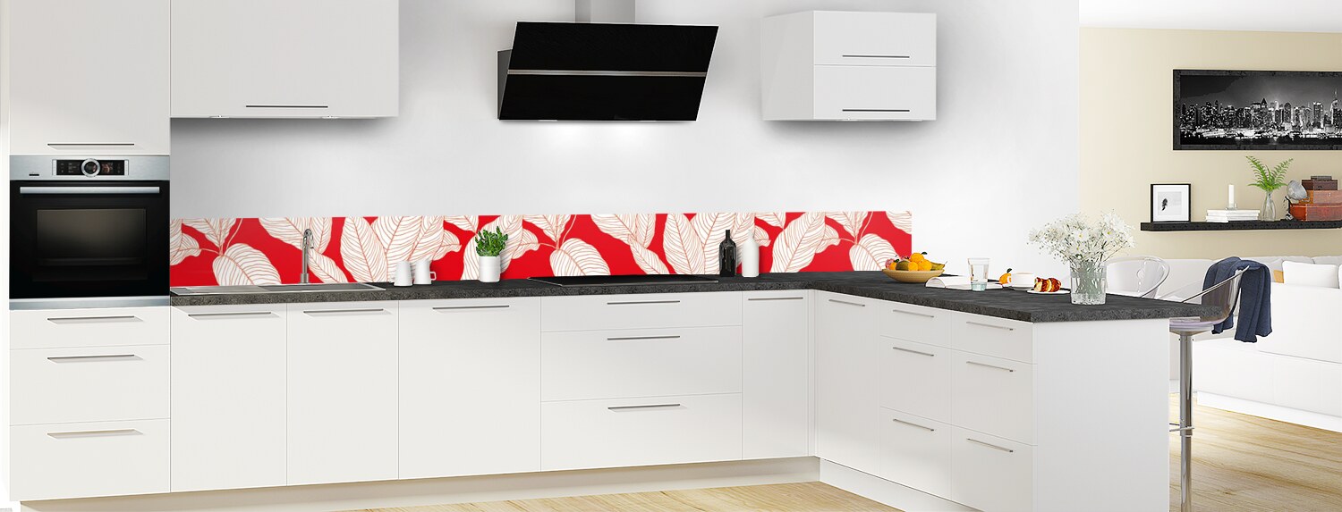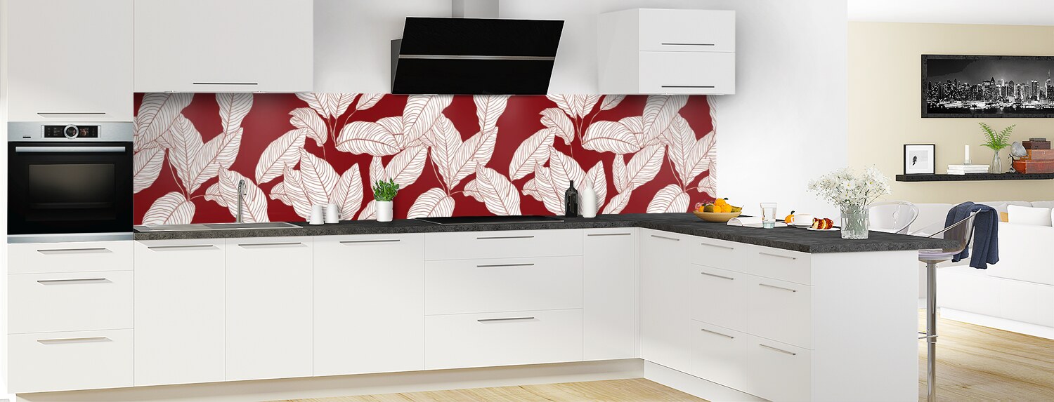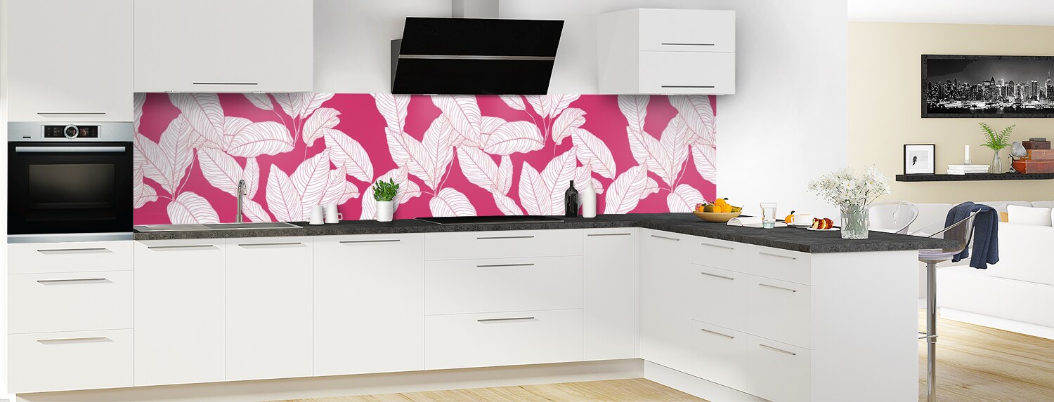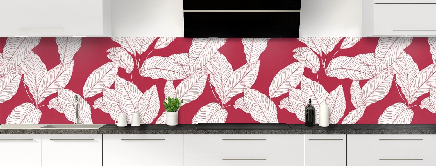 Apportez de la couleur dans votre cuisine avec ce support à motif végétal décliné en 25 couleurs et disponible en finition brillante sur polycarbonate ou mate sur aluminium pour un rendu unique et sur mesure.