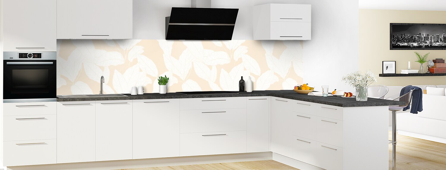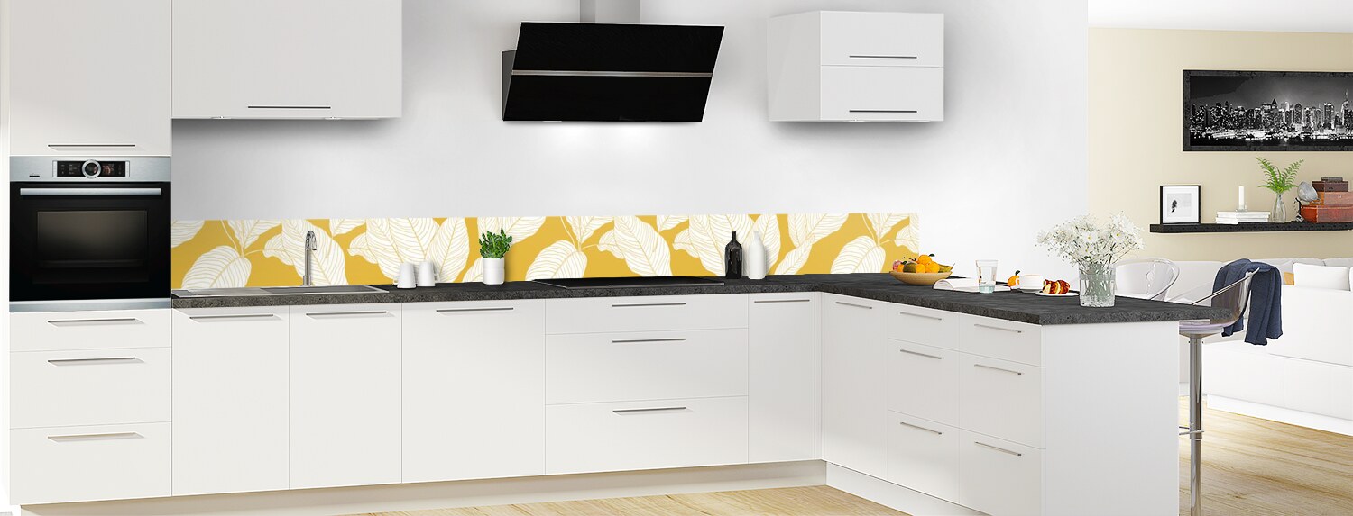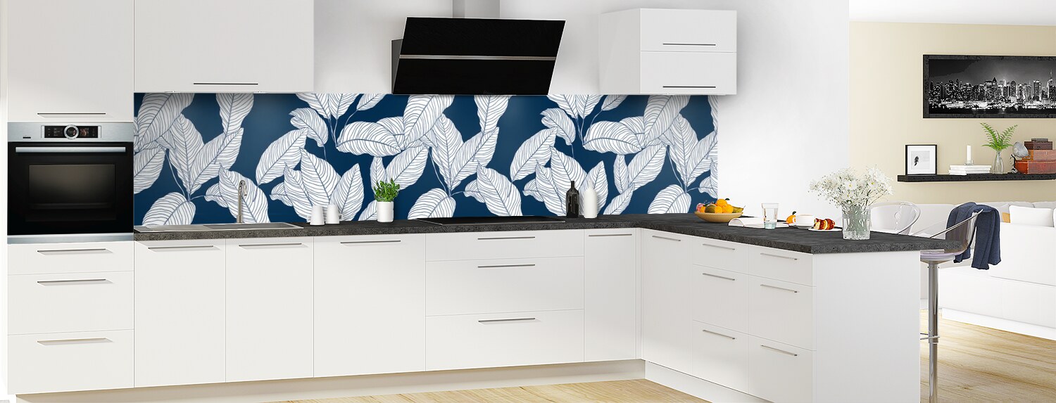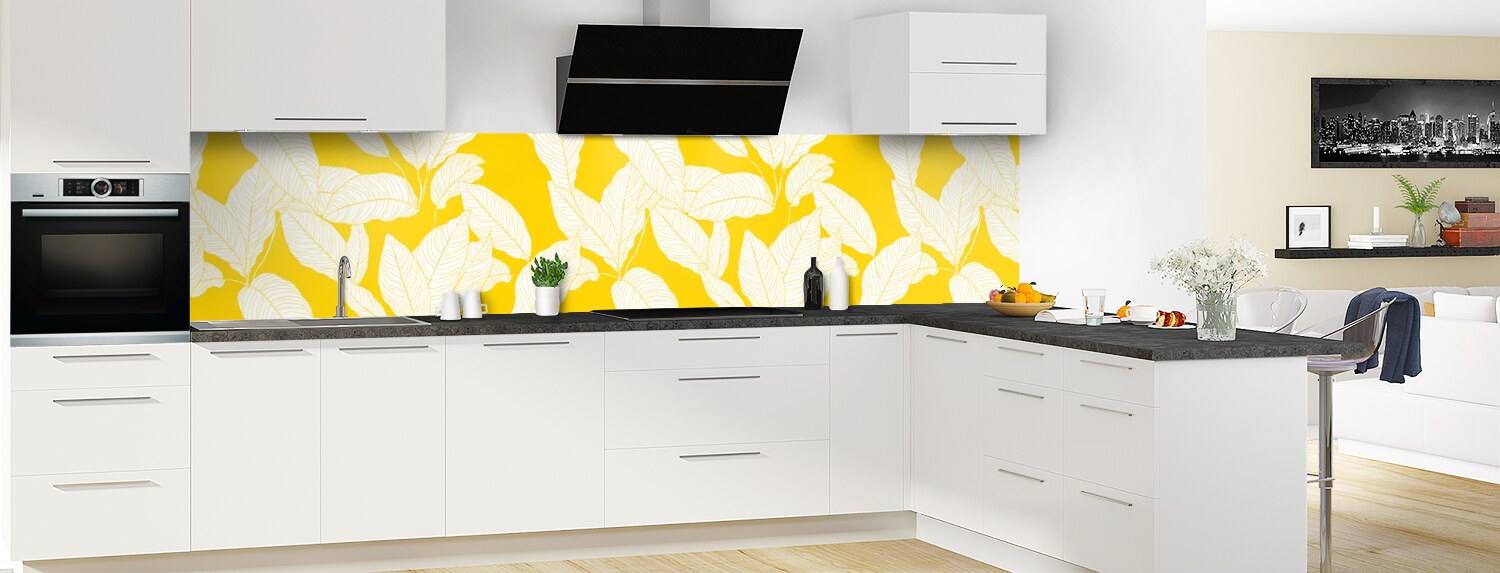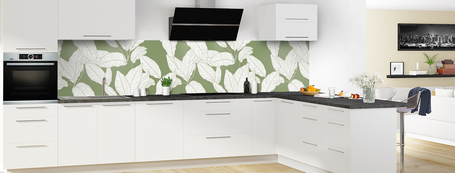 Apportez de la couleur dans votre cuisine avec ce support à motif végétal décliné en 25 couleurs et disponible en finition brillante sur polycarbonate ou mate sur aluminium pour un rendu unique et sur mesure.