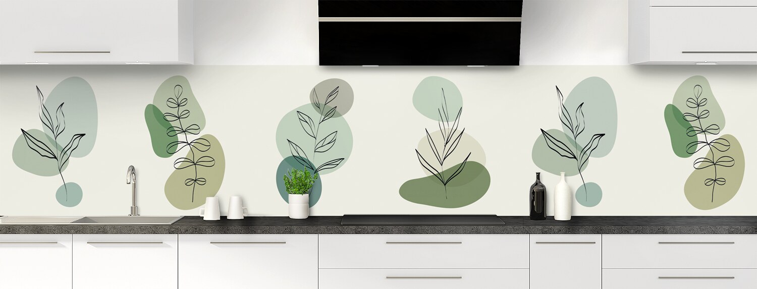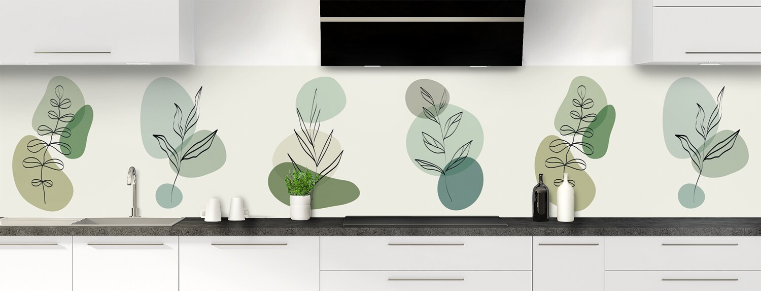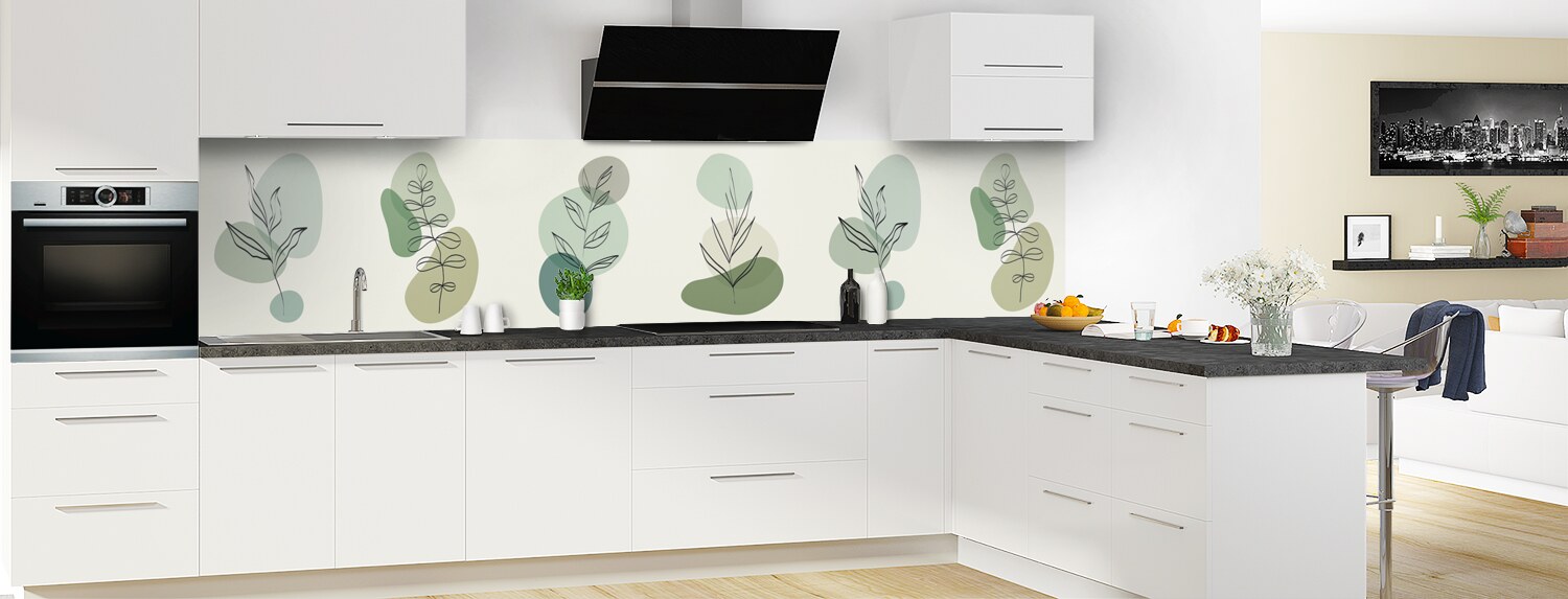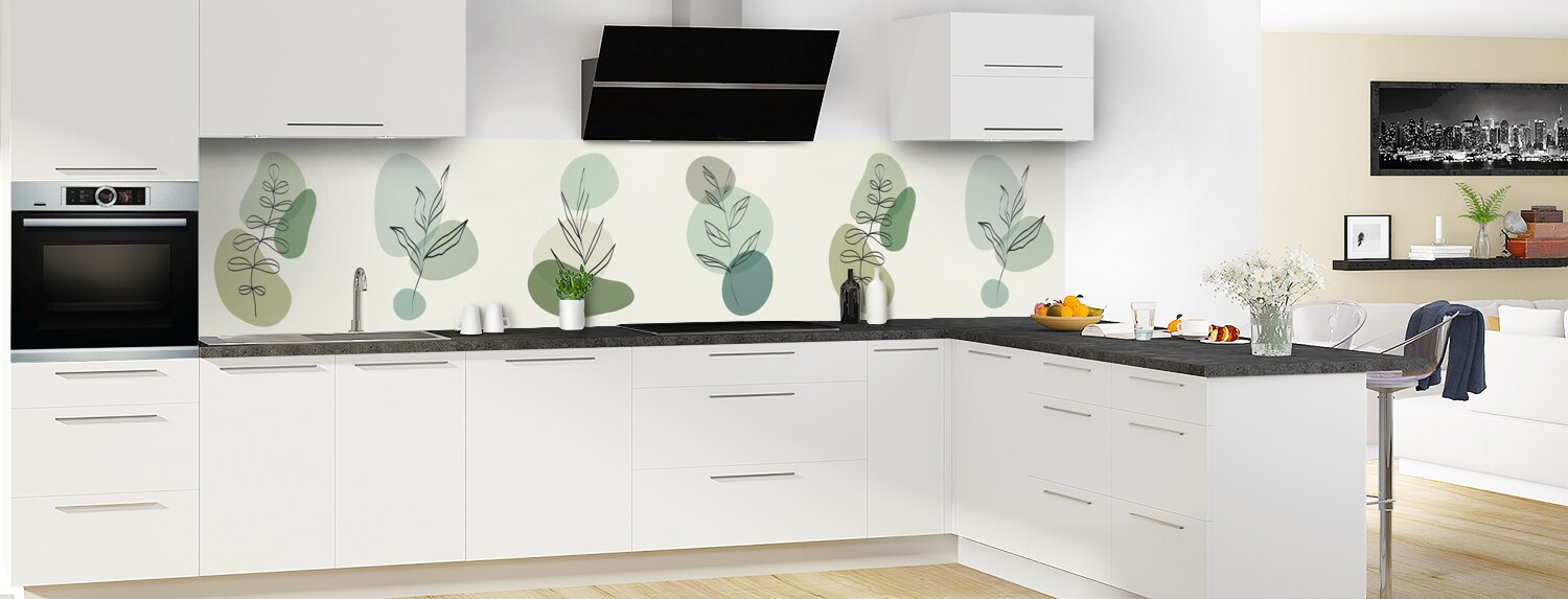 Une crédence au style graphique original et tout en légèreté avec ses touches de couleurs dans les tons vert et gris et ses illustrations végétales au trait. Disponible en brillant sur polycarbonate ou mat sur aluminium. Panneau à coller idéal pour masquer un ancien carrelage.
