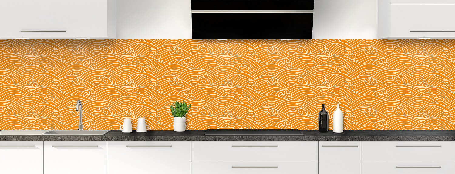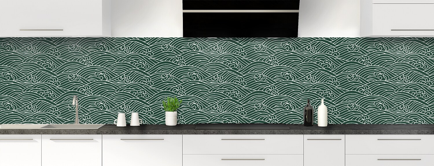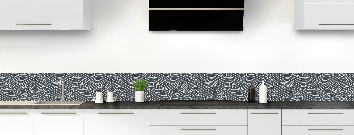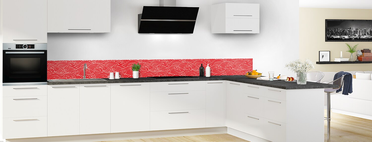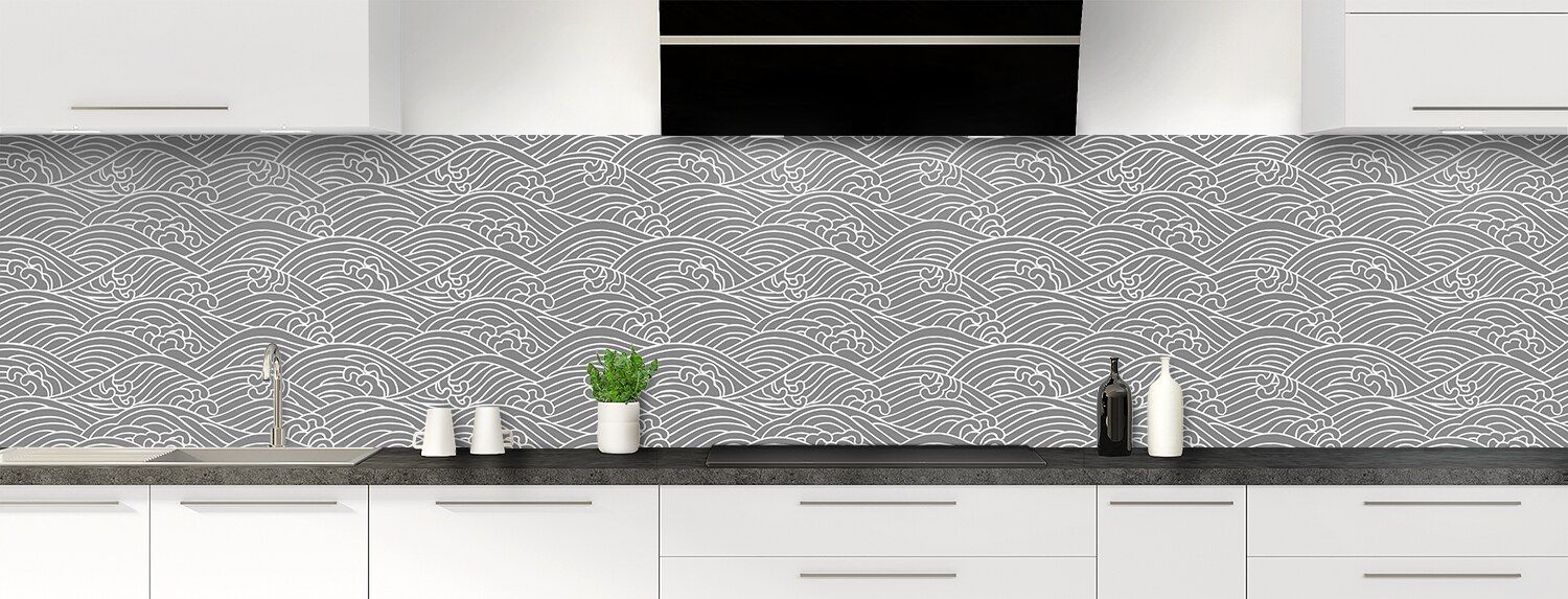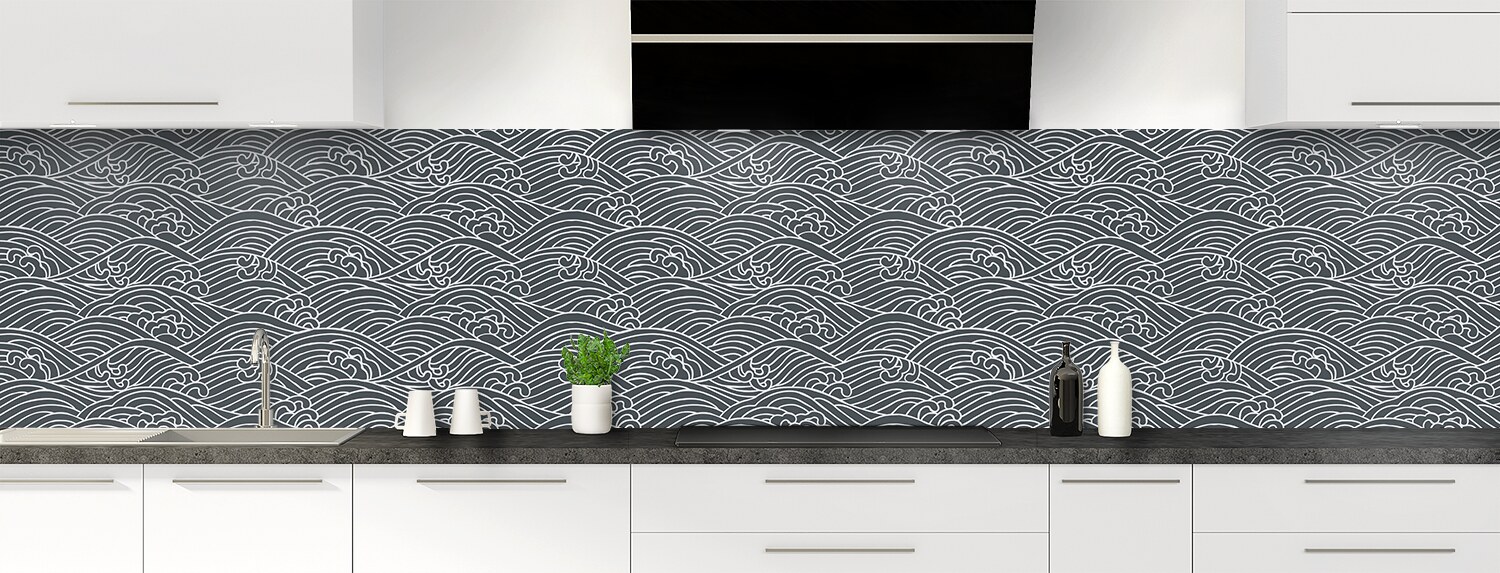 Plongez dans un univers graphique inspiré du Japon avec cette crédence de cuisine sur mesure. Les deux supports disponibles sont parfaits pour recouvrir un ancien revêtement et proposent deux finitions distinctes : mate pour l'aluminium et brillante pour le polycarbonate.