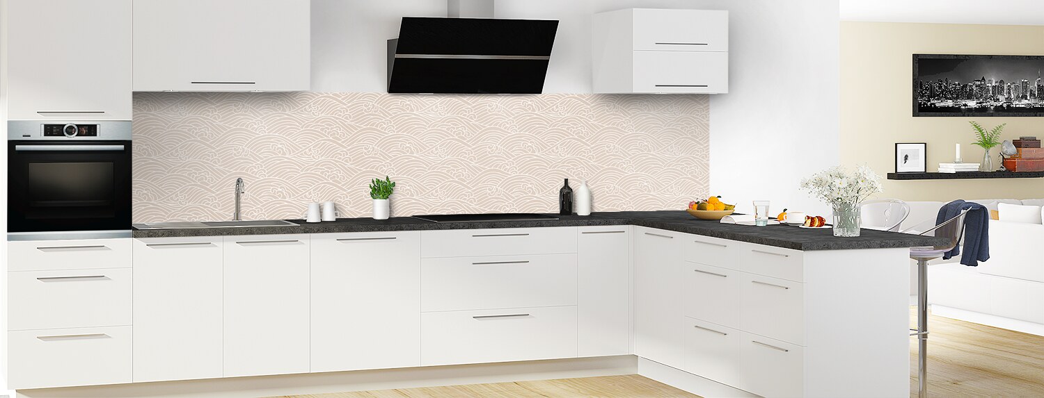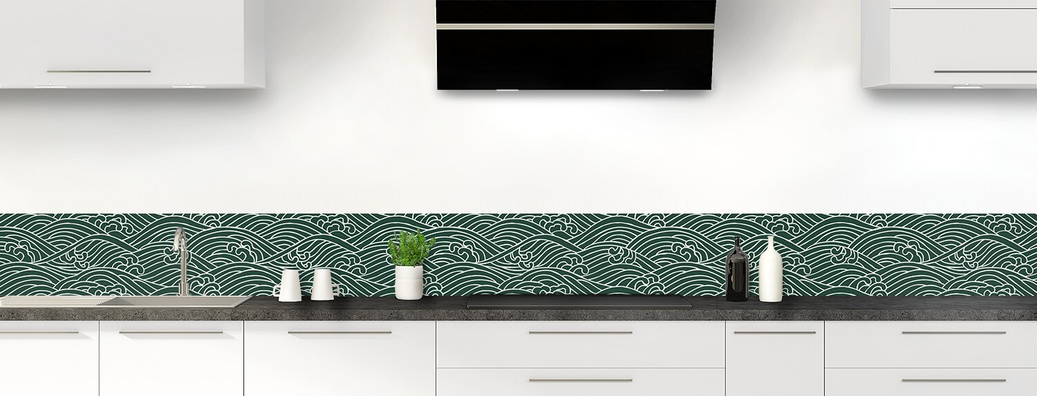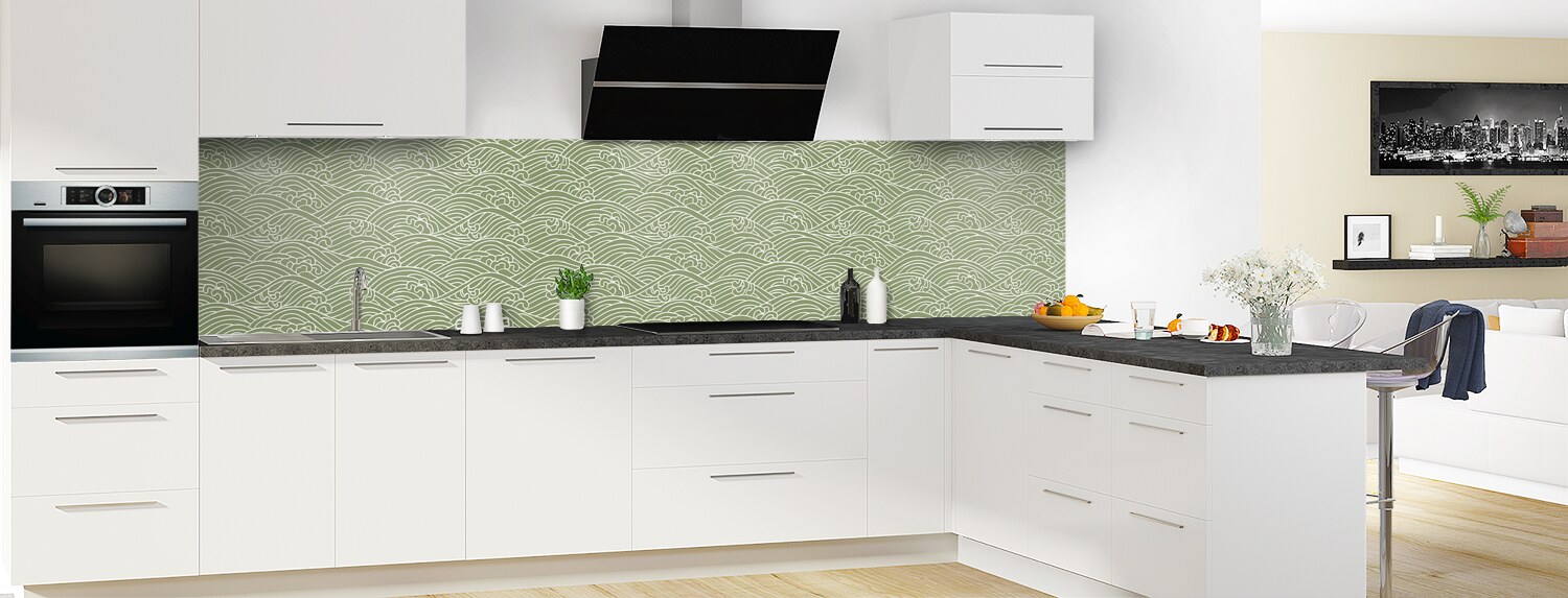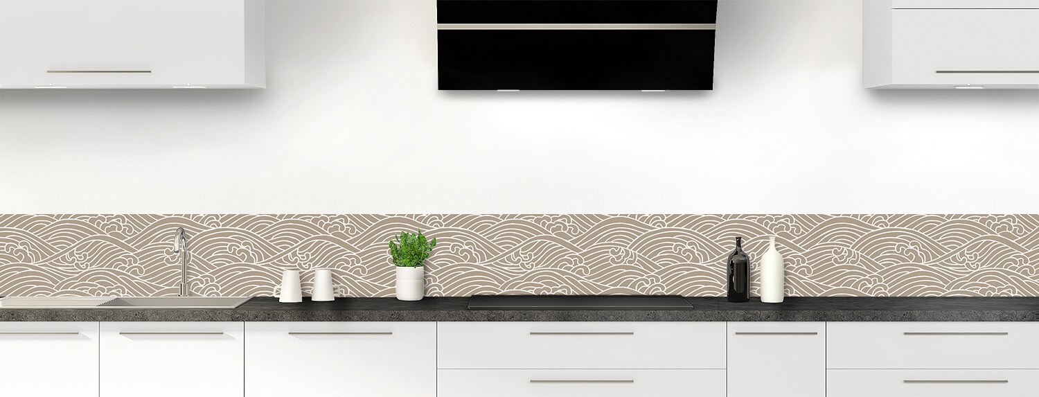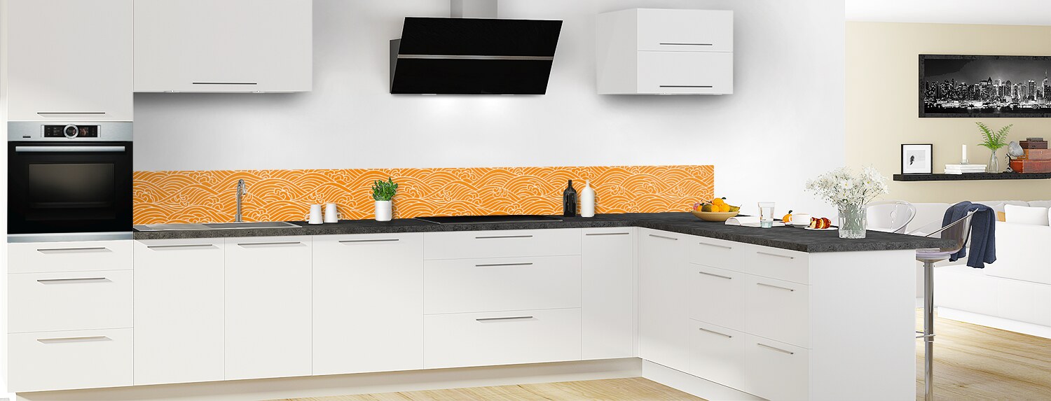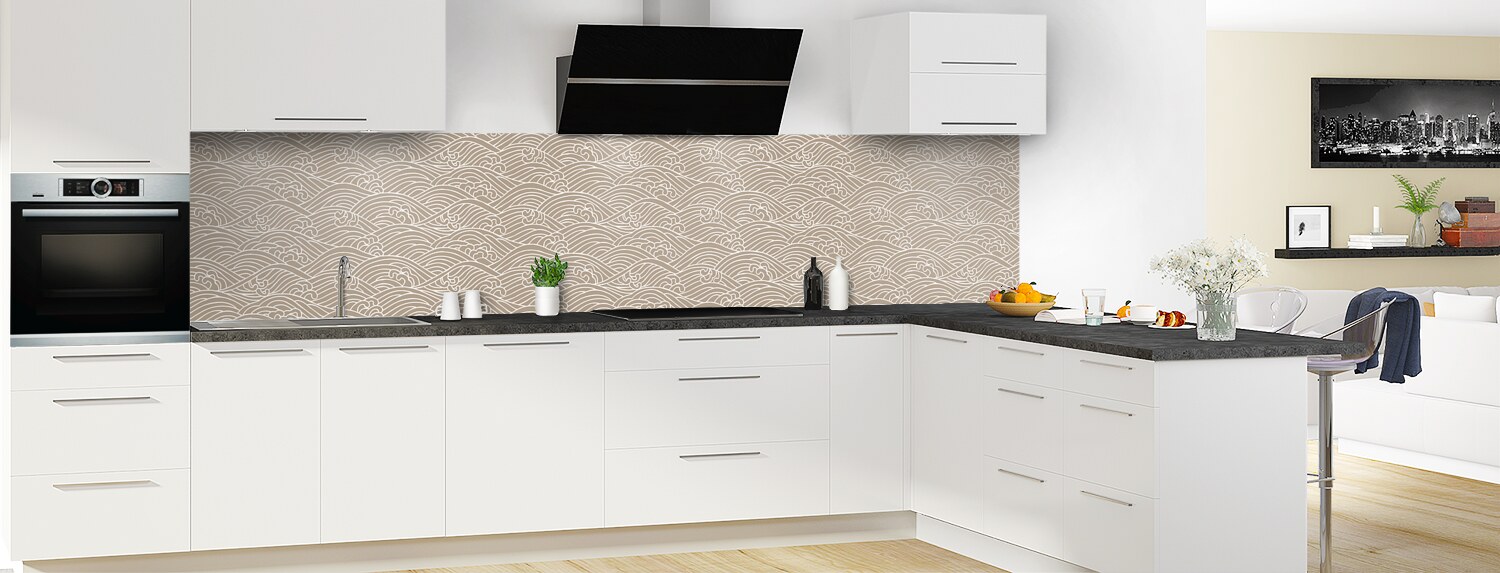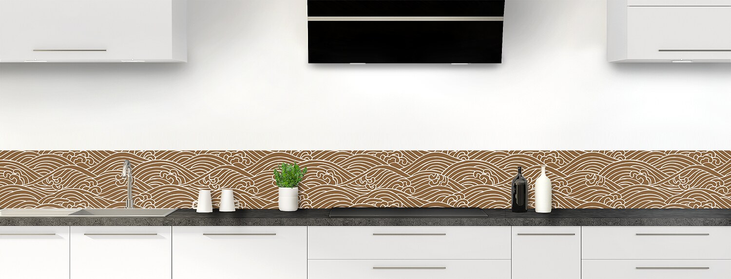 Plongez dans un univers graphique inspiré du Japon avec cette crédence de cuisine sur mesure. Les deux supports disponibles sont parfaits pour recouvrir un ancien revêtement et proposent deux finitions distinctes : mate pour l'aluminium et brillante pour le polycarbonate.