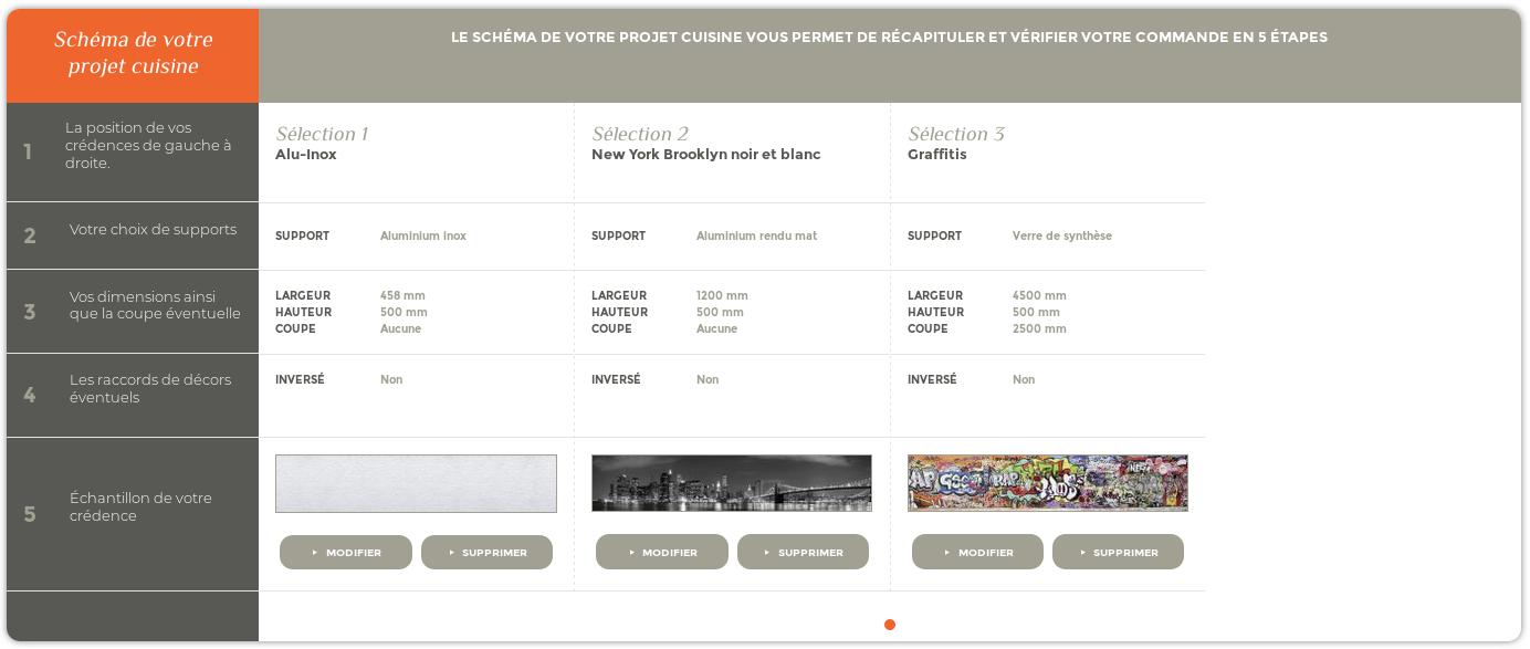 Corrigez directement les mesures dans les champs « Hauteur » et « Largeur » des crédences concernées afin que la première soit la plus à gauche et la dernière la plus à droite.