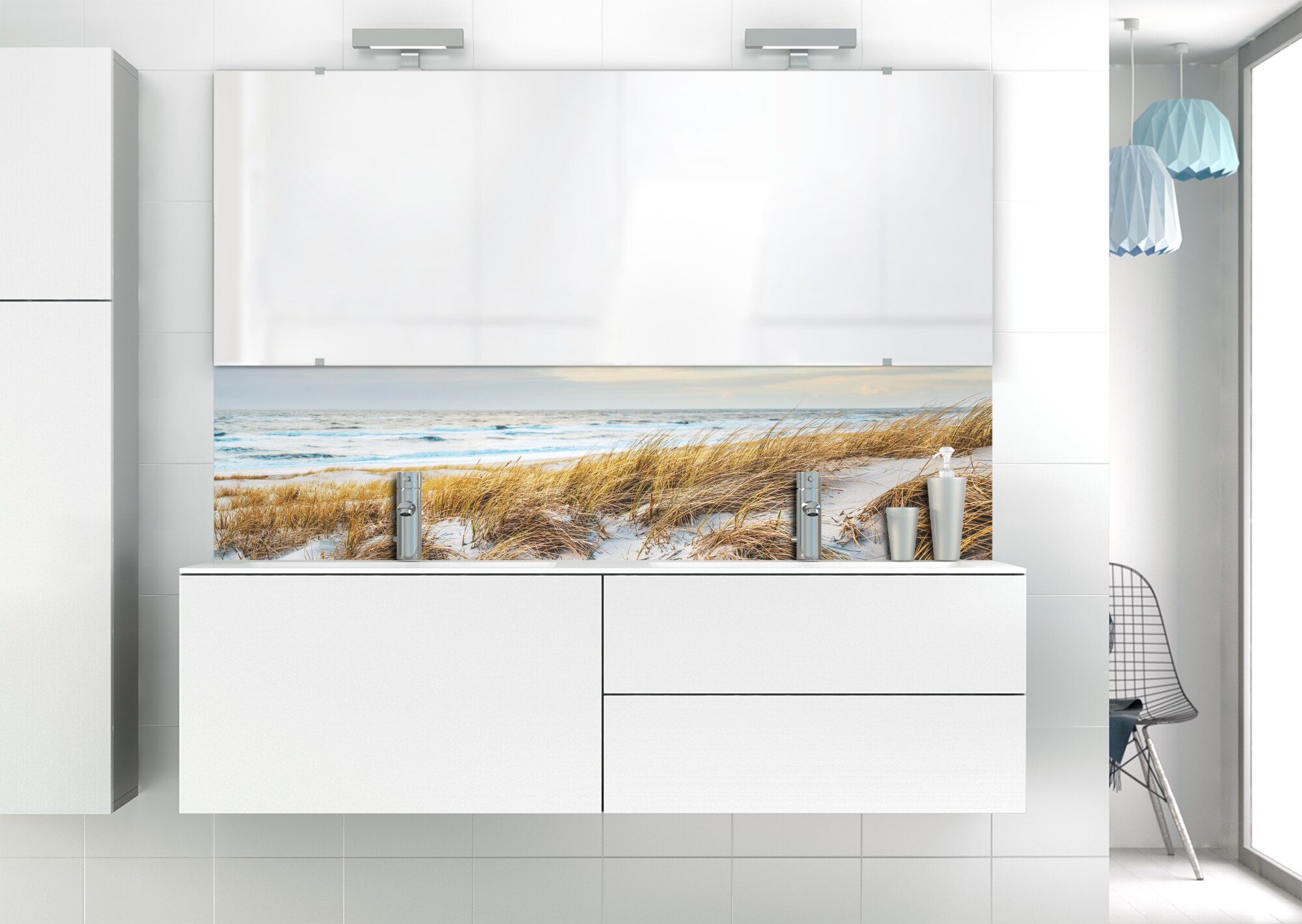 Rien de mieux qu'un paysage de dunes sur votre crédence de lavabo pour s'évader, respirer et méditer au grand air. Disponible en deux finitions distinctes : mate pour l'aluminium et brillante pour le polycarbonate et totalement sur mesure.