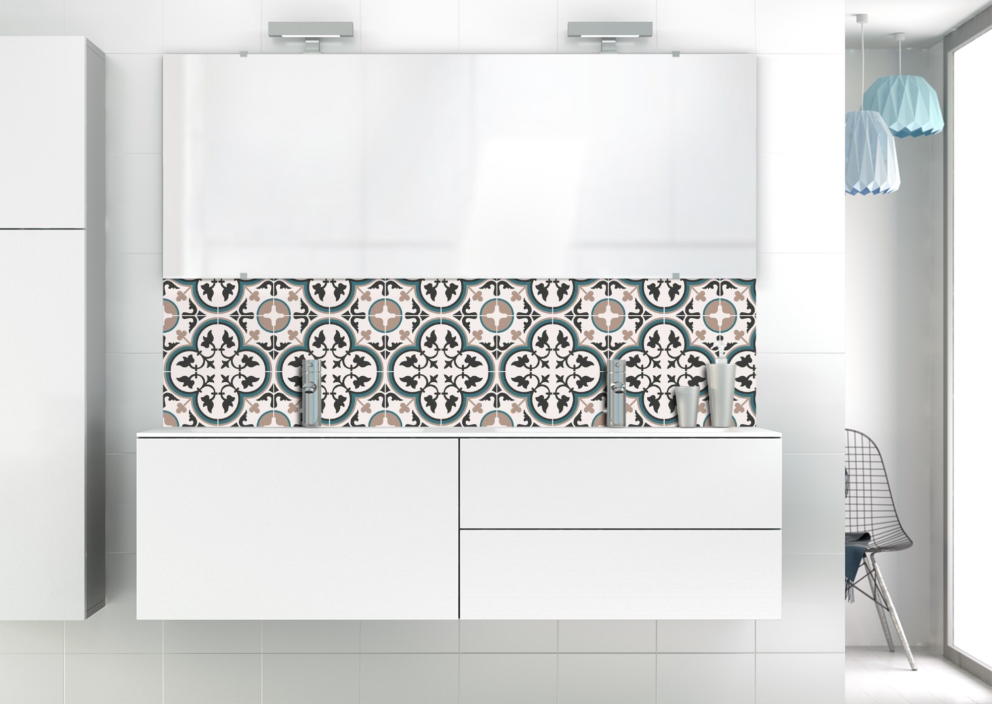 Panneau vasque Carreaux de ciment Riad fond blanc