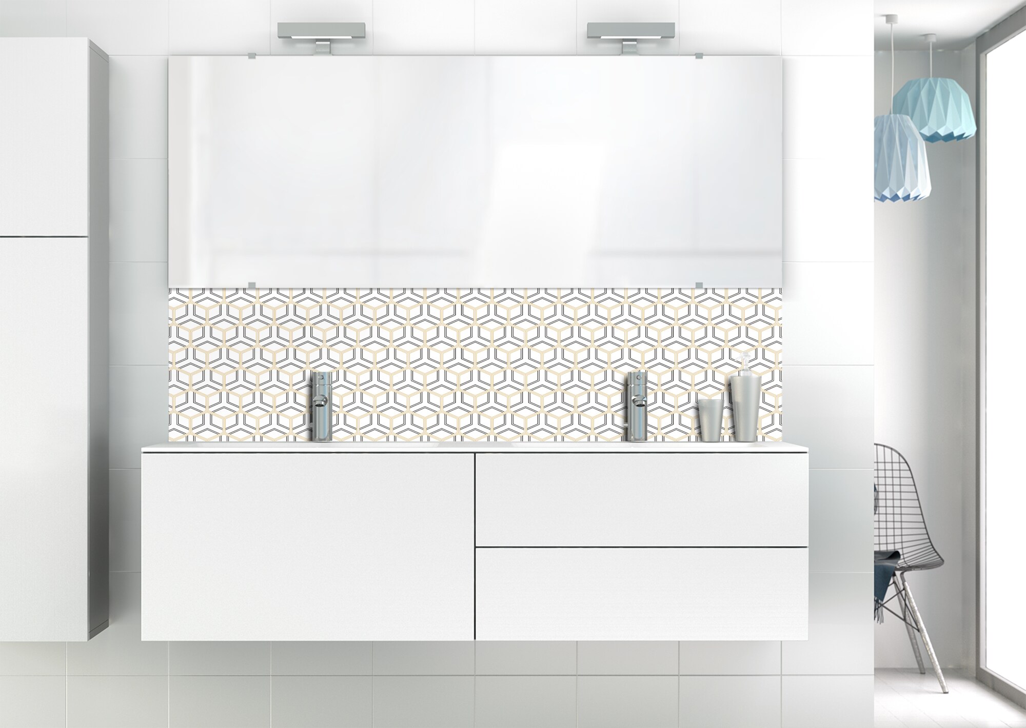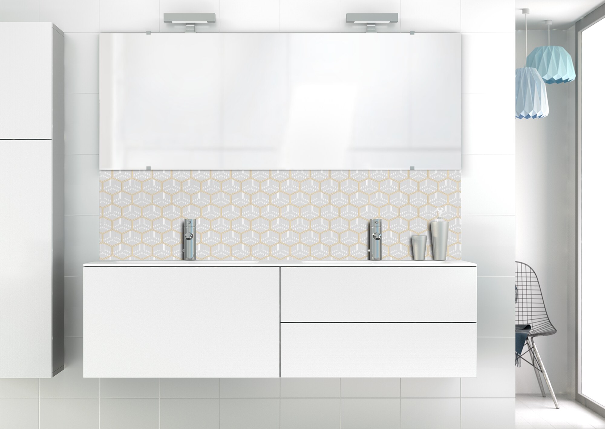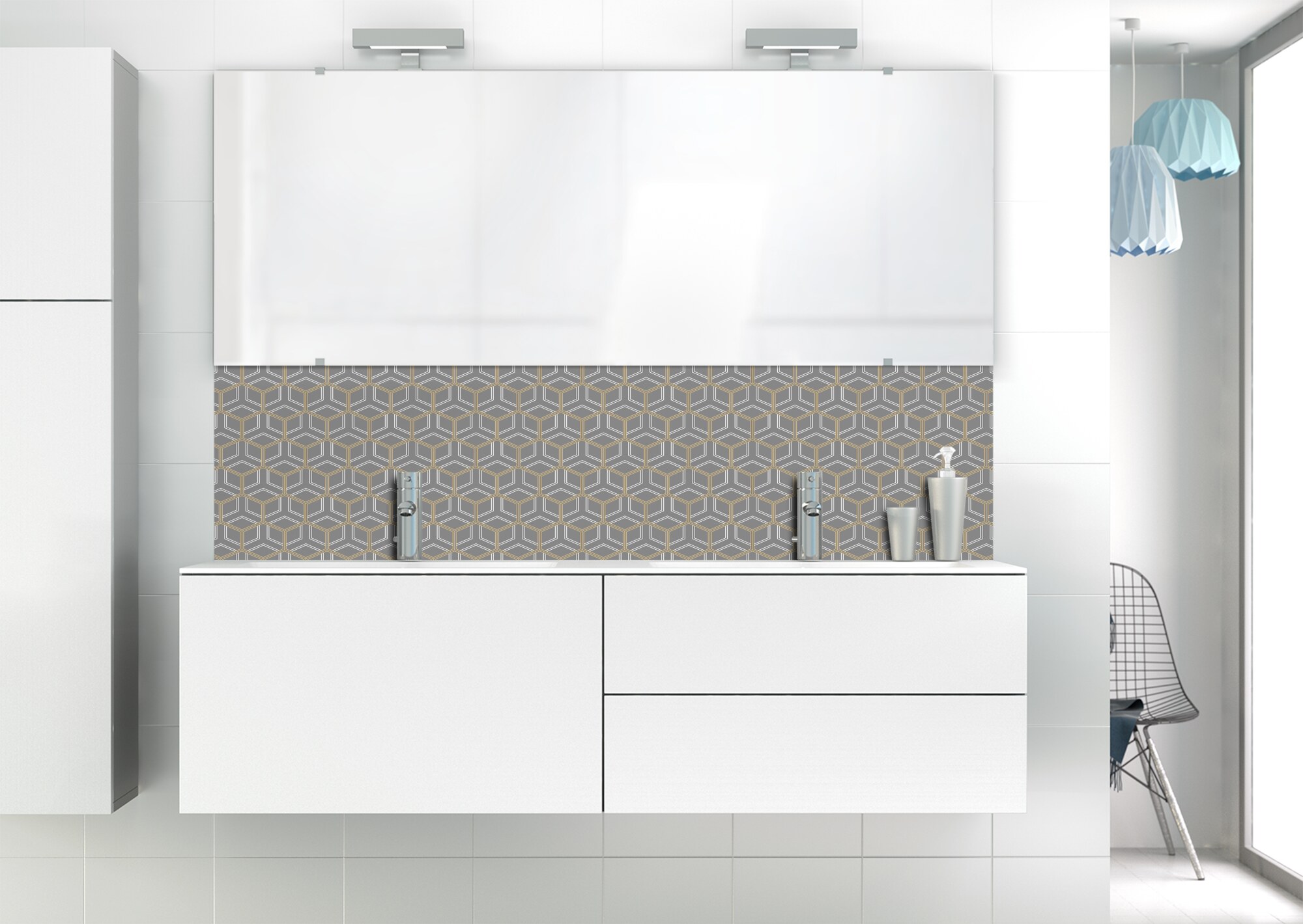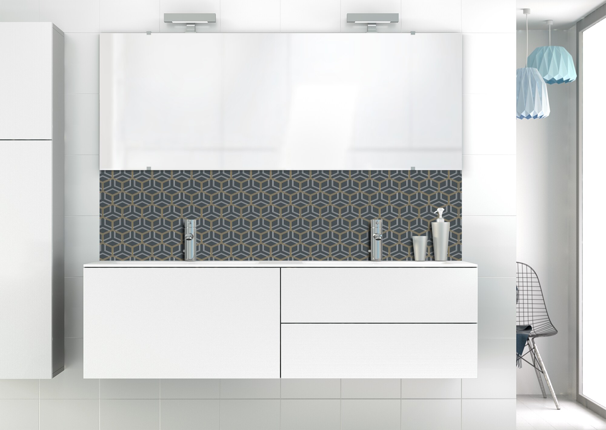 Optez pour l'élégance Art Déco avec ce panneau de vasque facile à installer et à entretenir en aluminium et polycarbonate. Un choix unique pour votre espace de lavage.