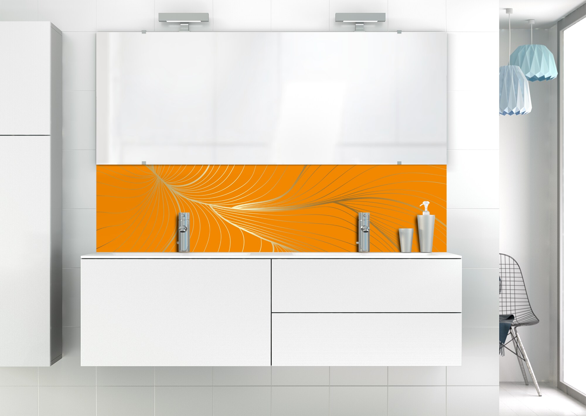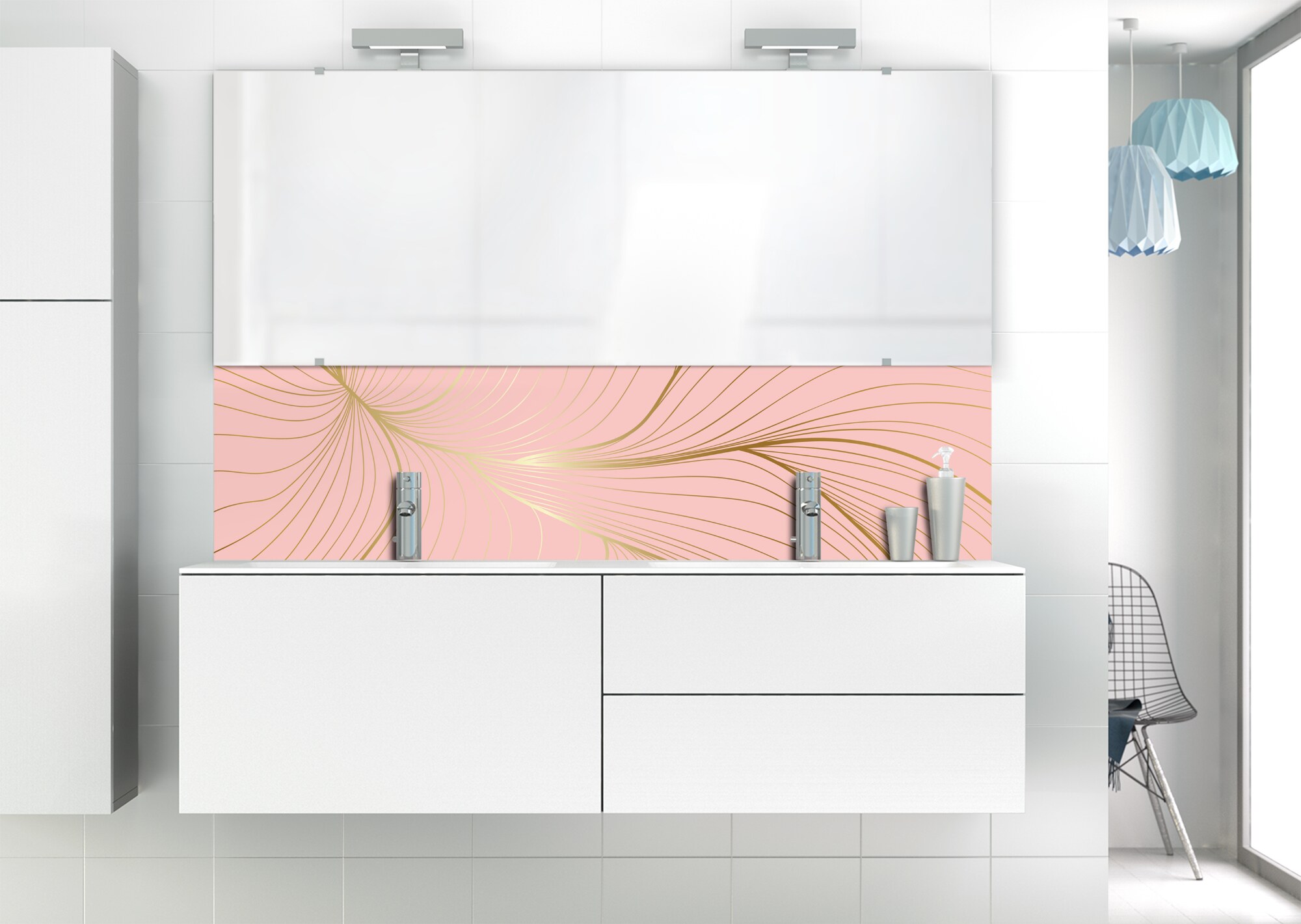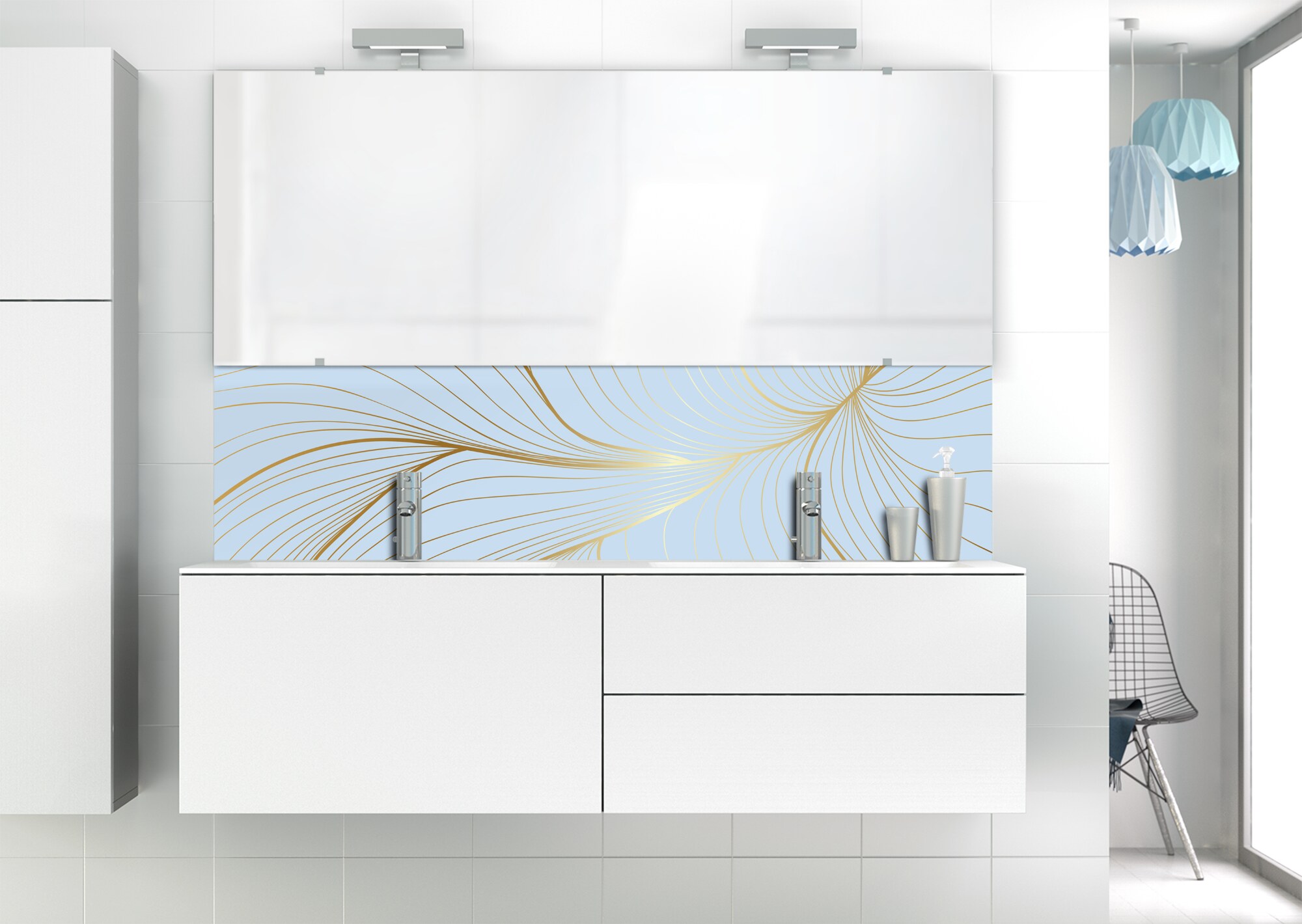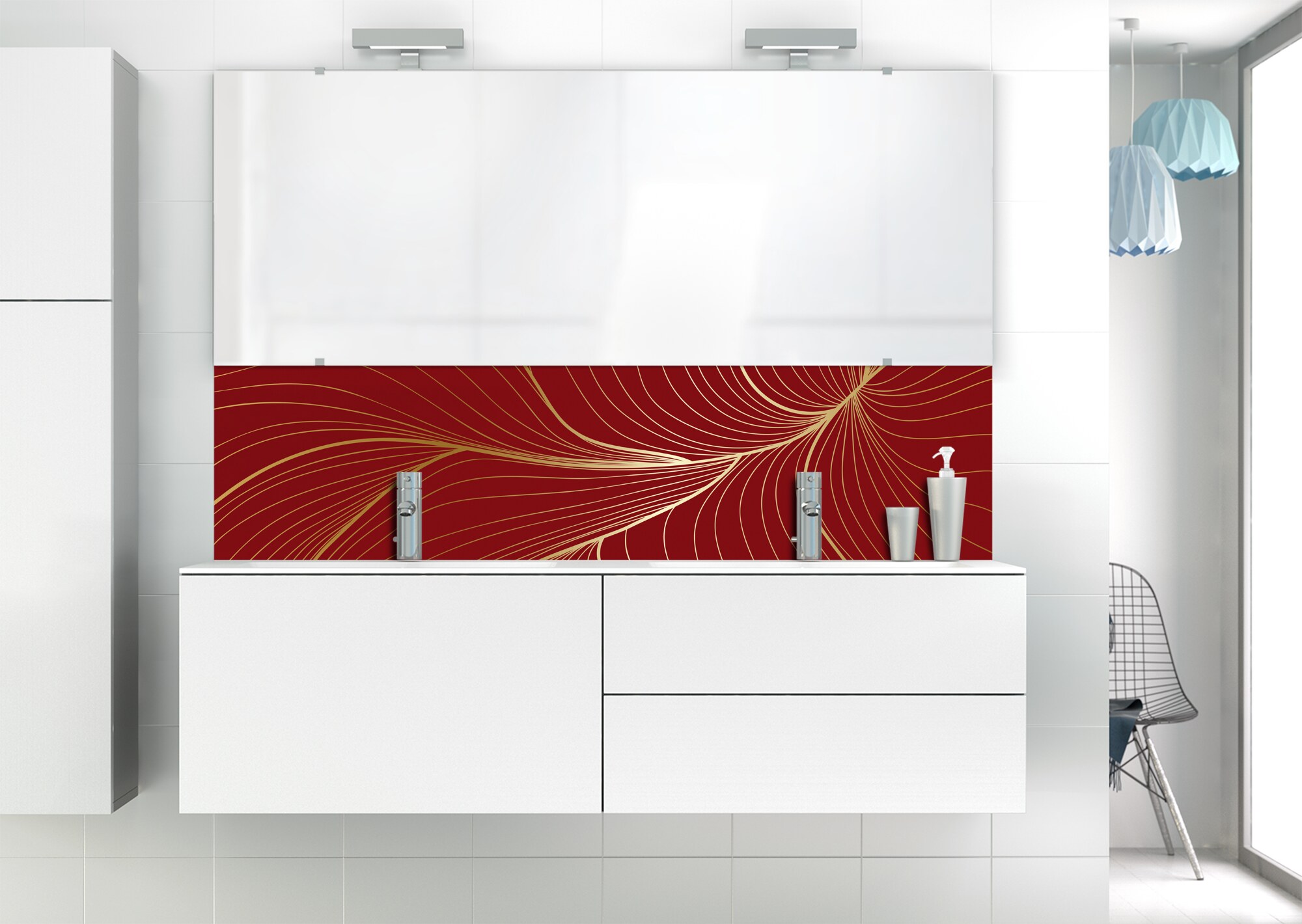 L'élégance du doré dans votre salle de bain avec un panneau de vasque aux lignes courbes et sensuelles de ce décor Volupté. Disponible en 25 couleurs tendances, choisissez celle qui révèlera votre personnalité dans la déco de votre salle de bain.