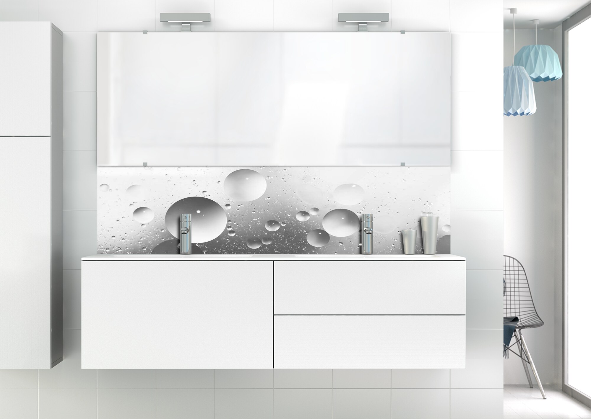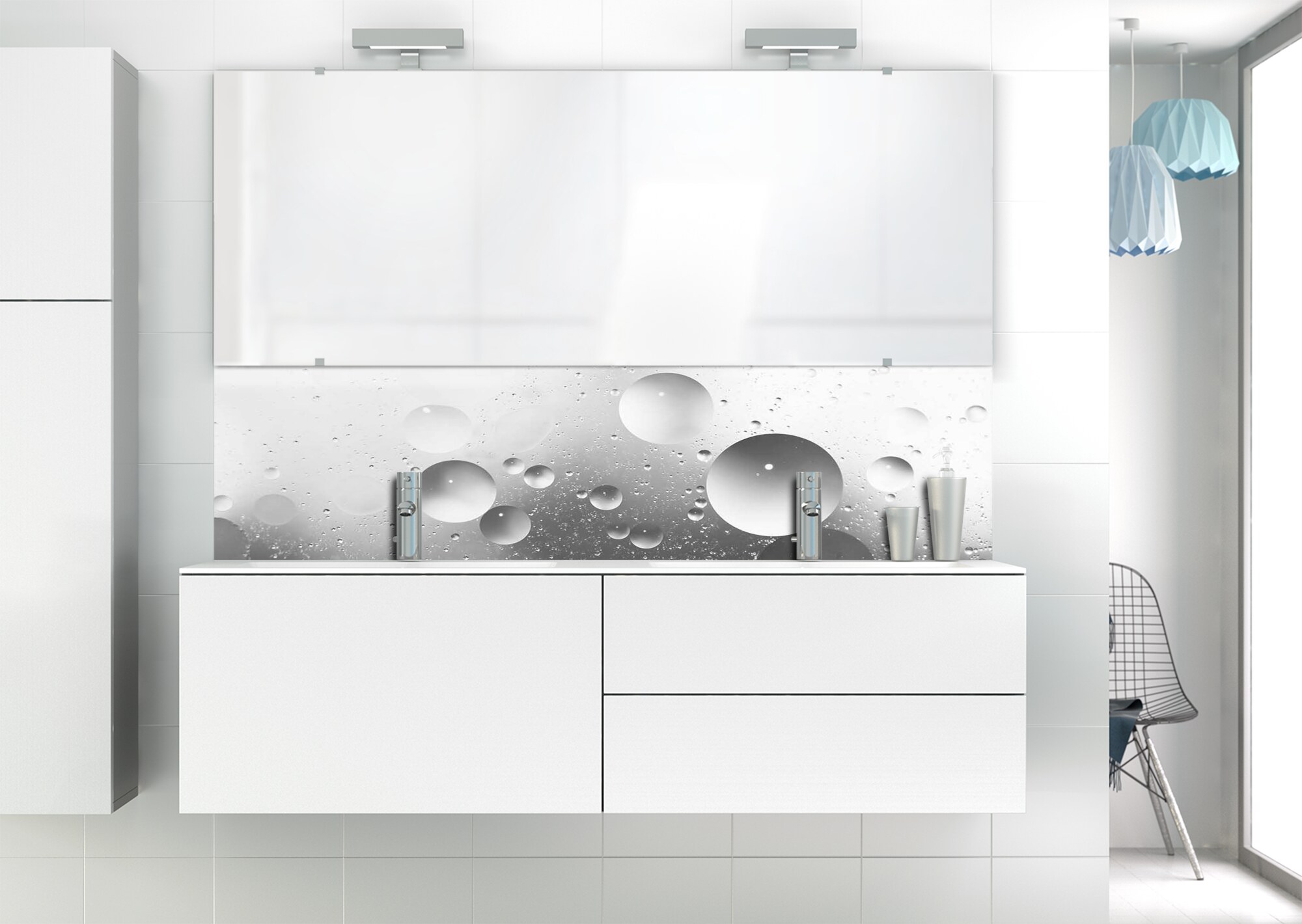 Créez une ambiance vaporeuse dans votre espace de lavage avec ce panneau de vasque facile à installer et à découper. Idéal pour recouvrir un ancien revêtement.