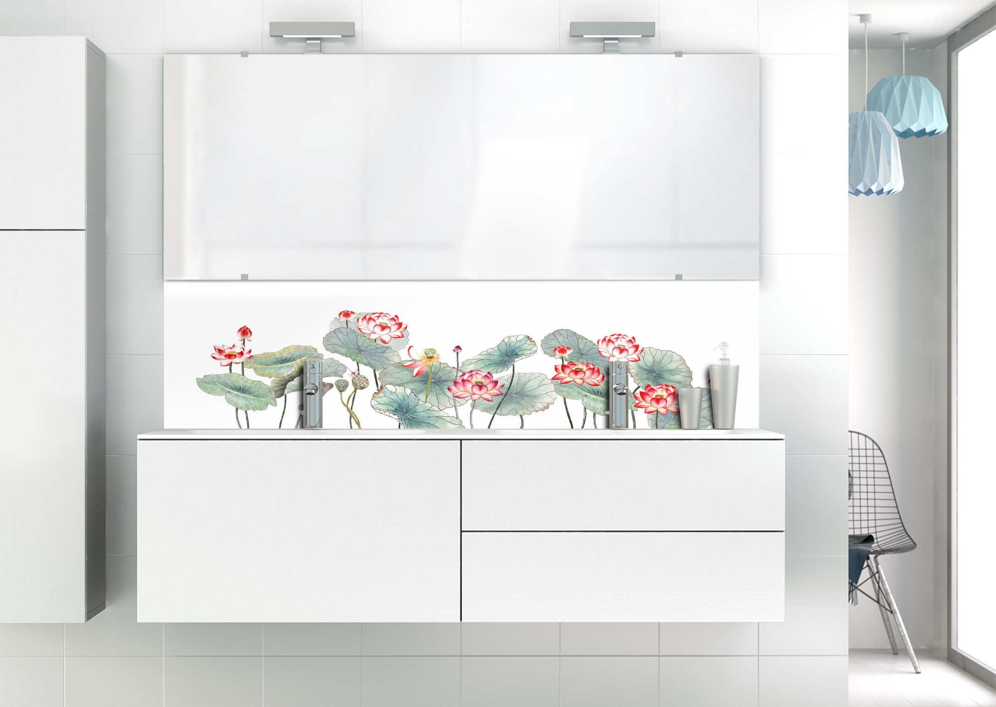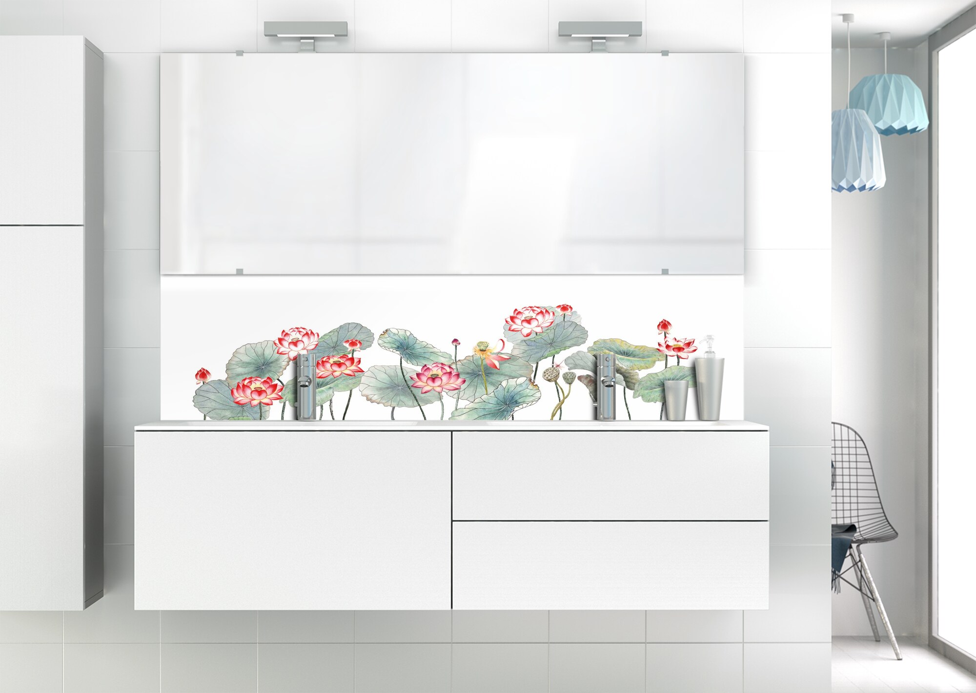 Optez pour ce décor Zen aux illustrations de fleurs de lotus sur votre credence lave main. Magnifique, intemporel et apaisant, ce décor original apportera un cachet exceptionnel à votre intérieur. Idéal en rénovation, nos panneaux sur mesure se collent facilement sur un ancien carrelage mural de salle de bain.
