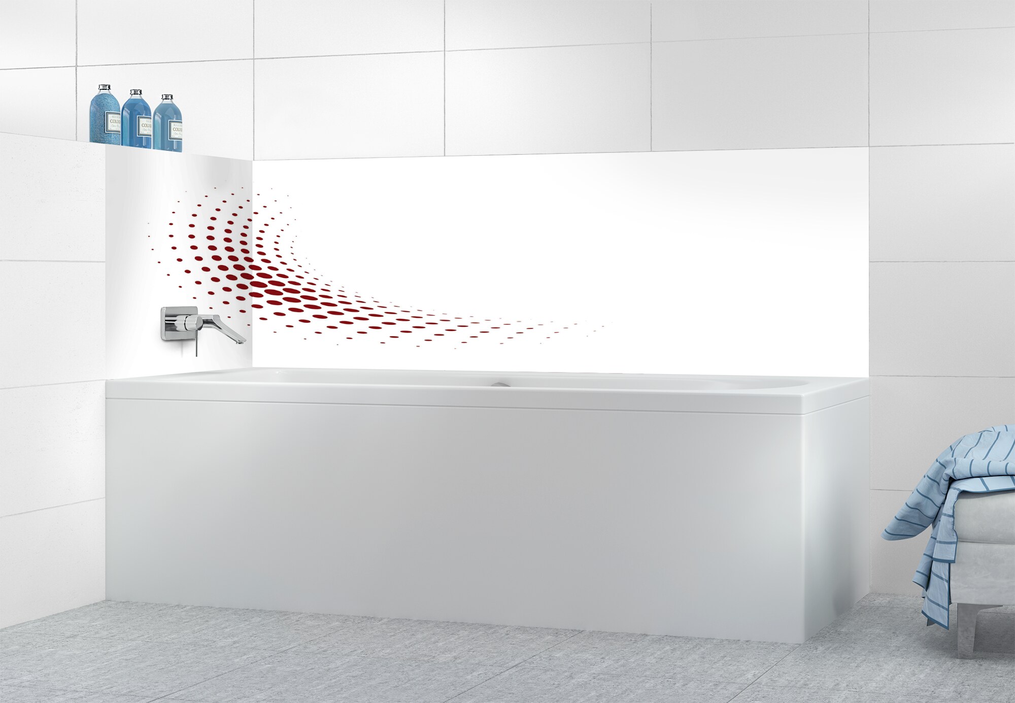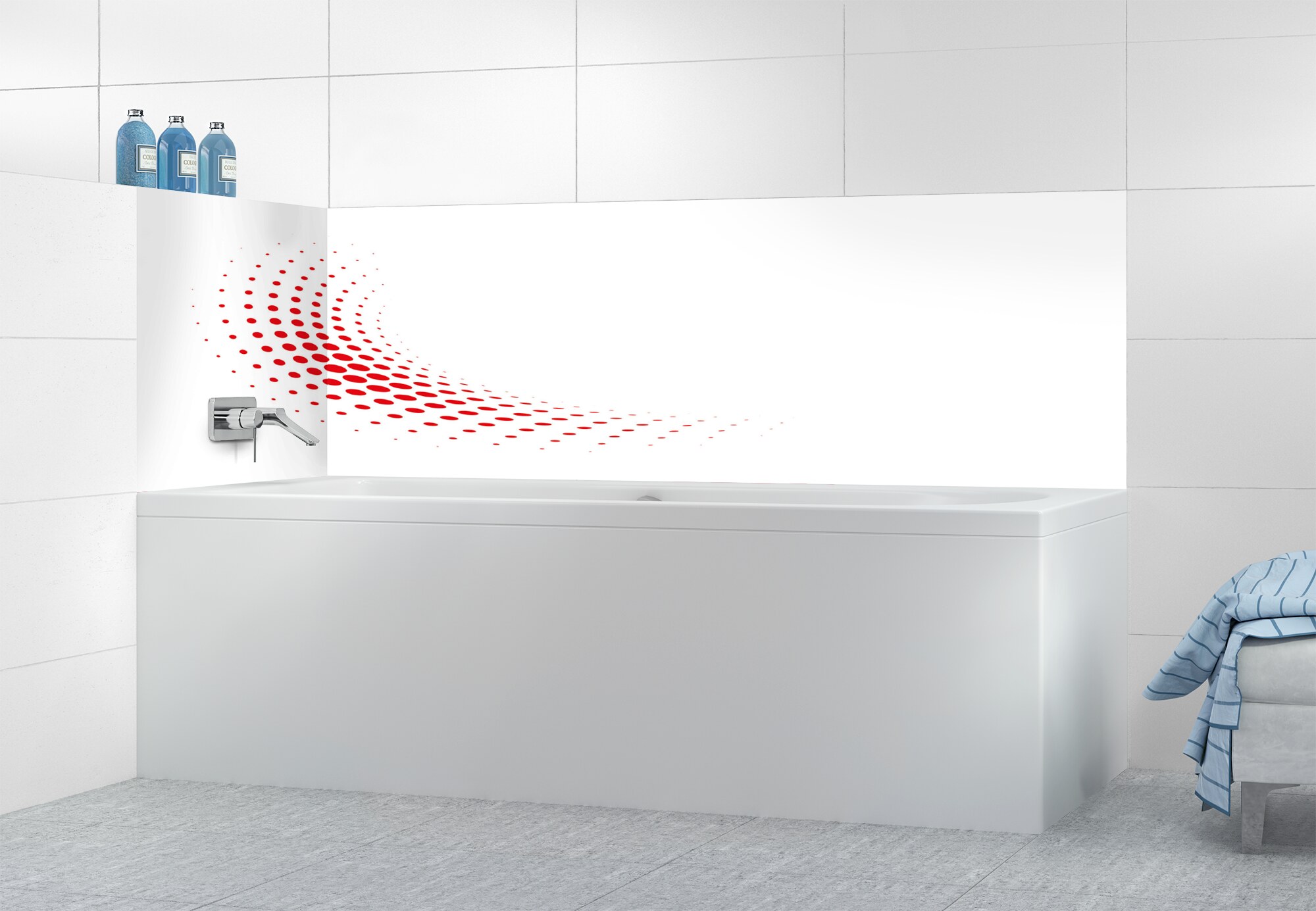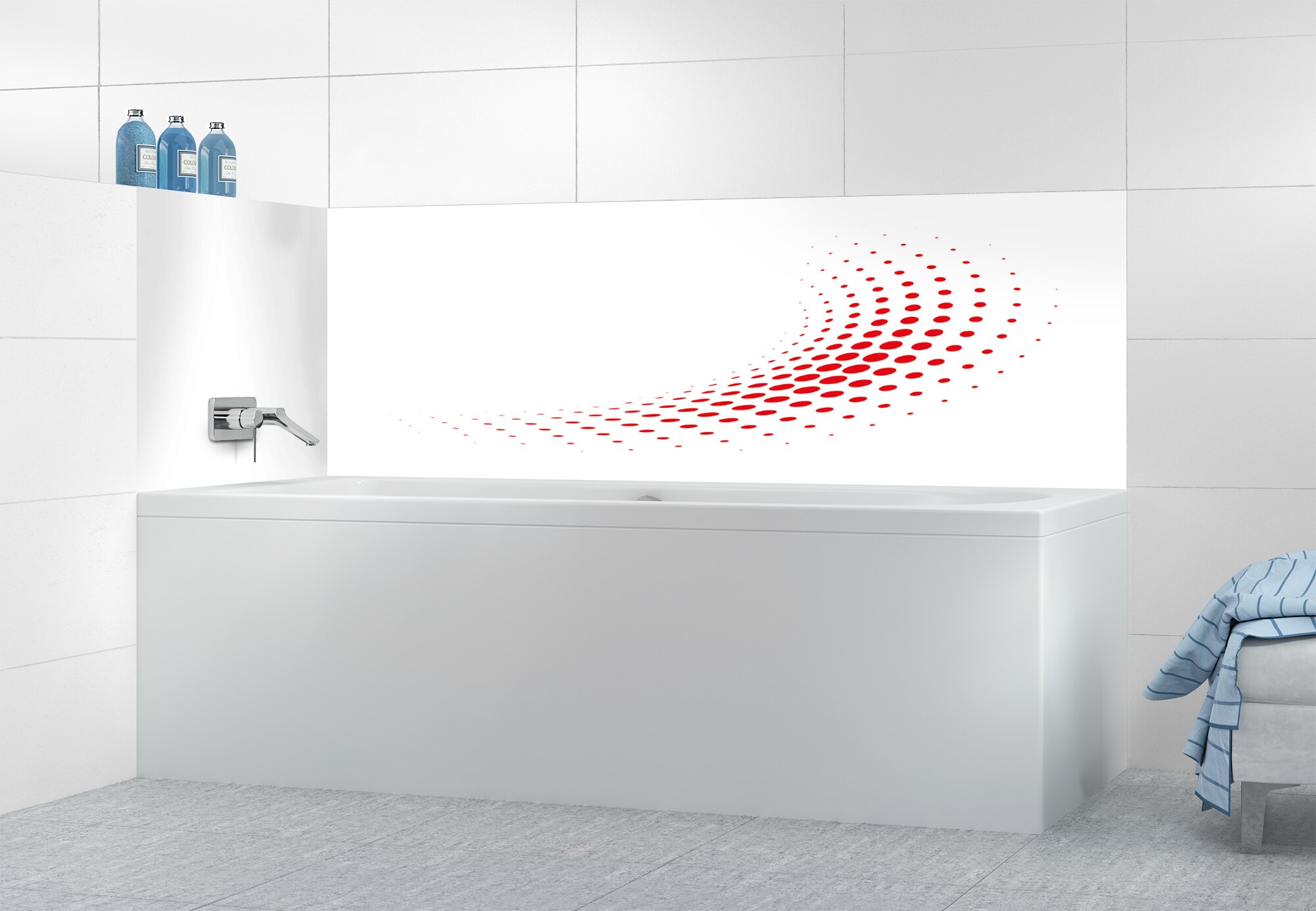 Panneau de bain Nuage de points couleur Rouge vermillonPanneau de bain Nuage de points couleur Rouge vermillon motif inversé