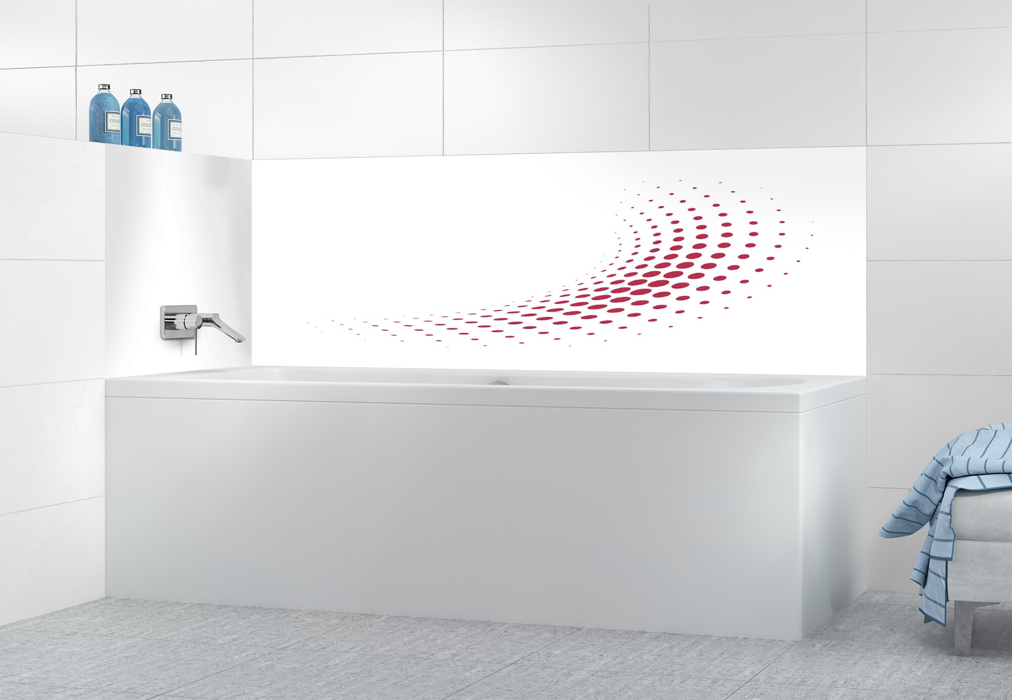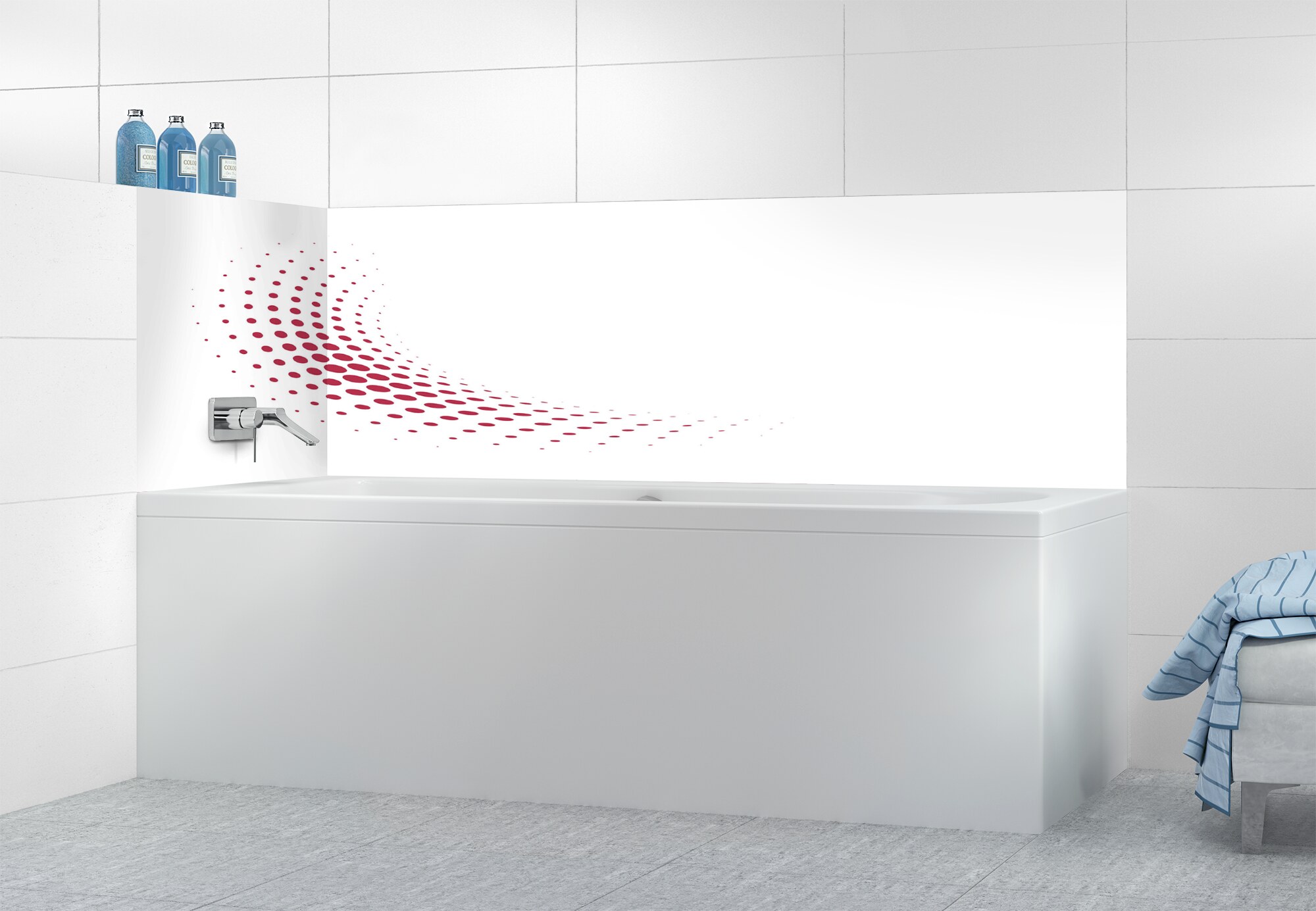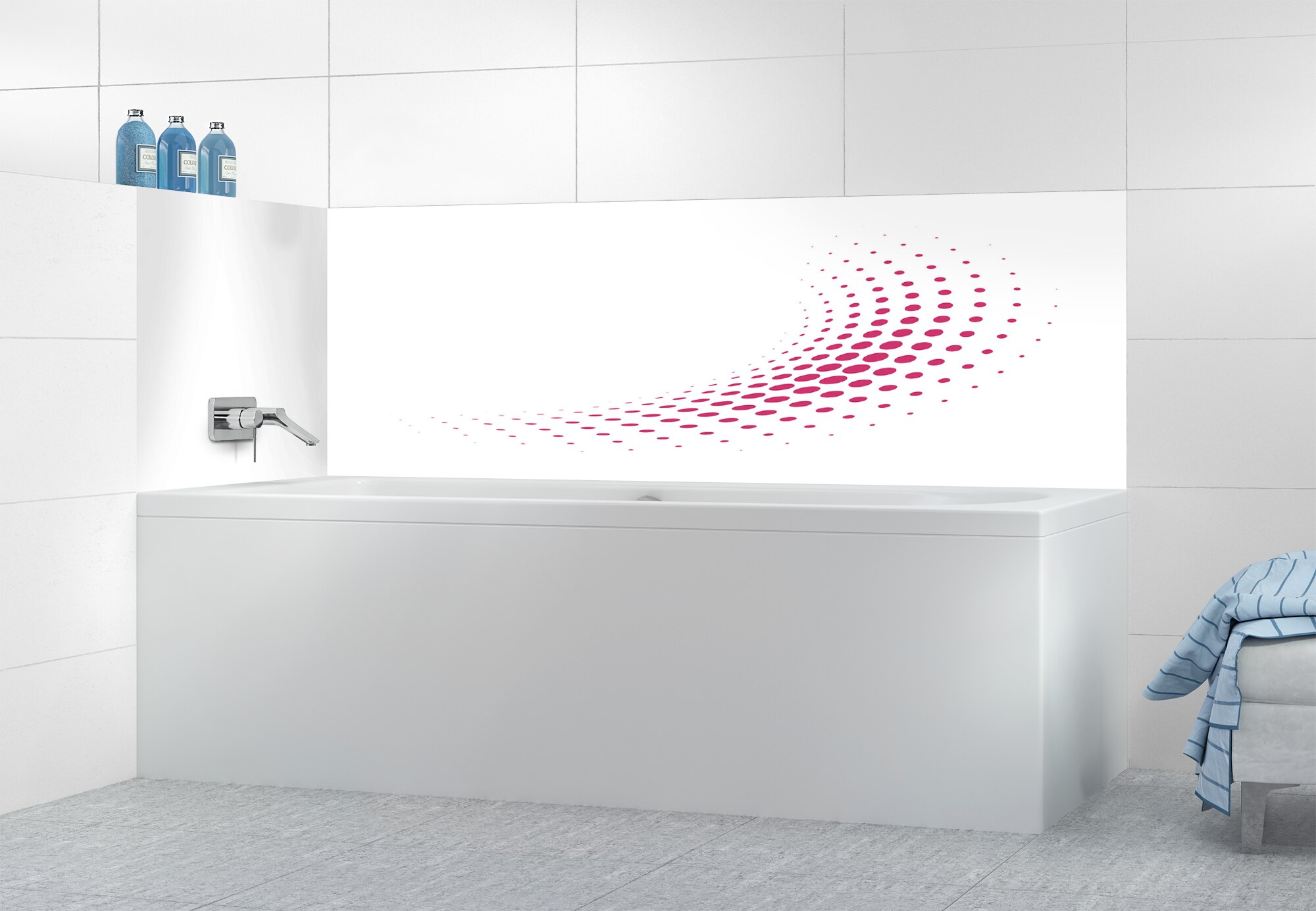 Panneau de bain Nuage de points couleur Rose grenadePanneau de bain Nuage de points couleur Rose grenade motif inversé