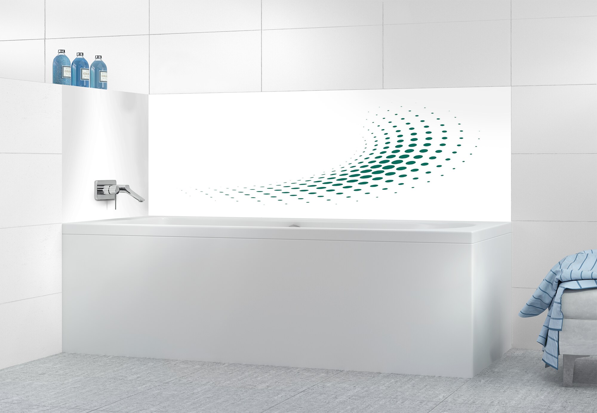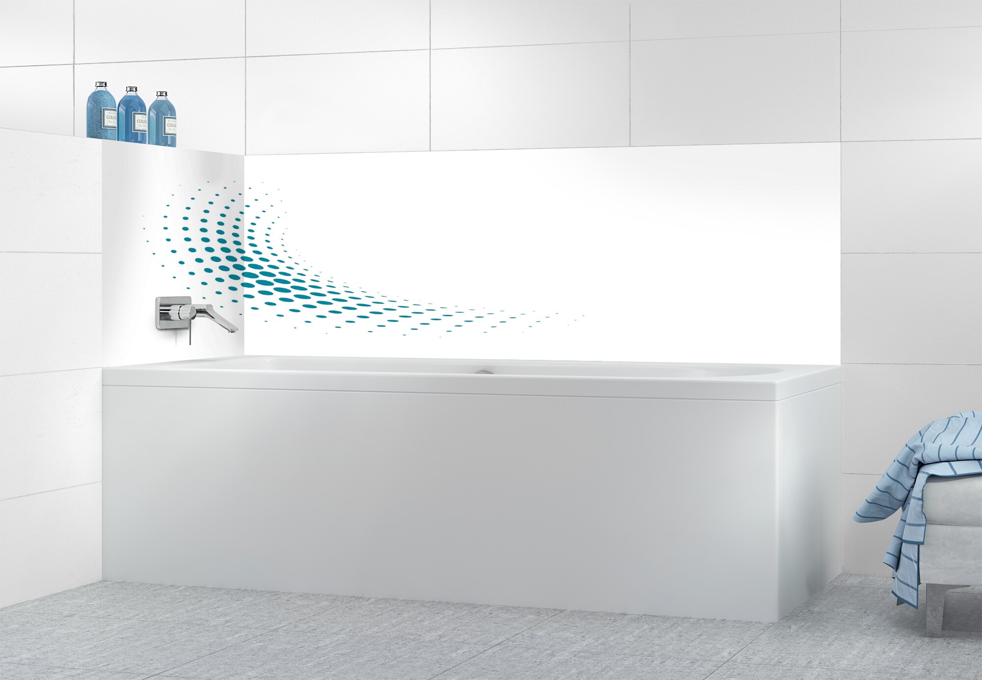 Panneau de bain Nuage de points couleur Bleu paonPanneau de bain Nuage de points couleur Bleu paon motif inversé