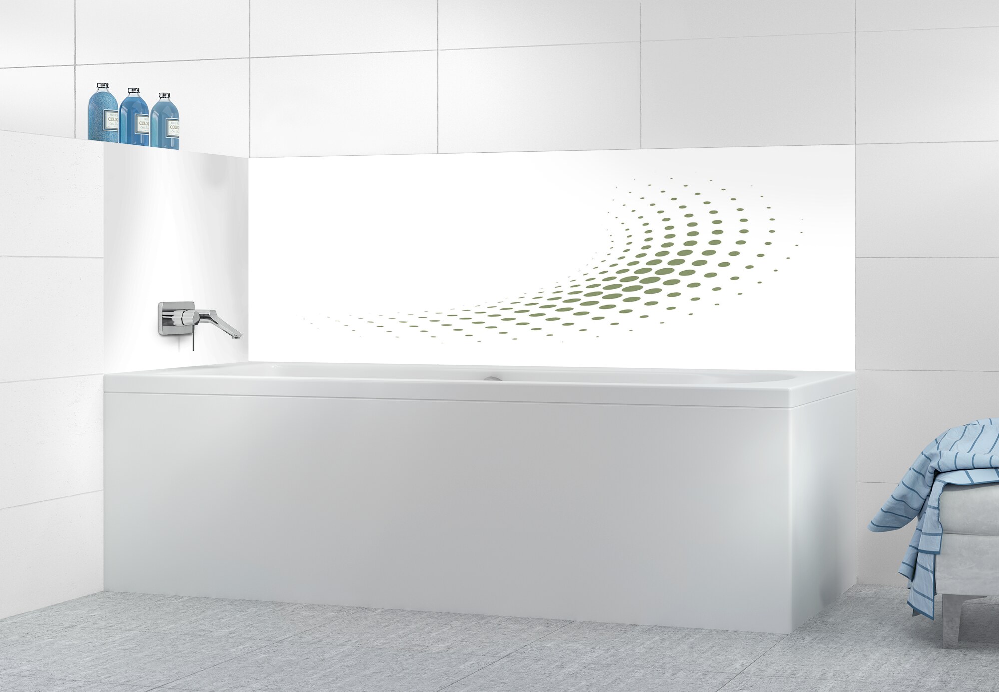 Panneau de bain Nuage de points couleur Vert saugePanneau de bain Nuage de points couleur Vert sauge motif inversé