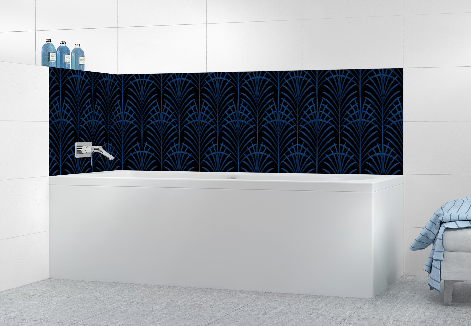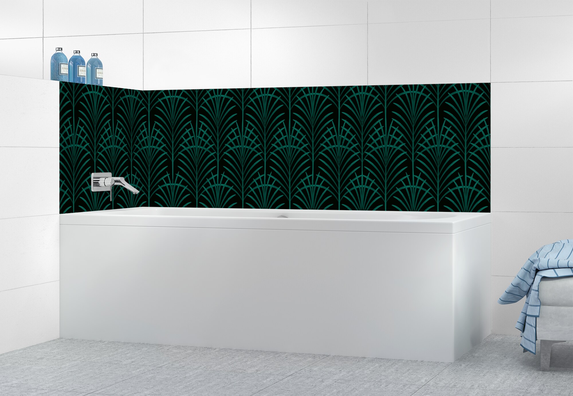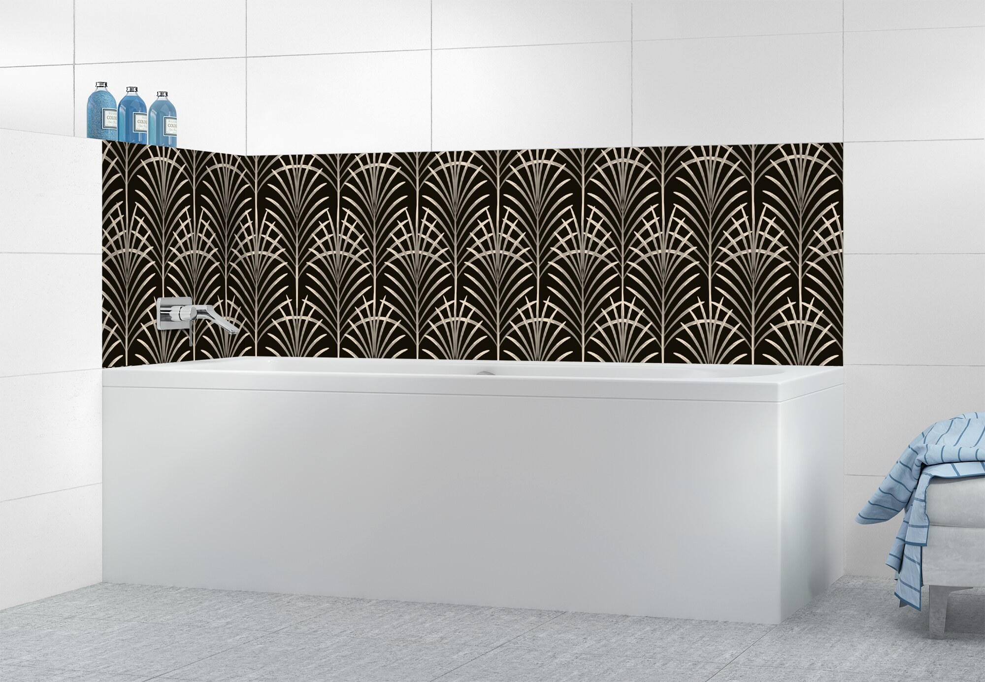 Ajoutez une touche Art déco à votre crédence de salle de bain avec notre panneau majestueux. Disponible en 25 couleurs, il est facile à découper, coller et entretenir pour un résultat personnalisé.