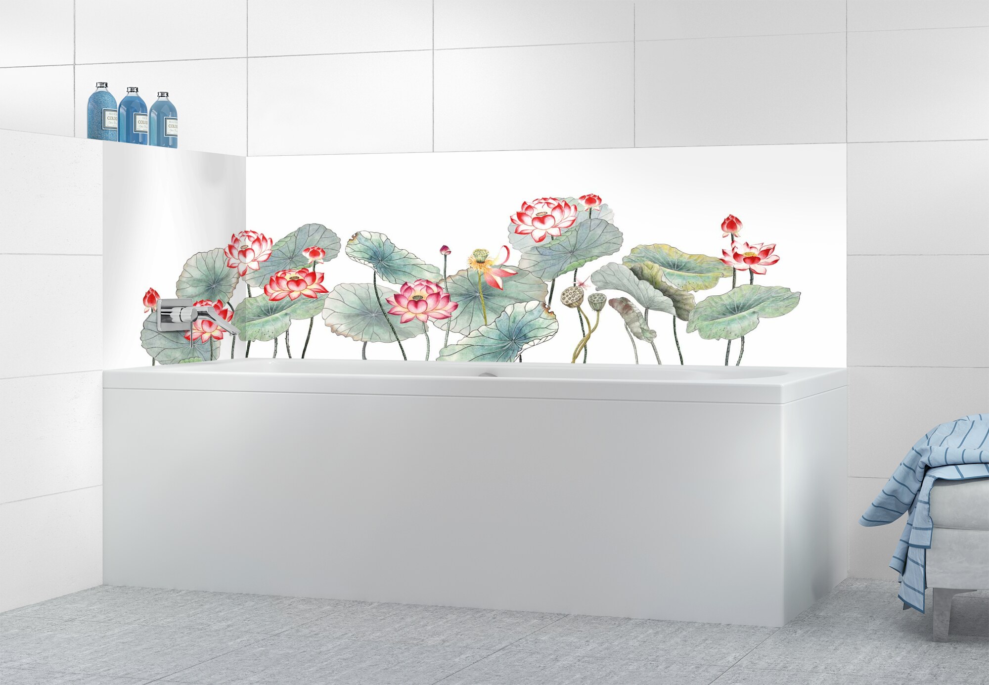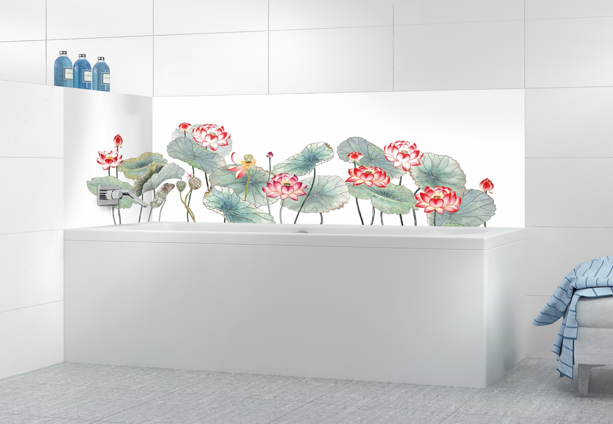 Optez pour ce décor Zen aux illustrations de fleurs de lotus sur votre crédence de baignoire. Magnifique, intemporel et apaisant, ce décor original apportera un cachet exceptionnel à votre intérieur. Idéal en rénovation, nos panneaux sur mesure se collent facilement sur un ancien carrelage mural de salle de bain.