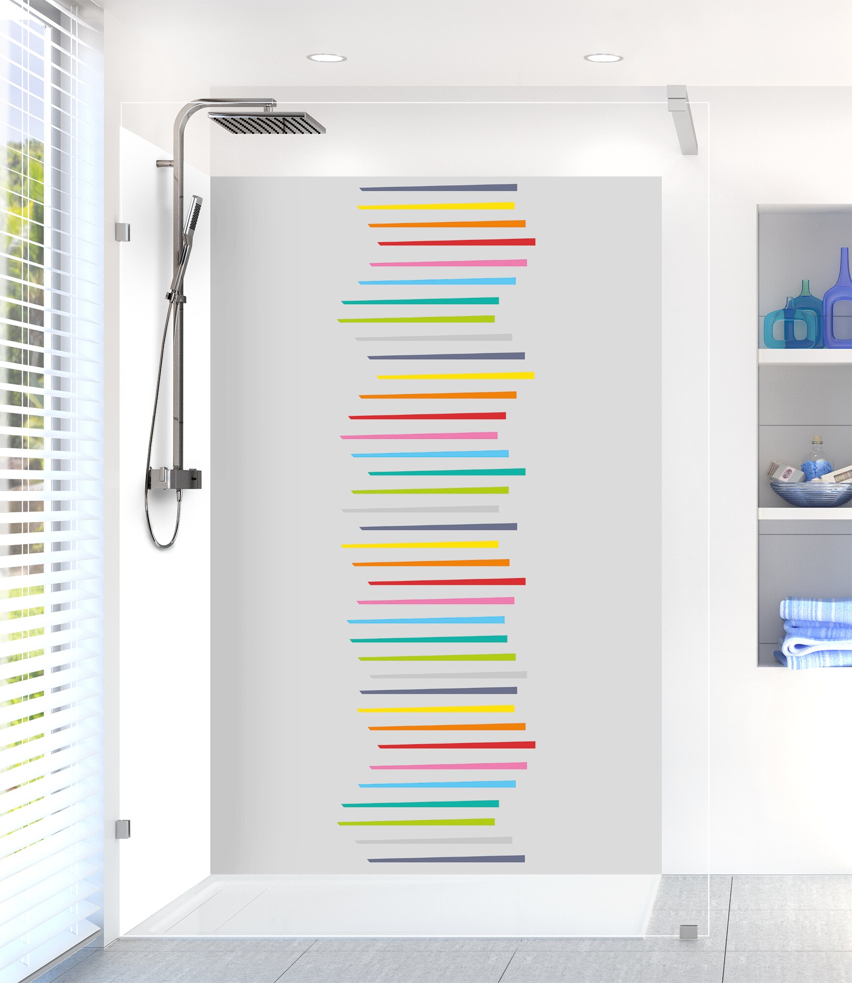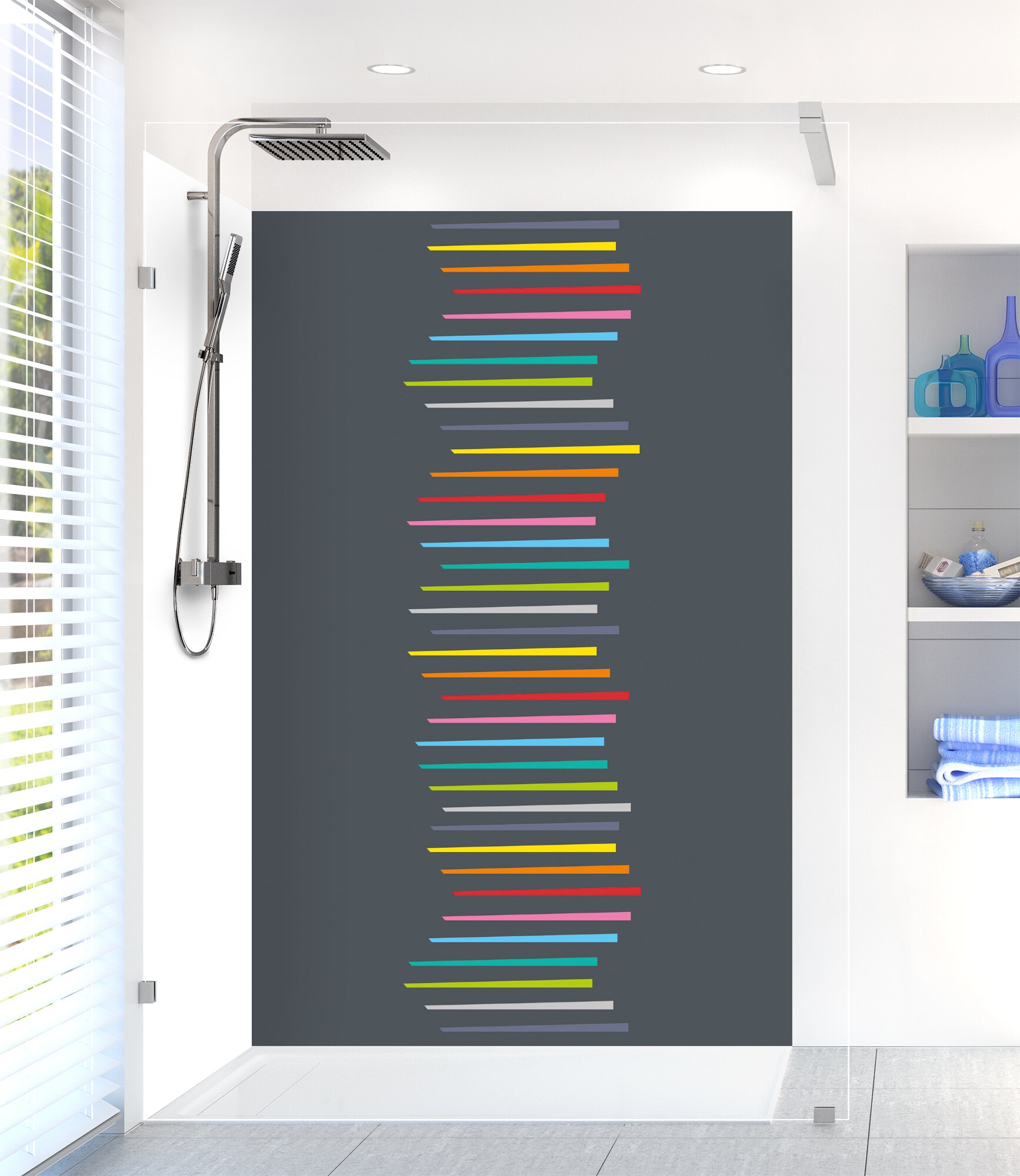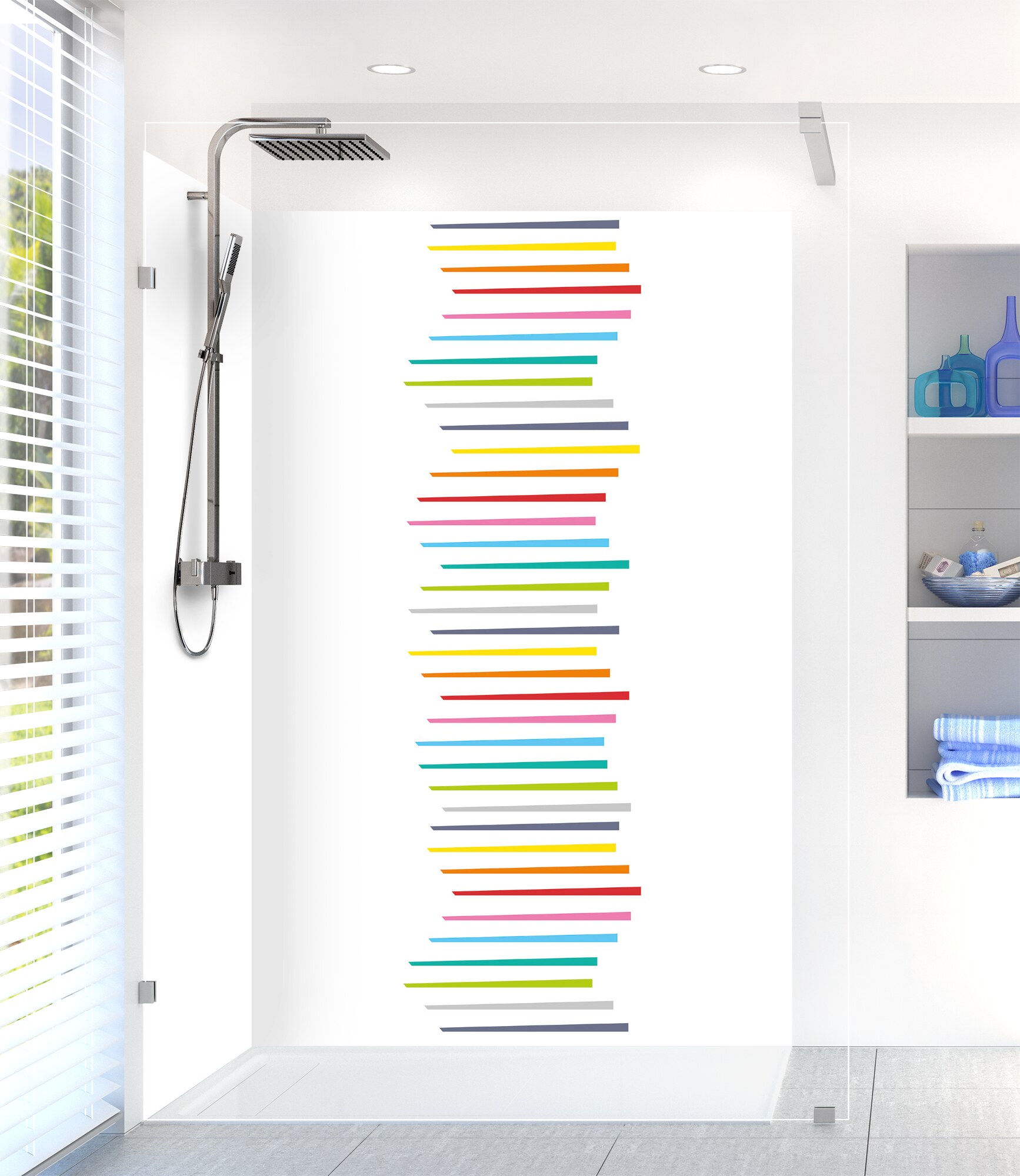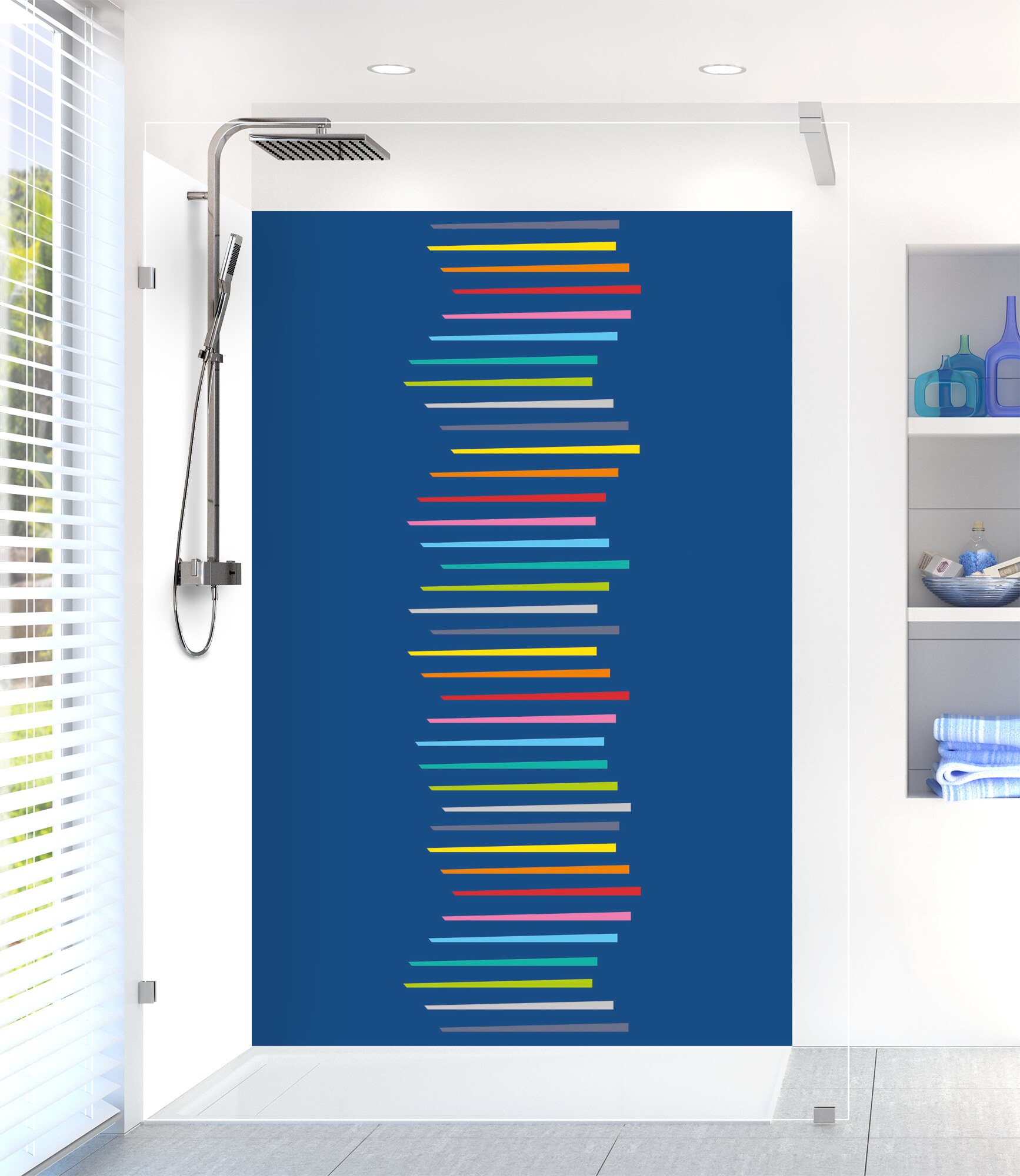 Revitalisez votre salle de bain avec notre panneau de douche disponible en 25 couleurs ! Facile à découper et à coller, il permet de cacher un ancien carrelage pour un résultat impeccable.