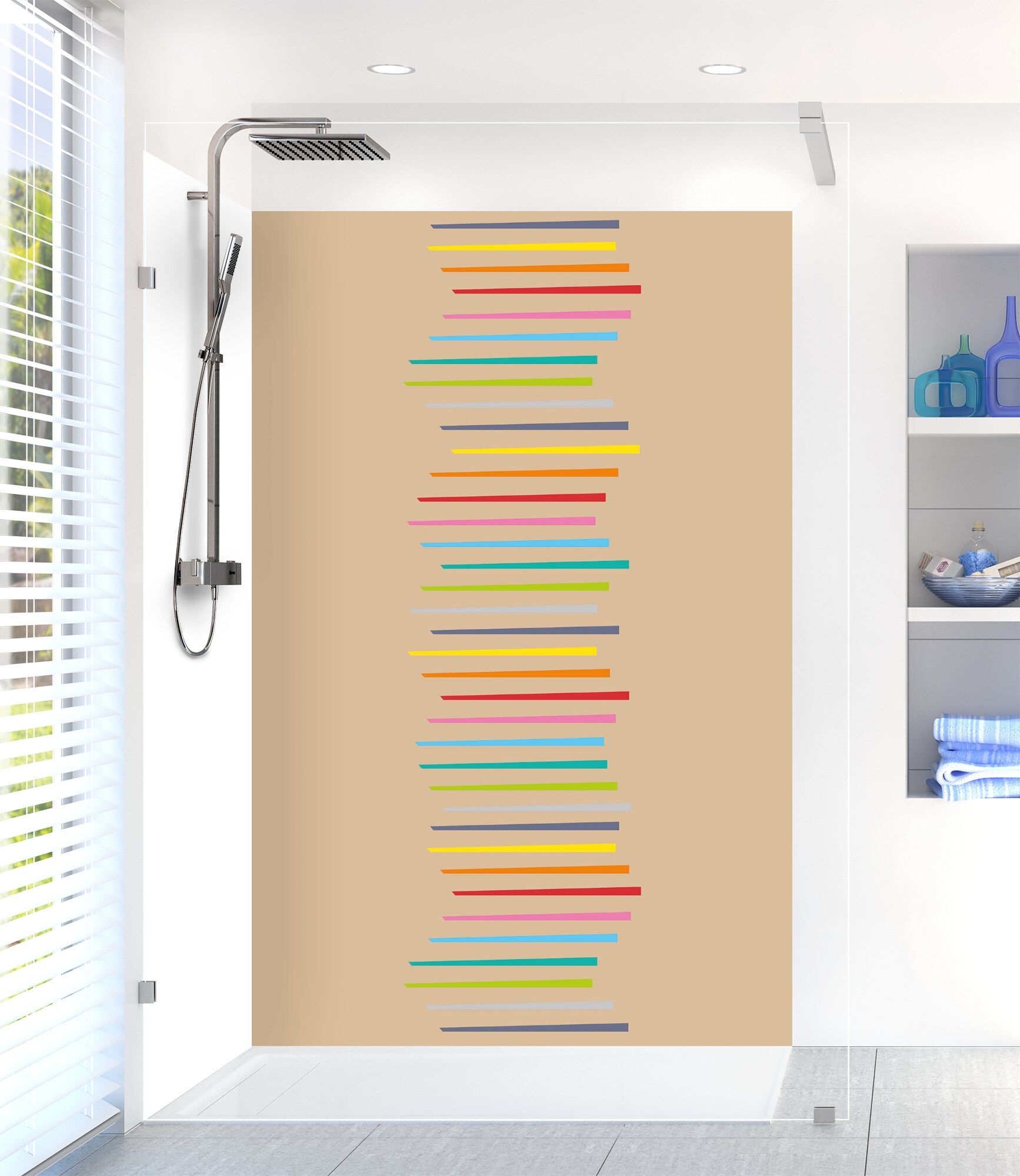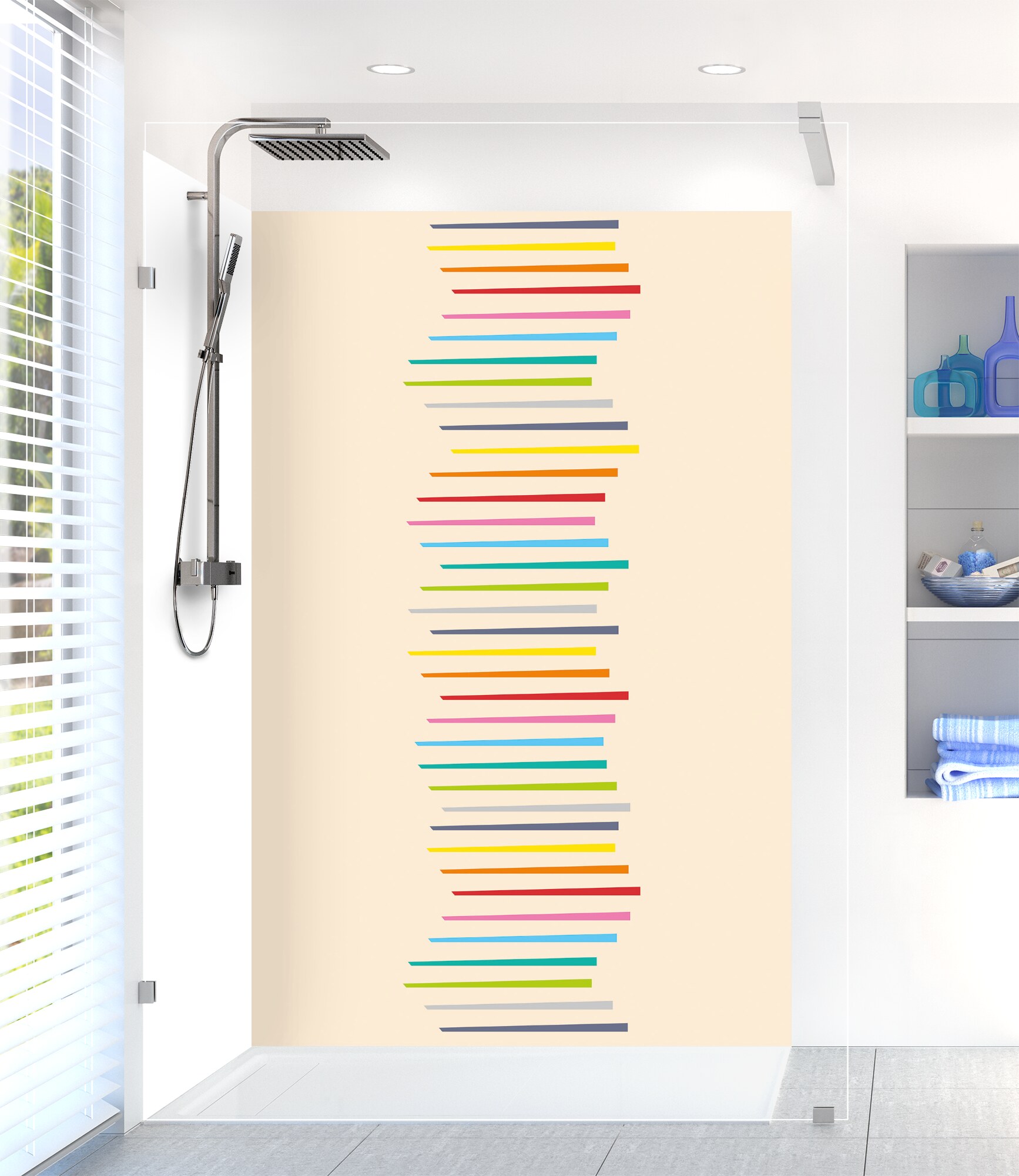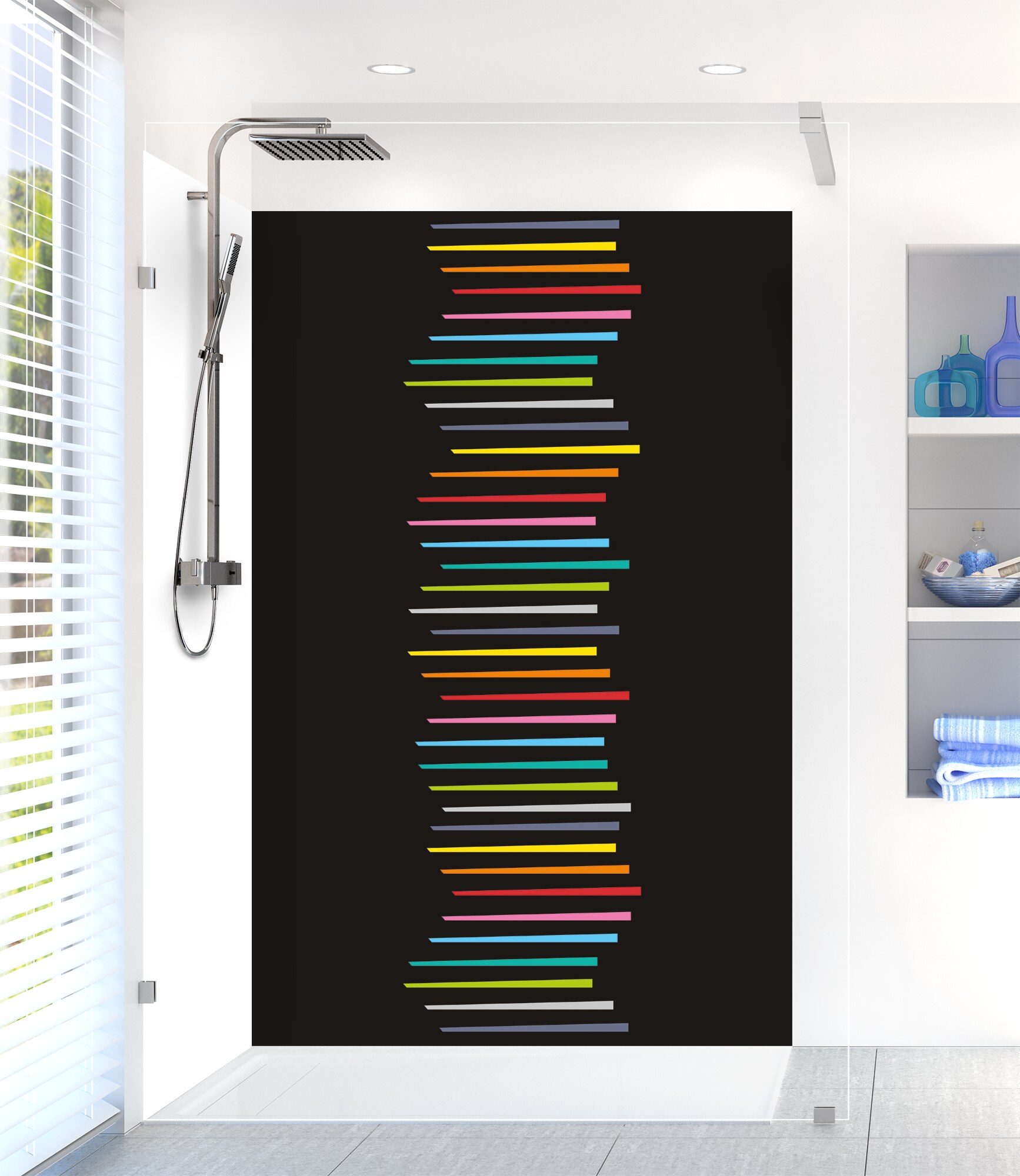 Revitalisez votre salle de bain avec notre panneau de douche disponible en 25 couleurs ! Facile à découper et à coller, il permet de cacher un ancien carrelage pour un résultat impeccable.