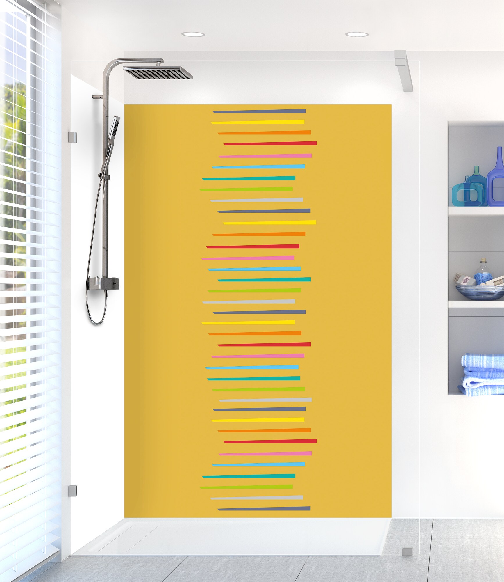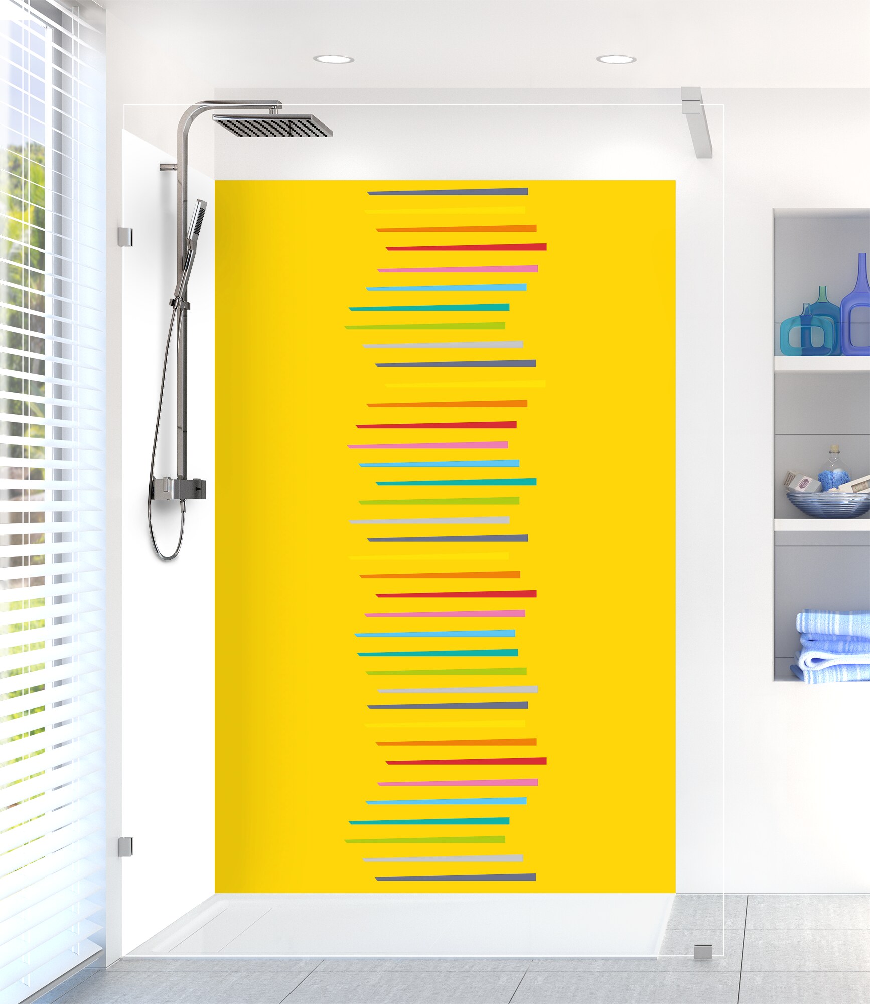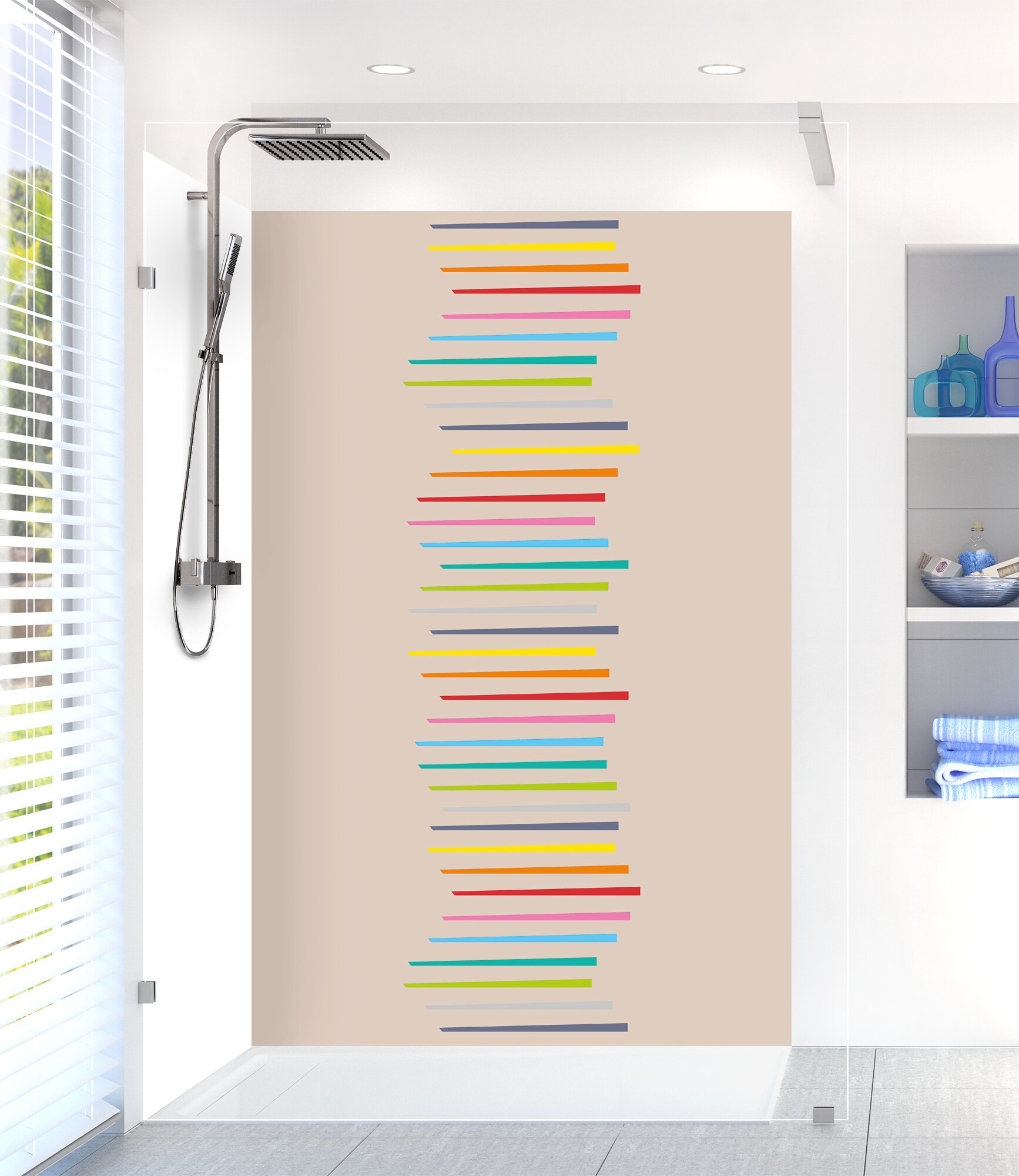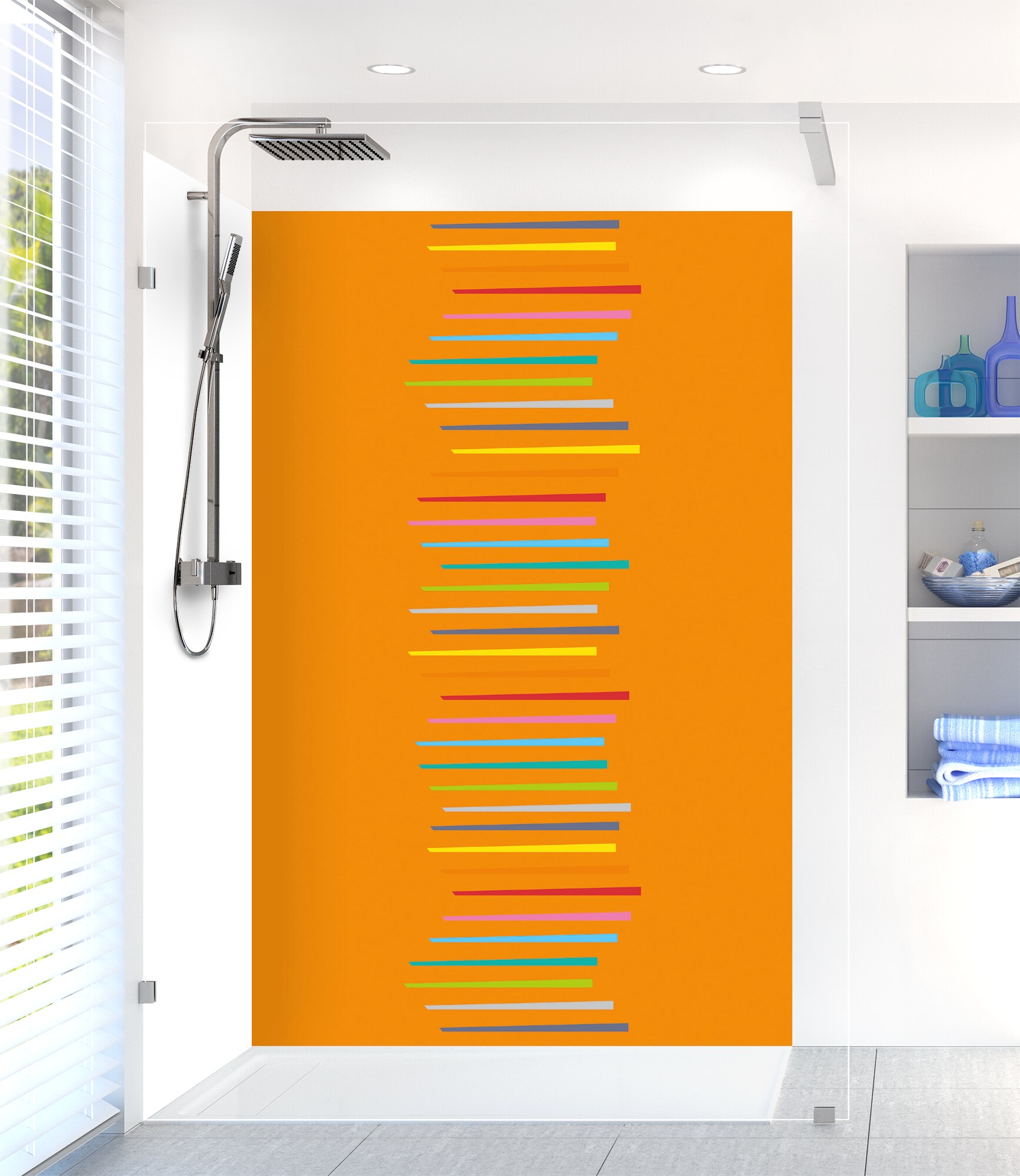 Revitalisez votre salle de bain avec notre panneau de douche disponible en 25 couleurs ! Facile à découper et à coller, il permet de cacher un ancien carrelage pour un résultat impeccable.