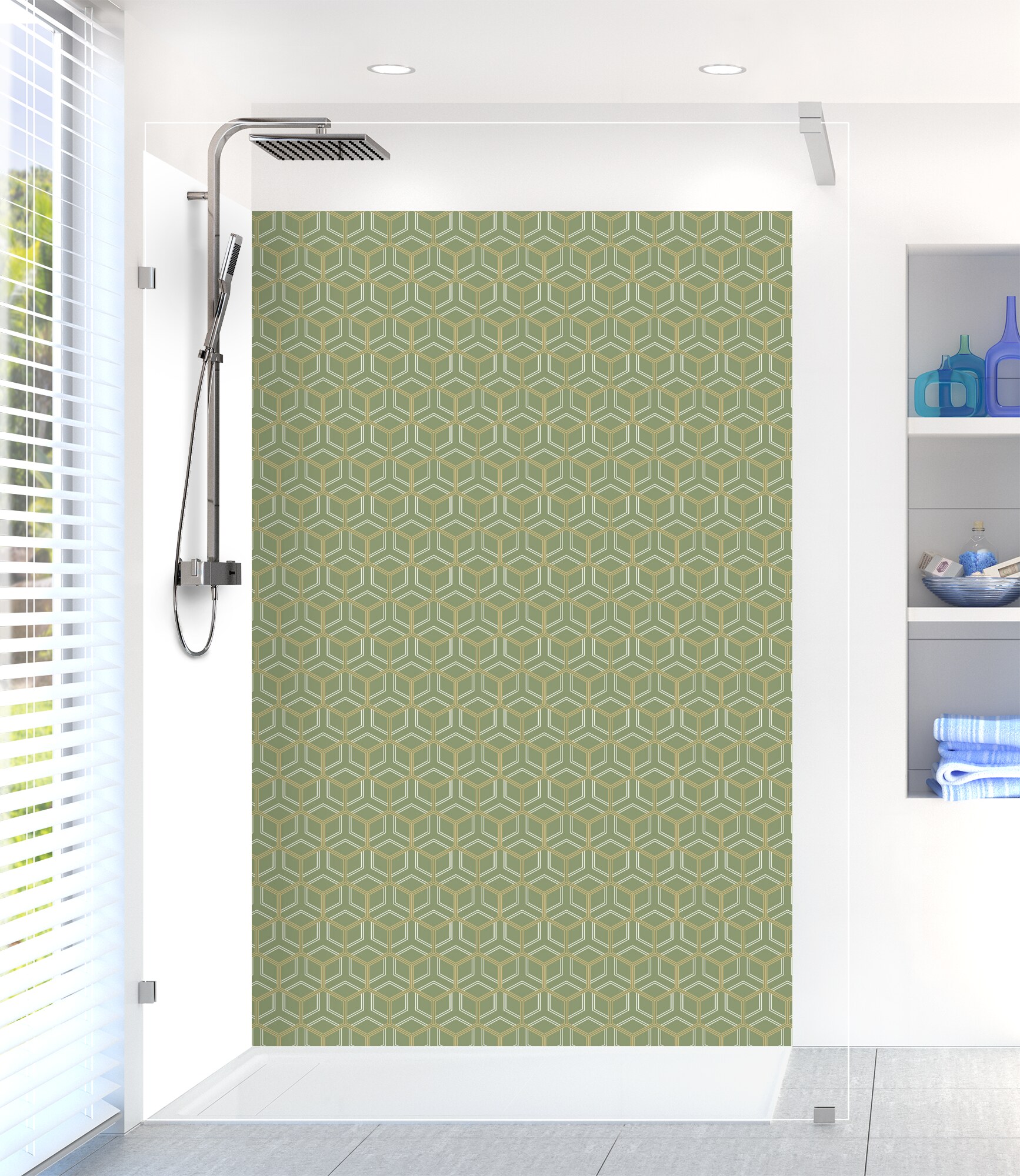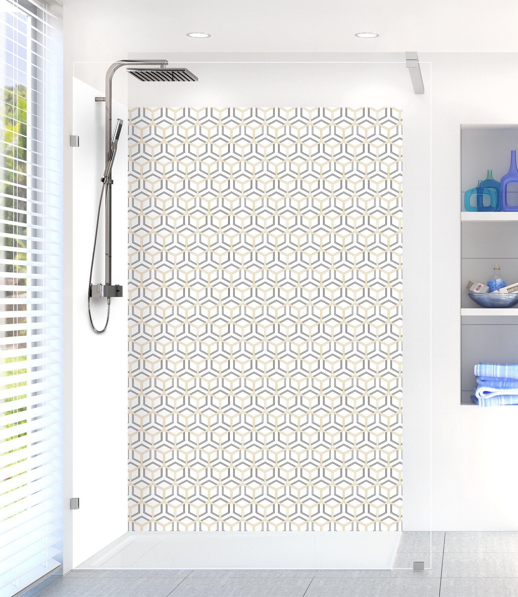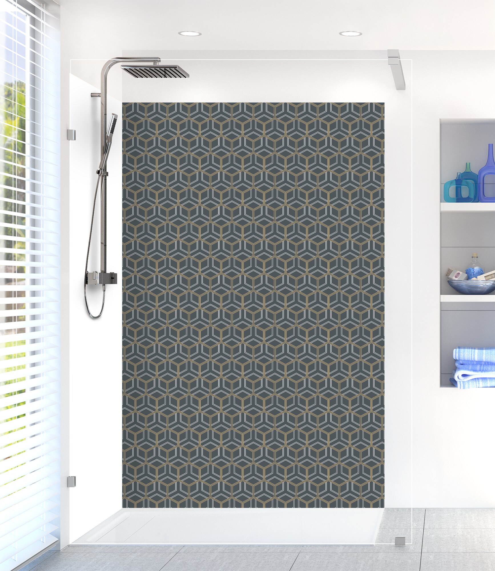 Optez pour l'élégance Art Déco avec ce panneau de douche facile à installer et à entretenir en aluminium et polycarbonate. Un choix unique pour votre salle de bain.